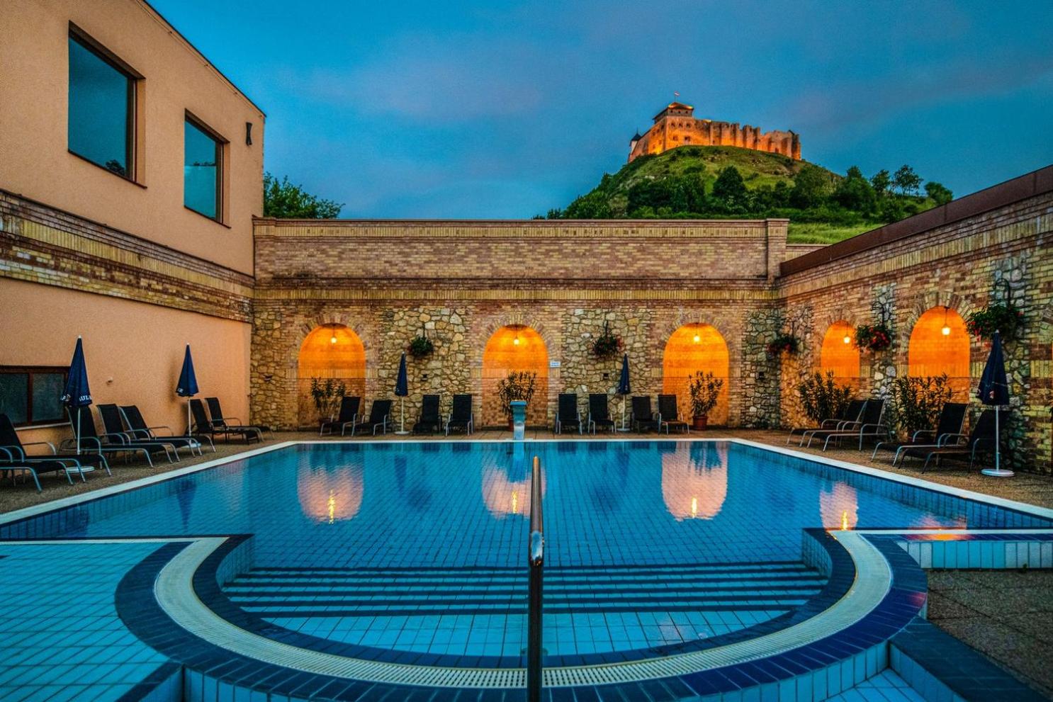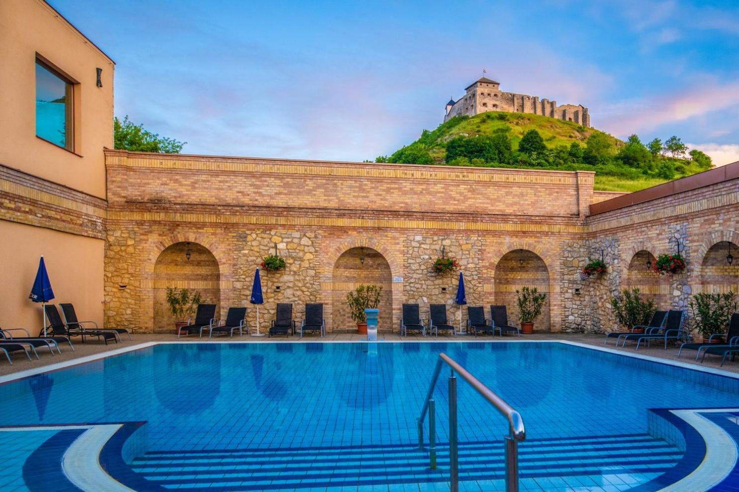Luxurious Spa Area: The Hotel Kapitány Wellness, nestled beneath the majestic Sümeg Castle, offers a fully equipped spa area with oriental-style swimming pool, steam bath, outdoor pool, hot tub, and a variety of saunas. Indulge in remedial massages, relaxing baths, and rejuvenating fitness programs.