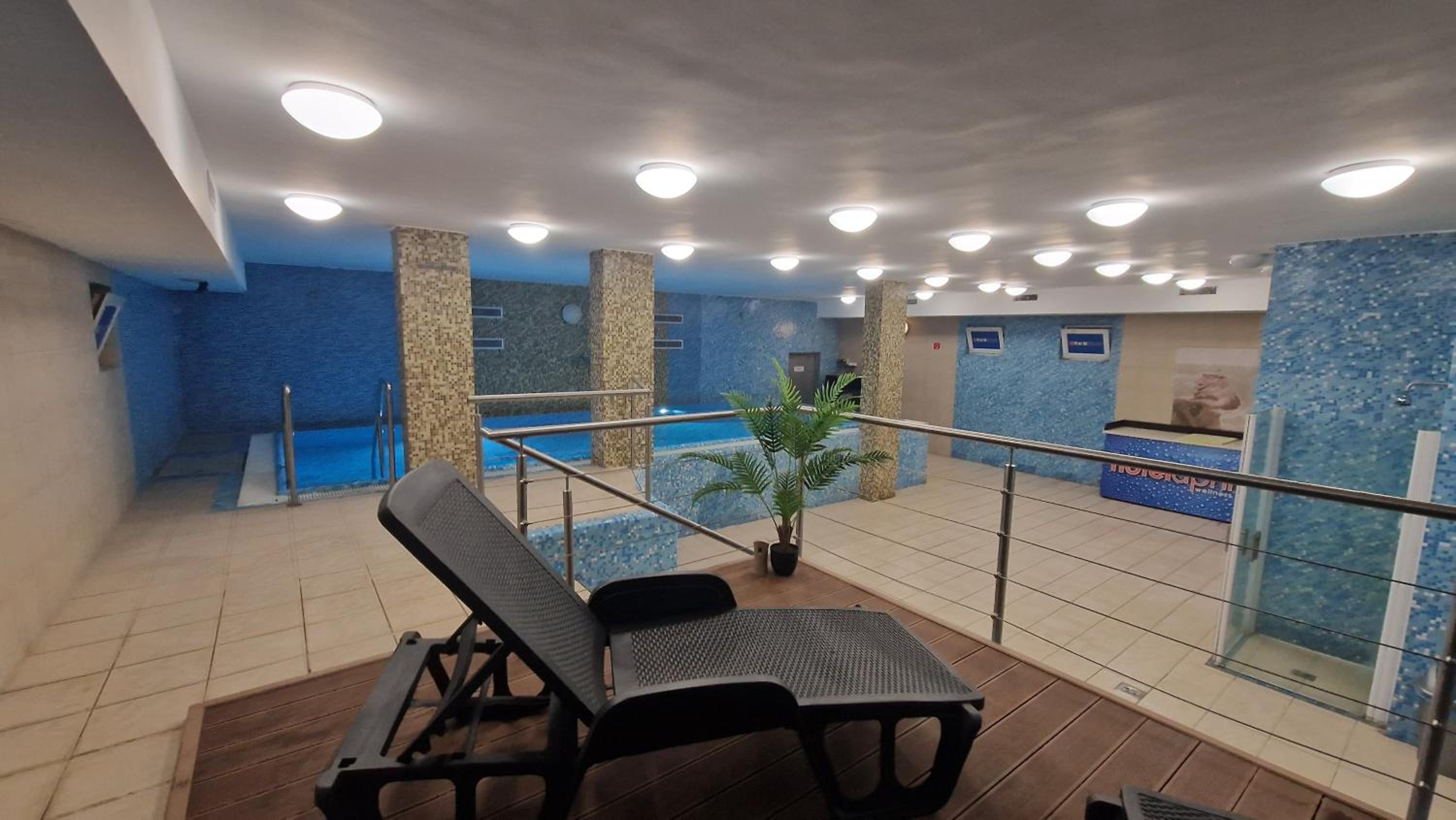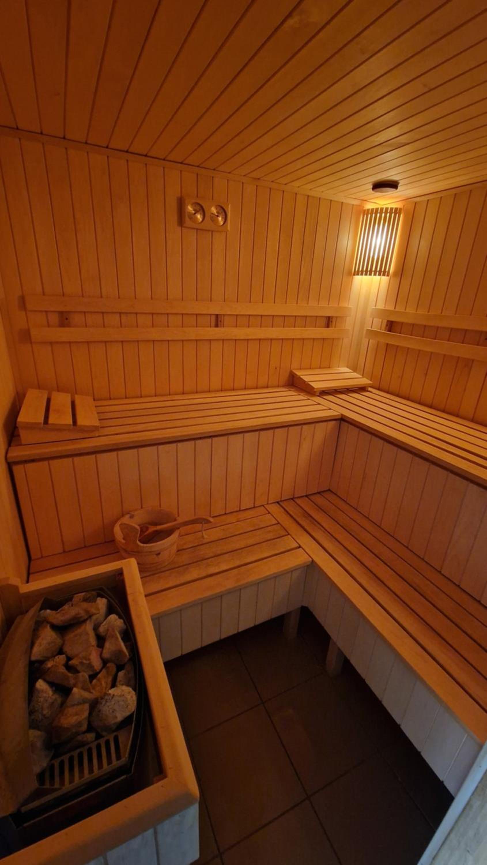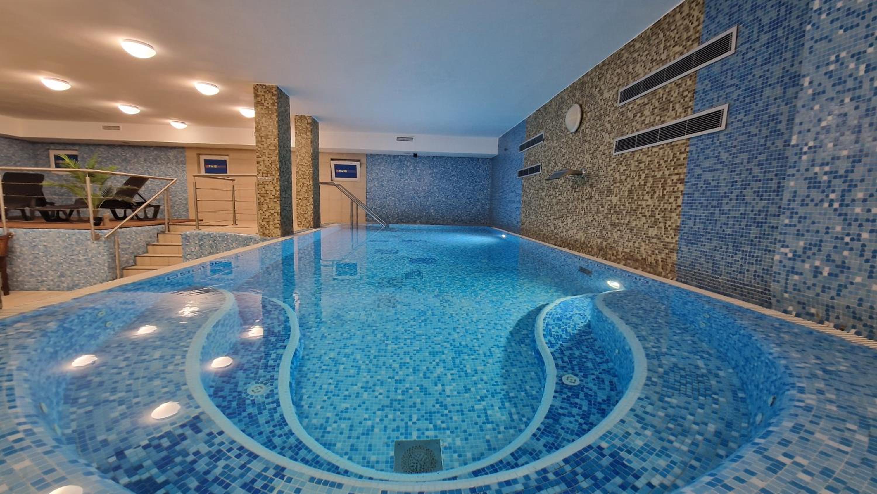 Luxurious Wellness Area: Indulge in the hotel's exclusive wellness facilities, including indoor and outdoor pools, sauna, hot tub, fitness room, steam bath, and sun bed, ensuring a rejuvenating stay.