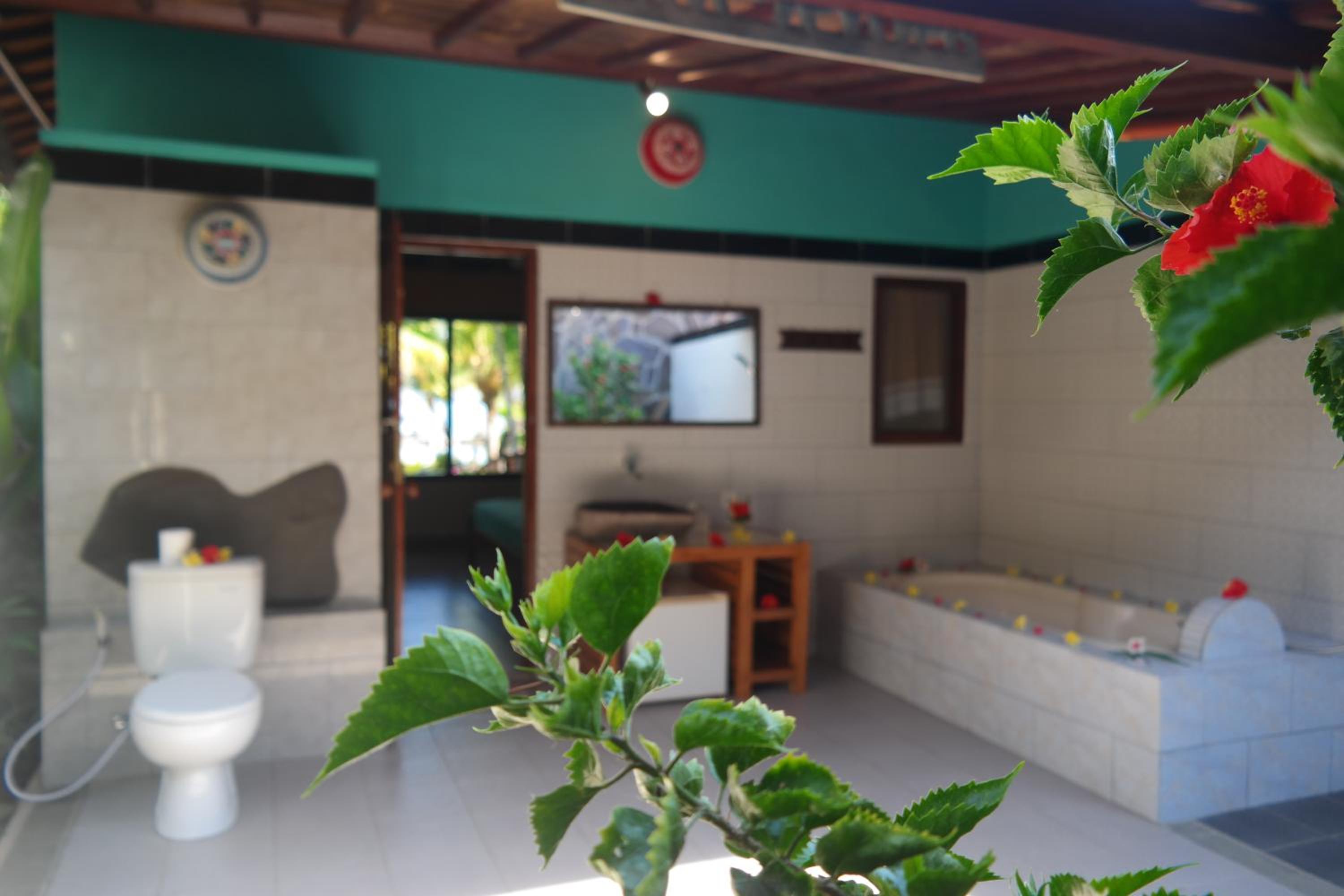 Luxurious Accommodation: Experience Balinese-style rooms with garden views, private terraces, and semi-outdoor bathrooms at 1000 Dream Bungalow.