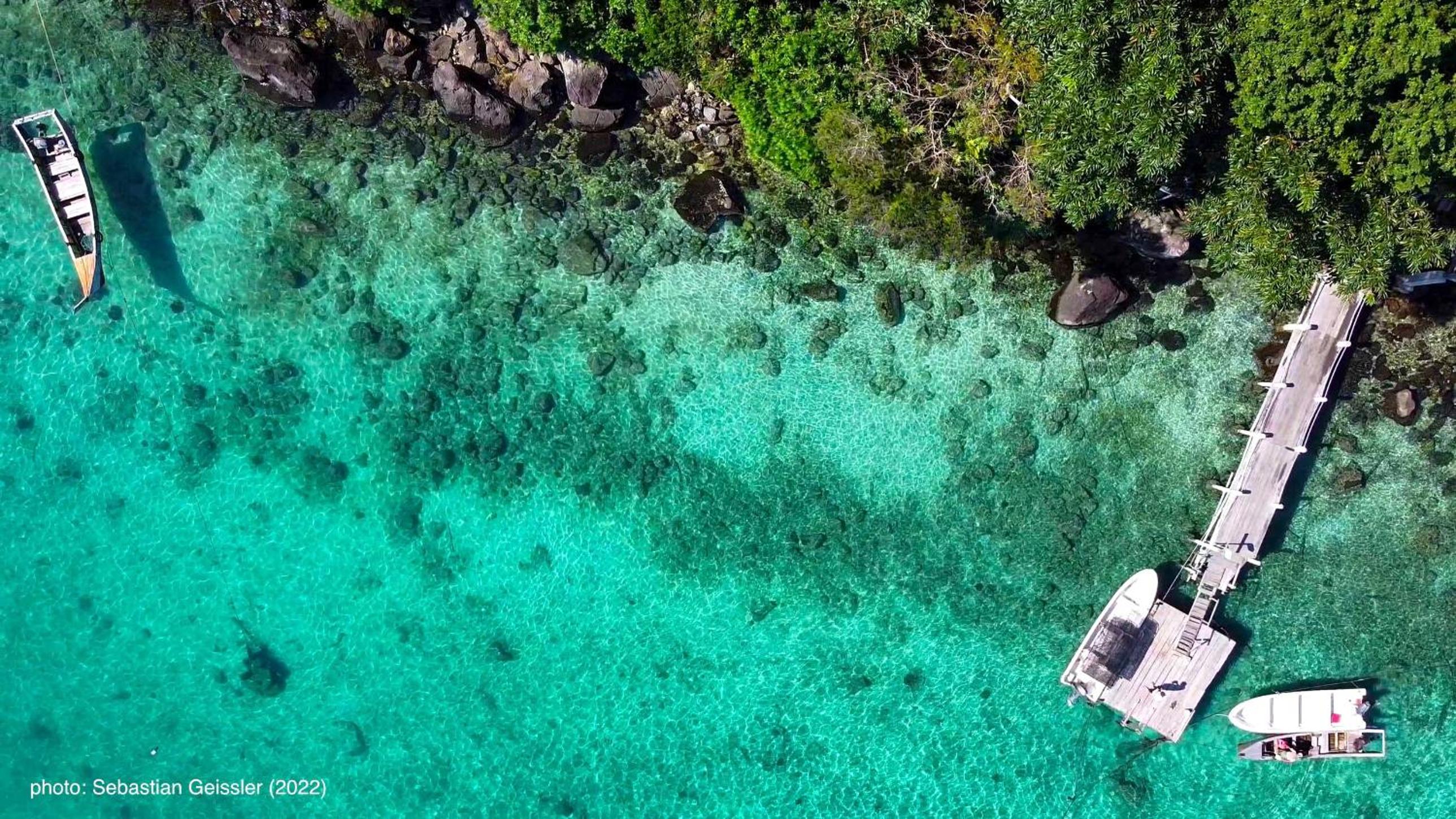 Just a short walk down to the dock where you can snorkle from.