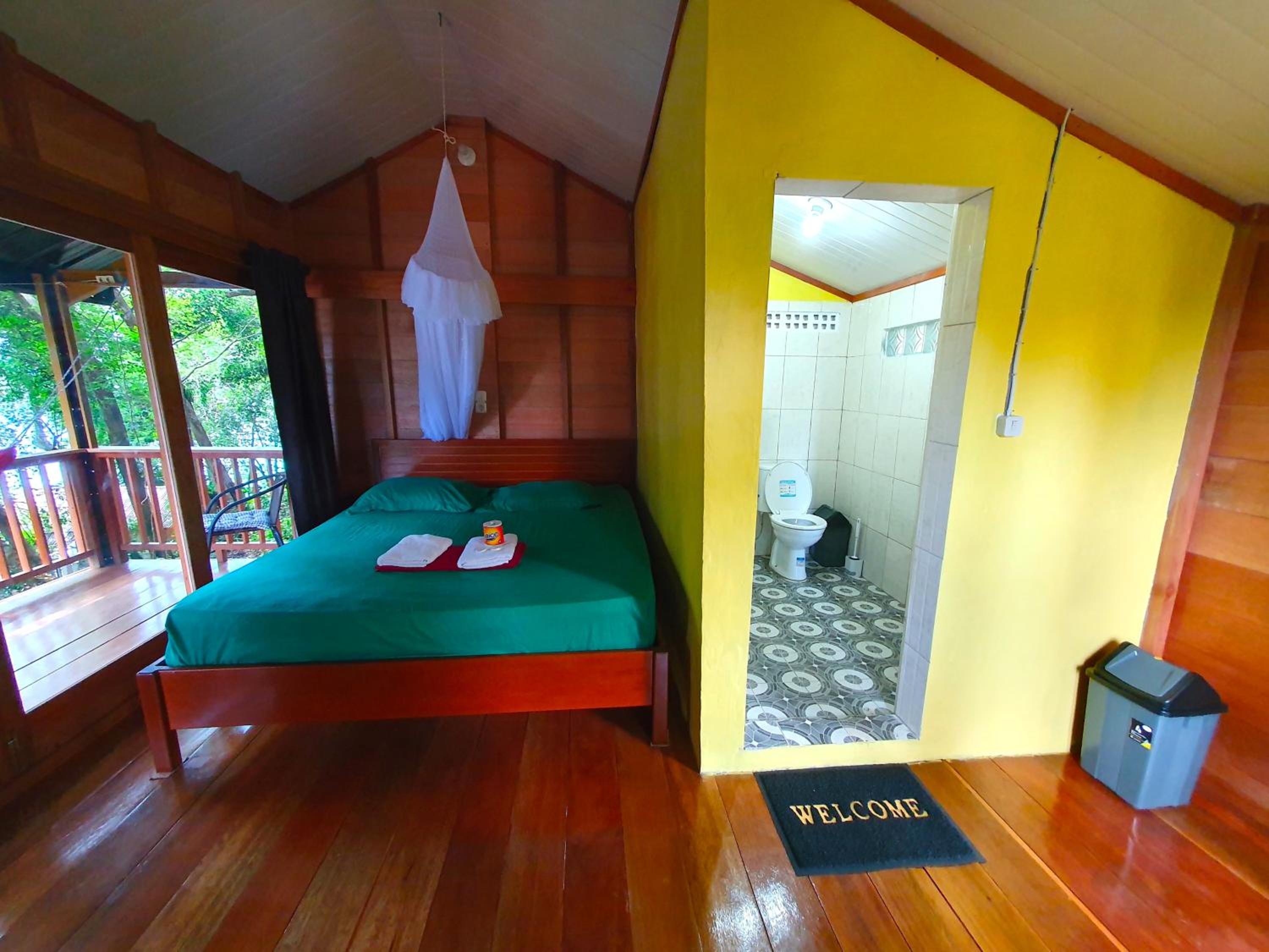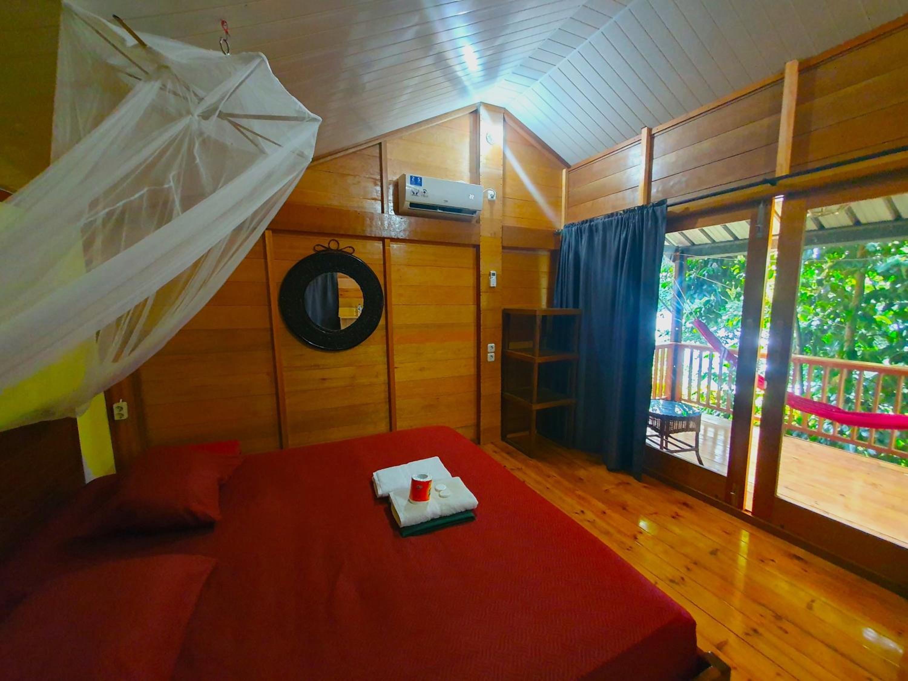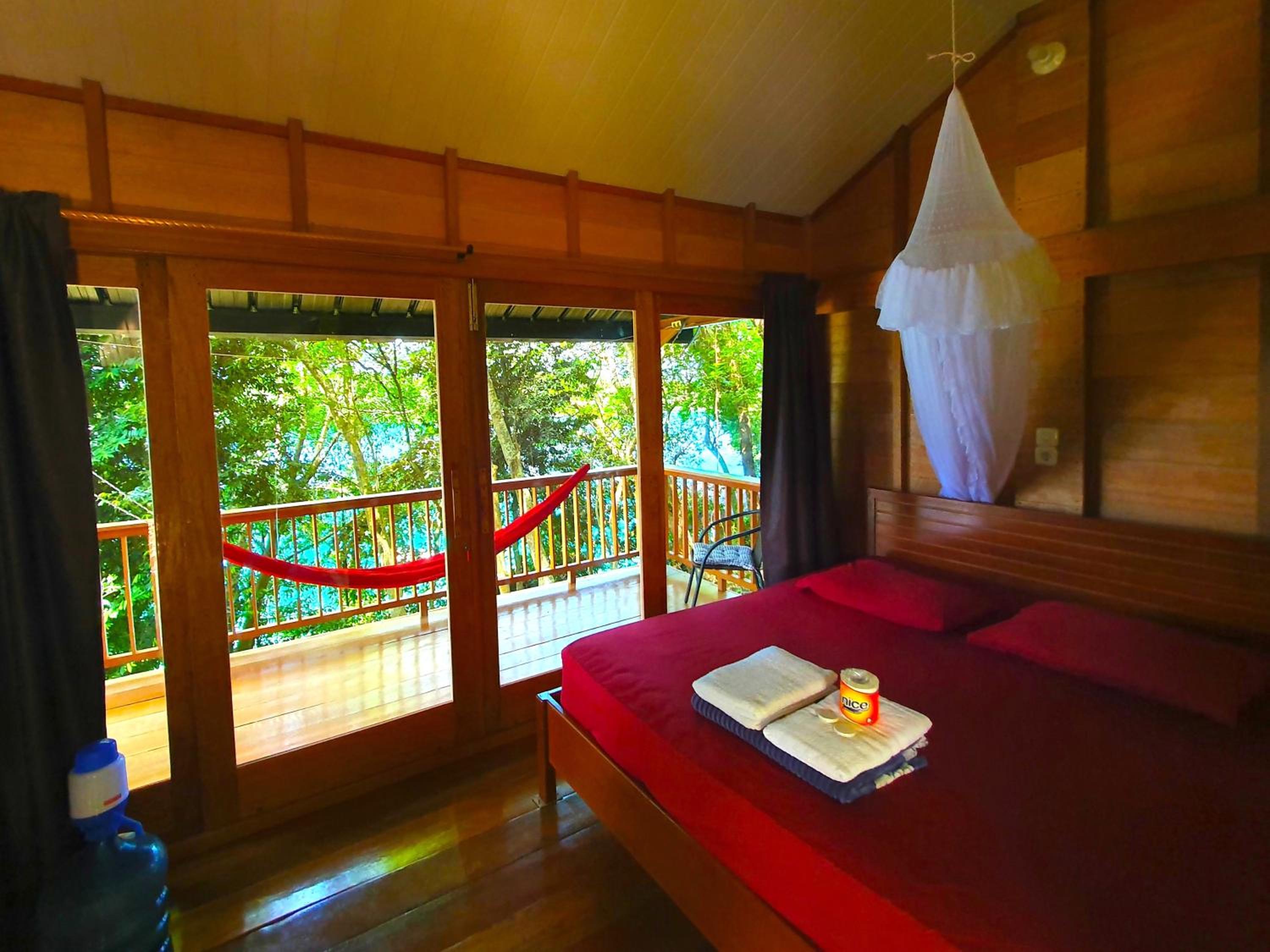 The rooms are big and spacious with a comfortable bed and a balcony with an amazing view from the hammock.