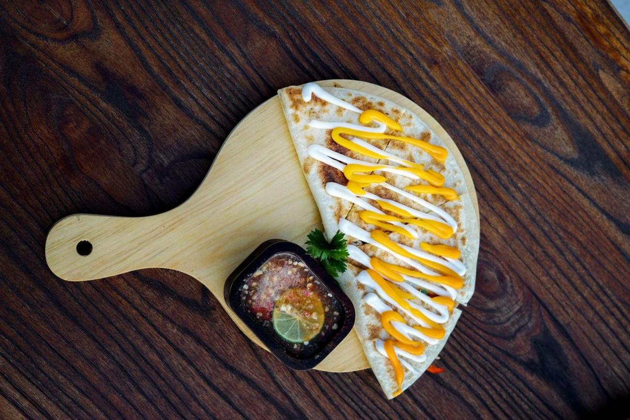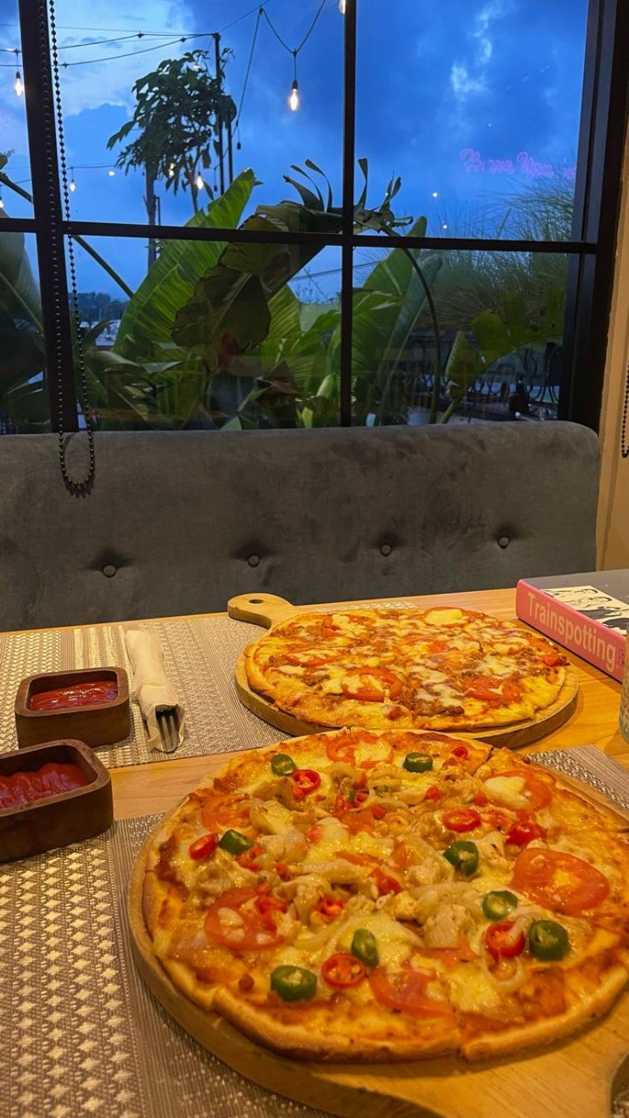 Restauracja na dachu z pysznym jedzeniem.
