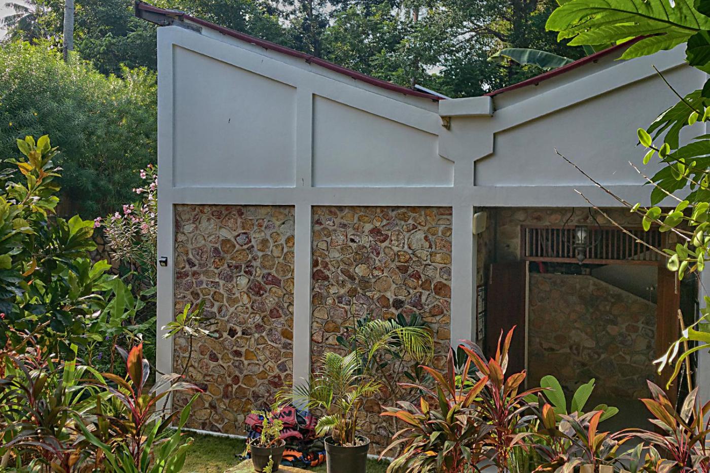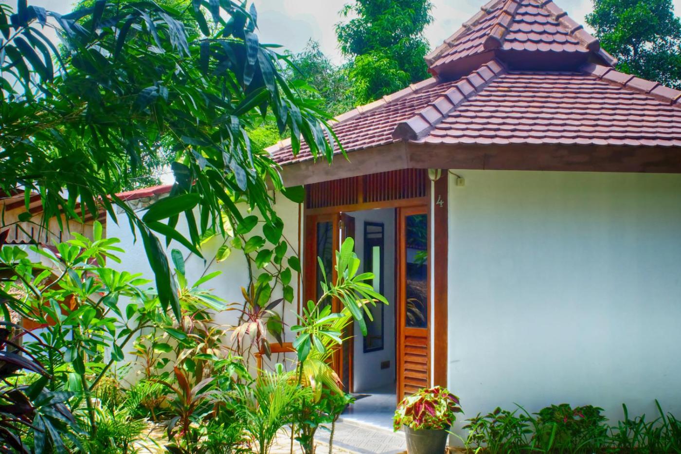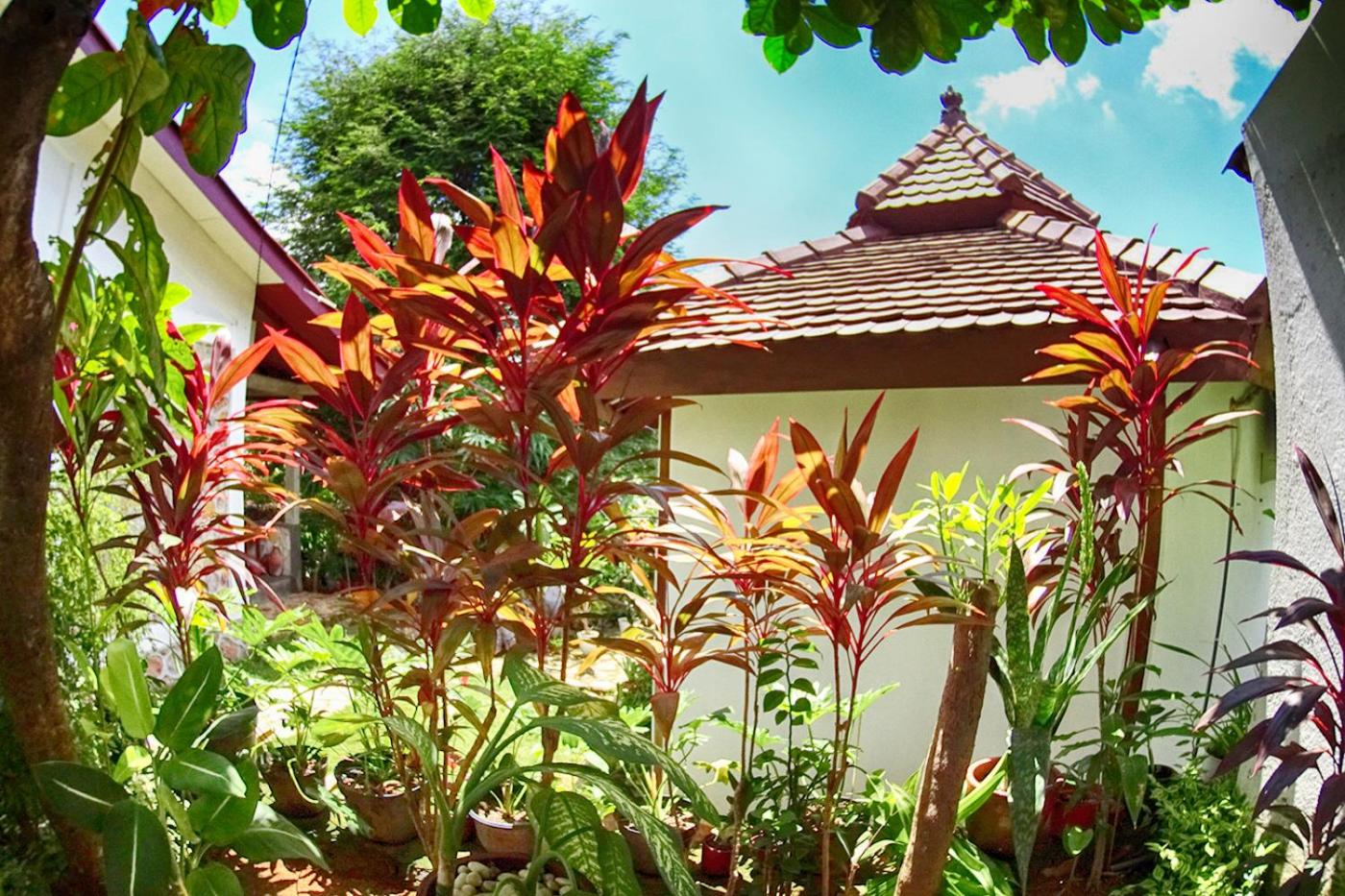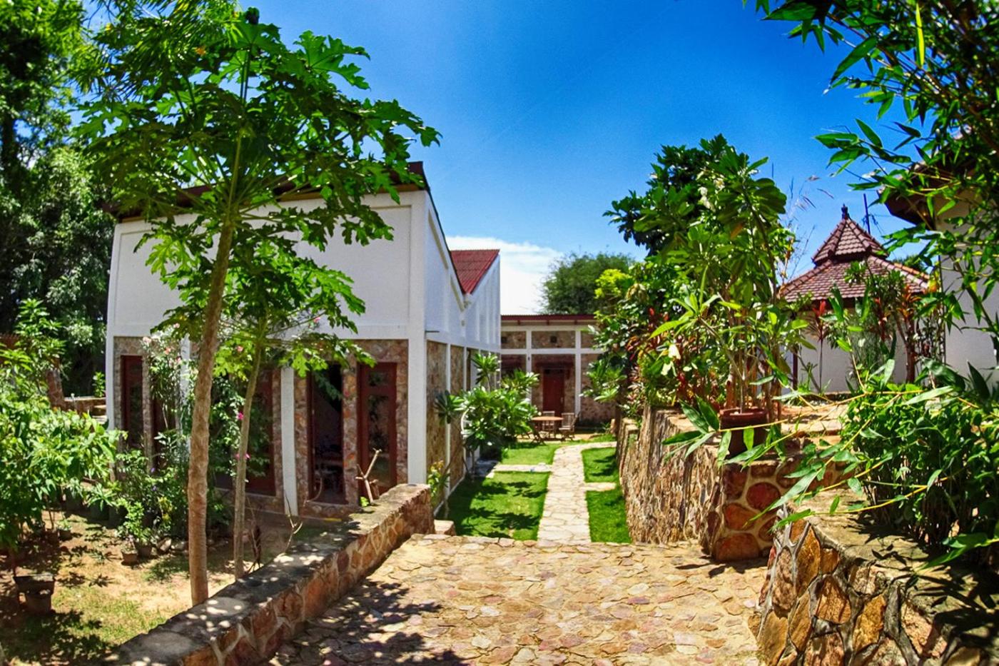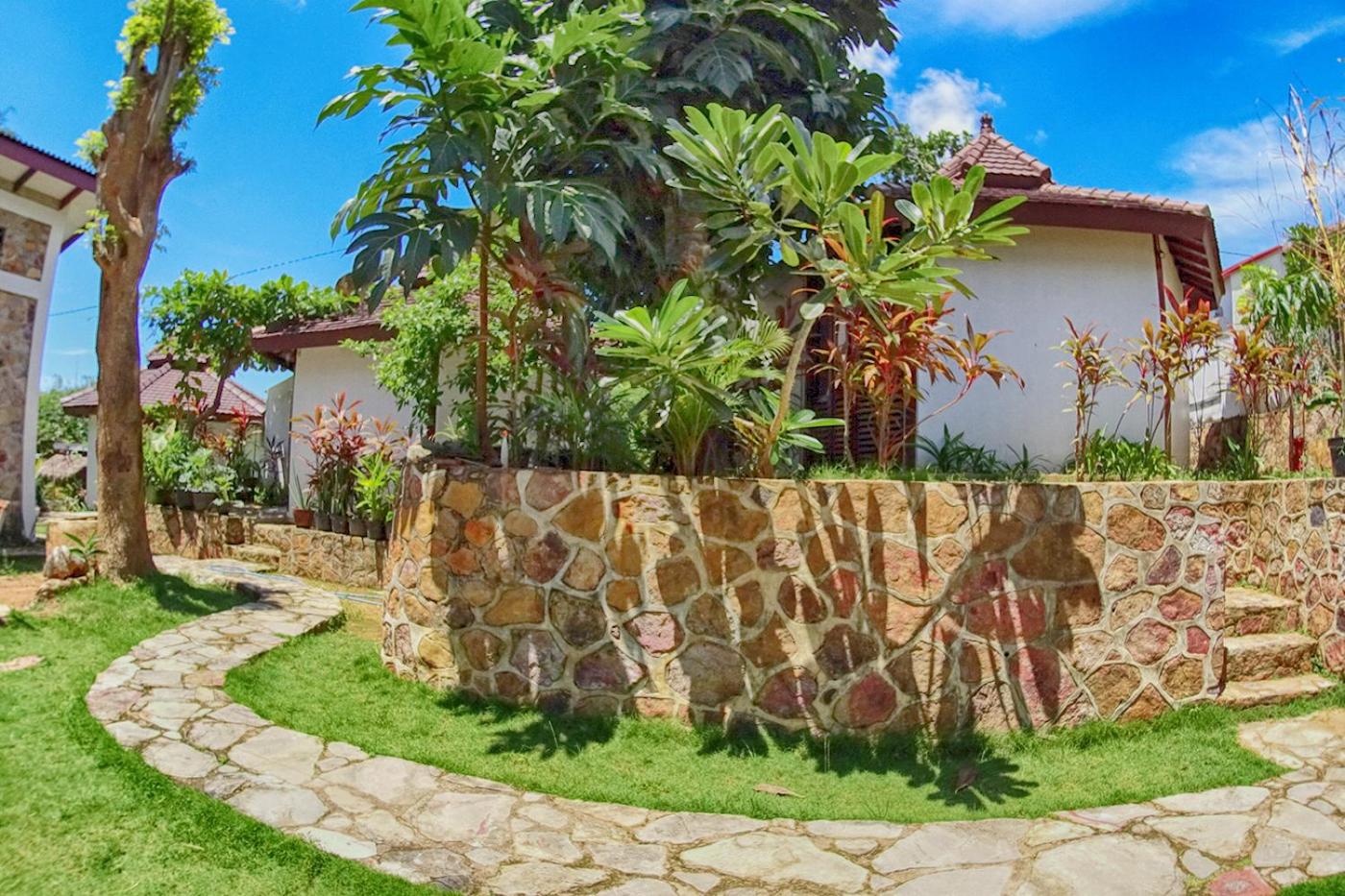 Les chambres en bungalow sont confortables, avec une charmante salle de bain extérieure. Le jardin est très agréable.