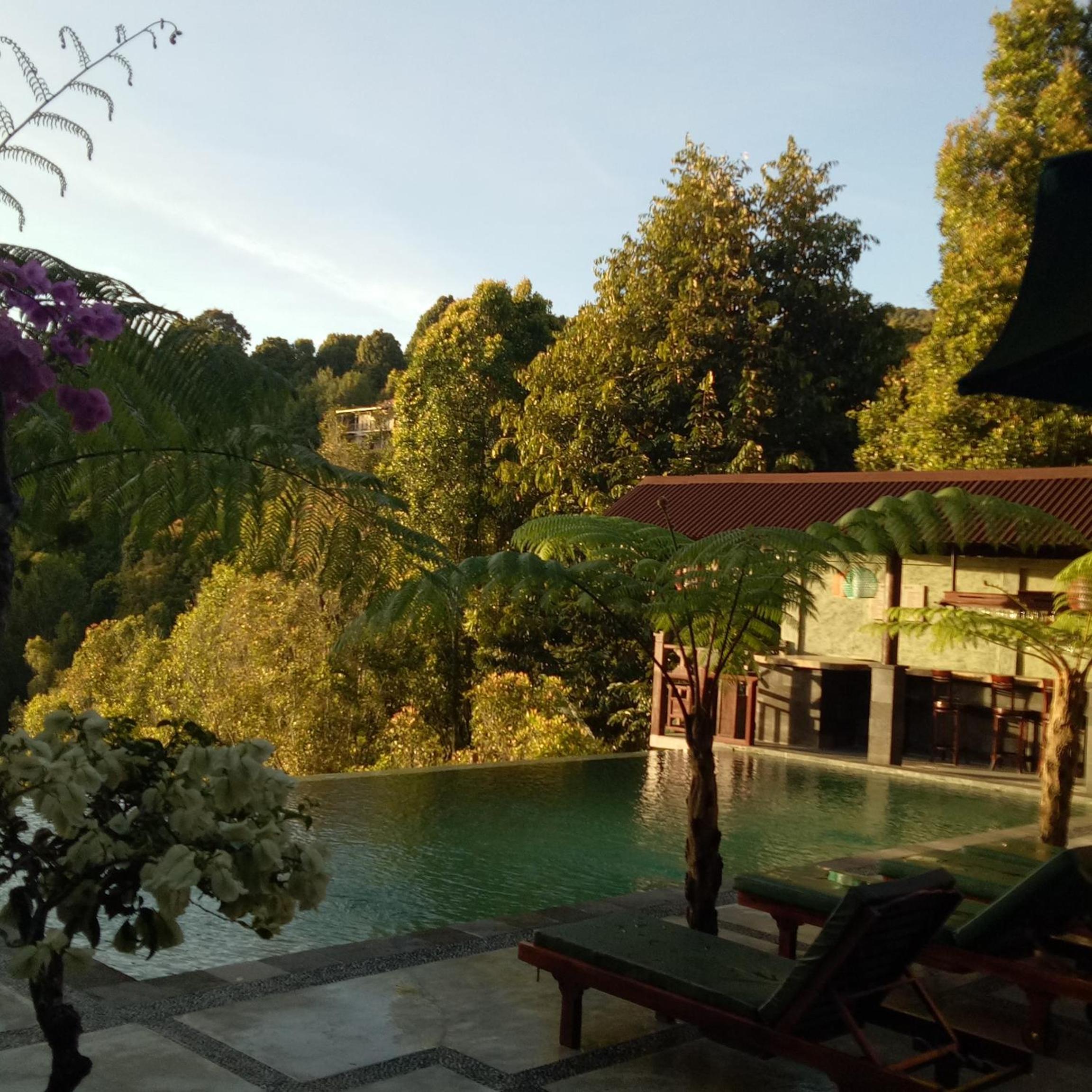 Sehr gute Lage, mit tollem Blick vom Balkon auf den schönen Pool und dem Wald. Man kann direkt vom Hotel zu den Wasserfällen laufen, bekommt auch eine kleine Orientierungskarte mit.