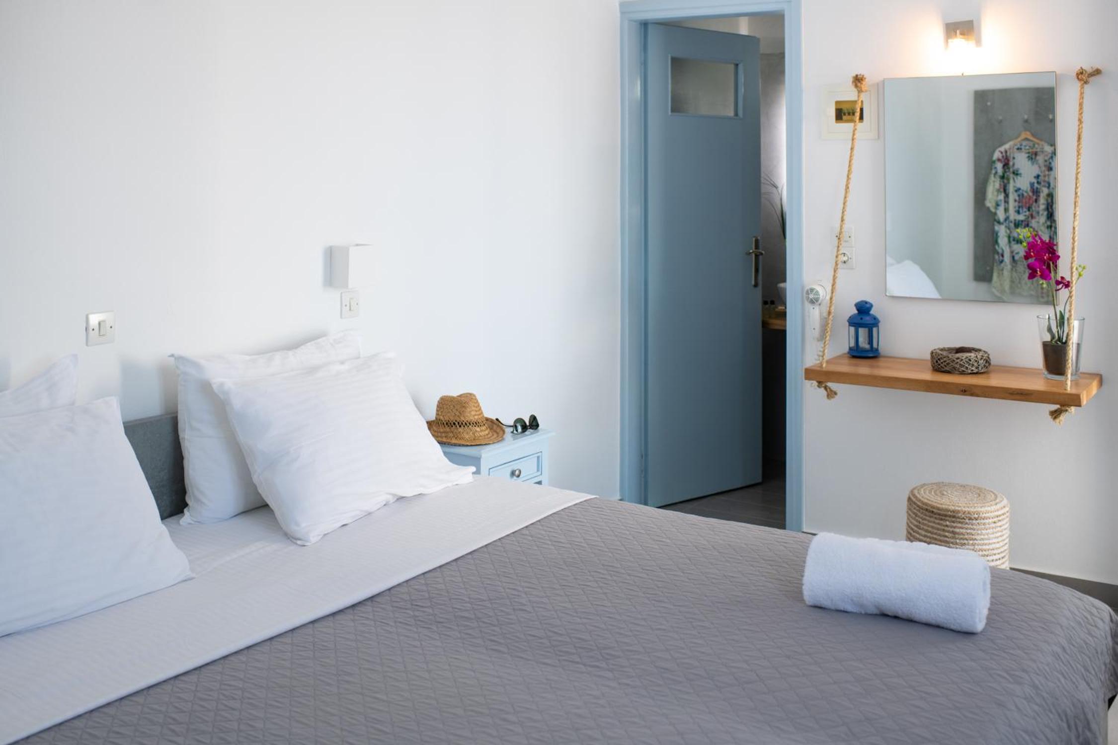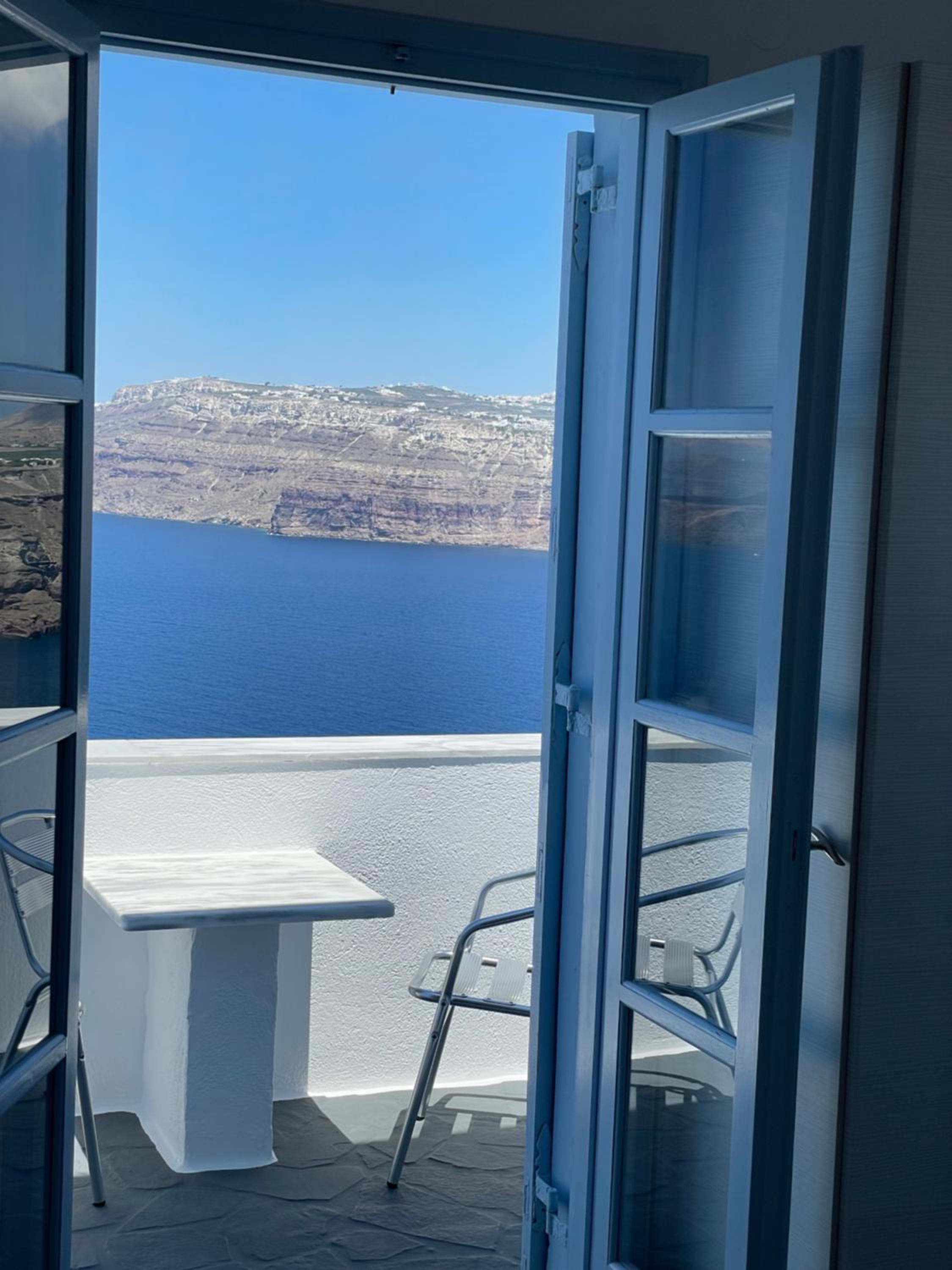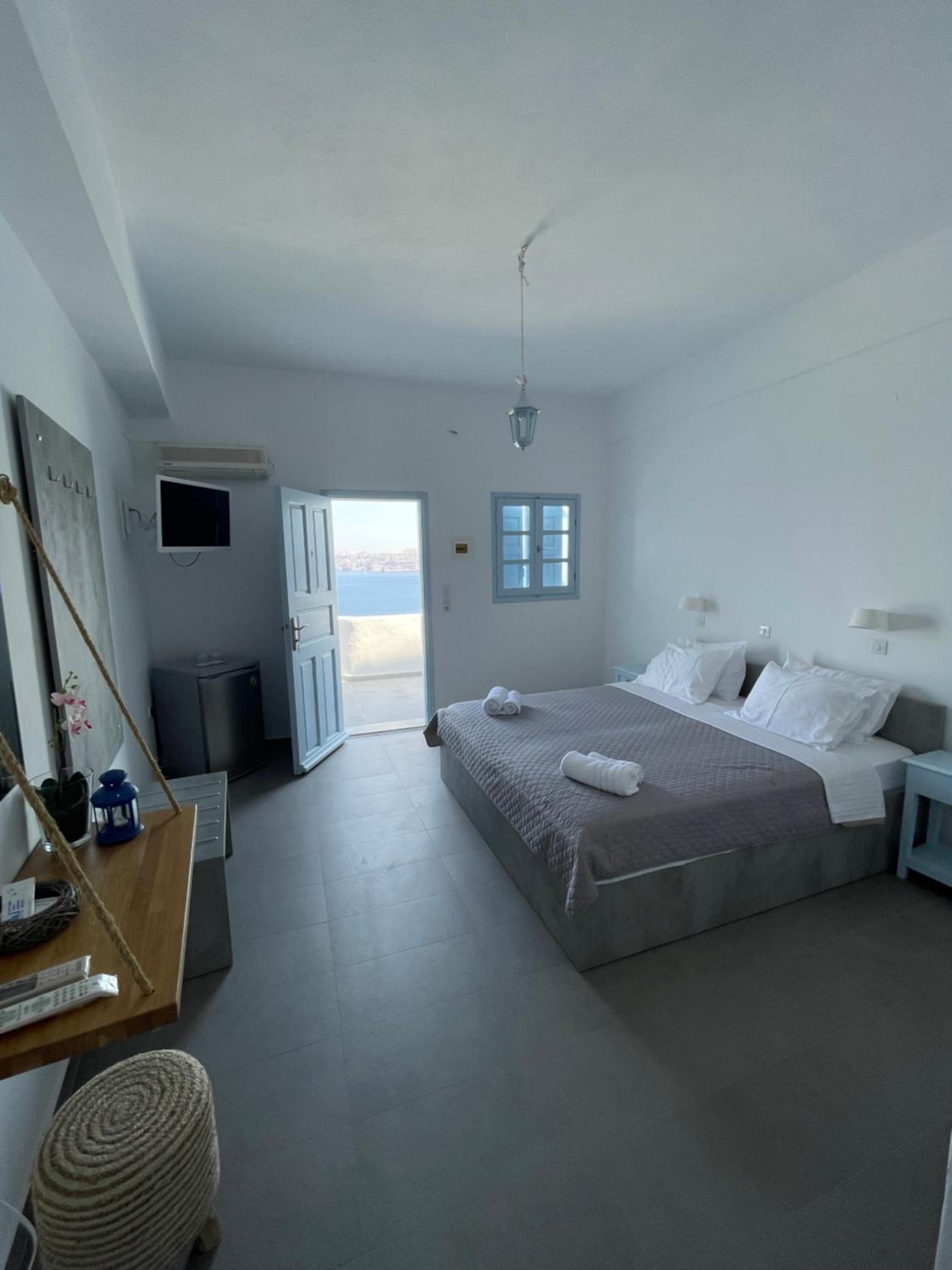 This is a super little find. The communication is excellent - opting for WhatsApp makes it really easy. We had a late arrival but Vassilis sent us a video so we knew exactly where to go. He arranged our taxi from the airport and then onto the port the following morning. The room was spotless and had everything we needed. The view of Santorini Crescent is stunning and you can eat breakfast on the terrace with the most amazing vista. We had to set out early and were given a picnic breakfast. Thank you BLU rooms.