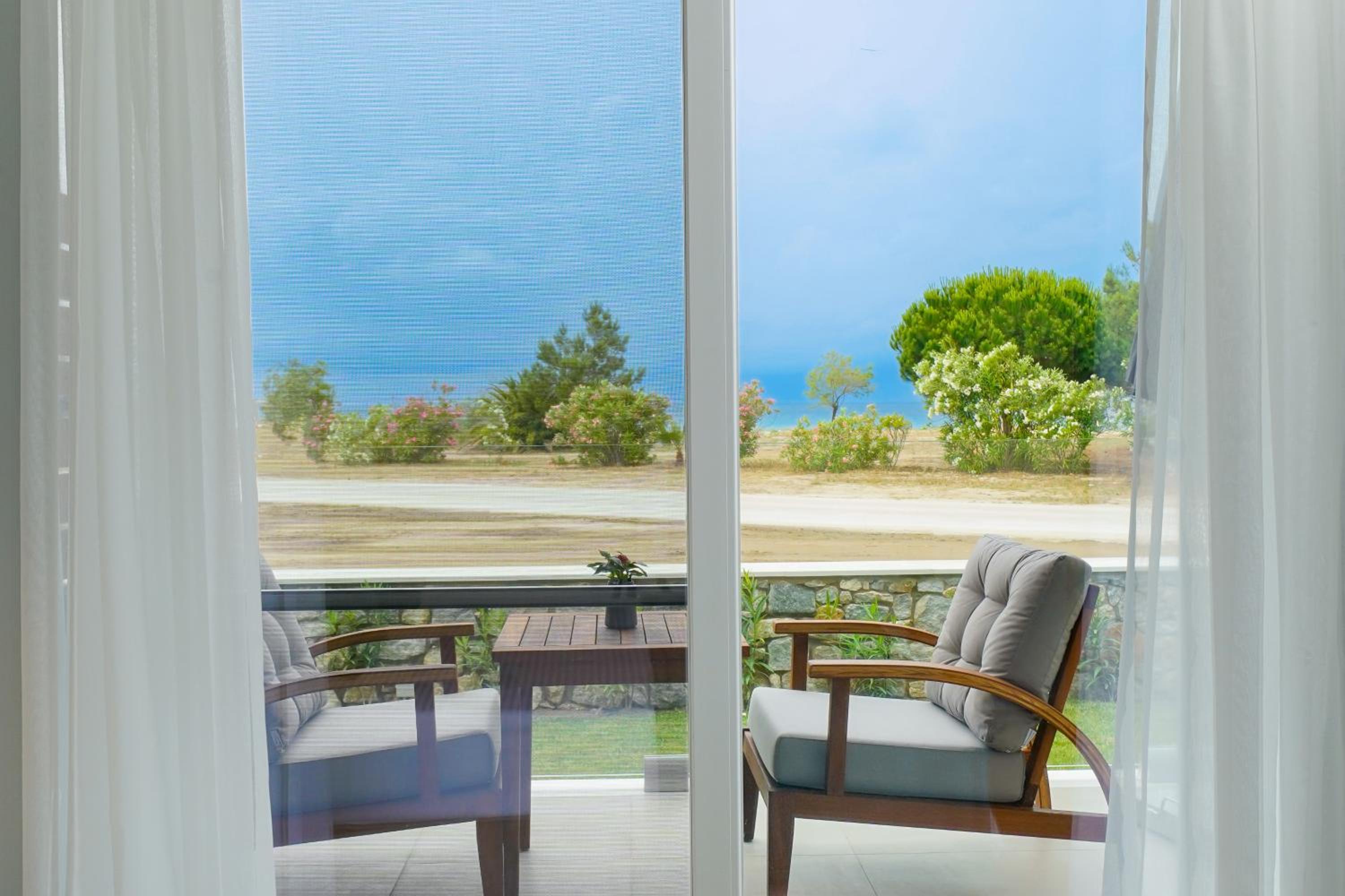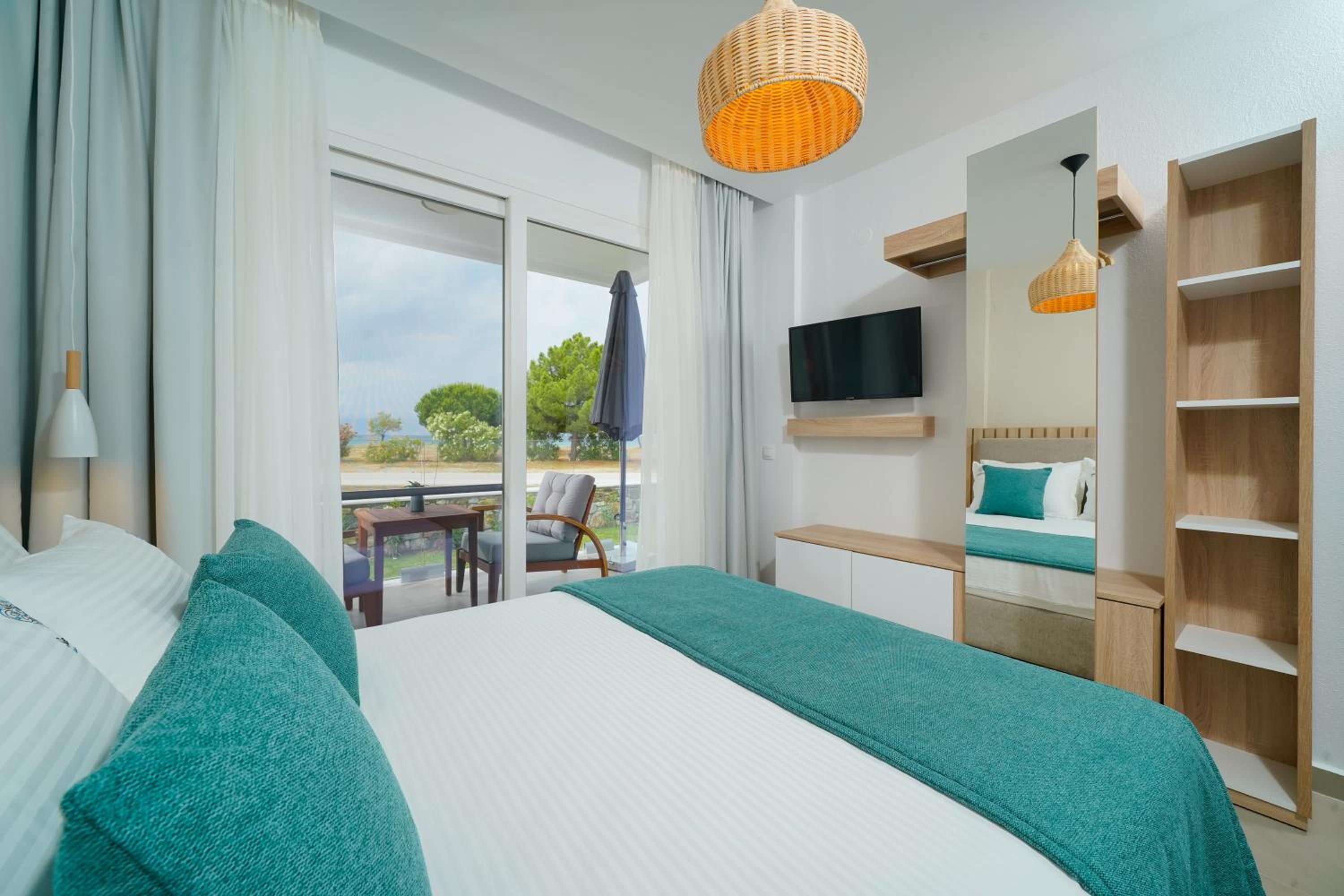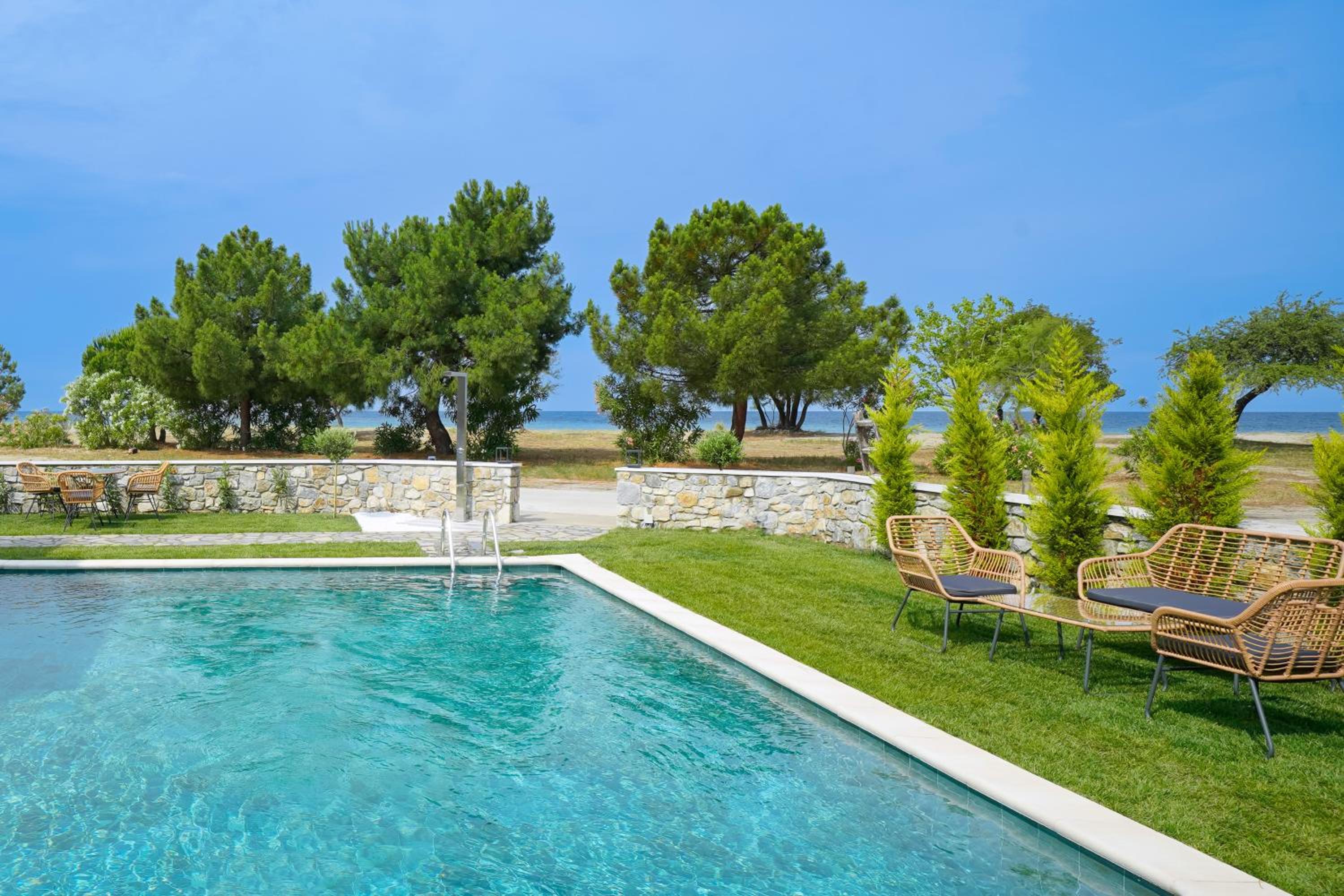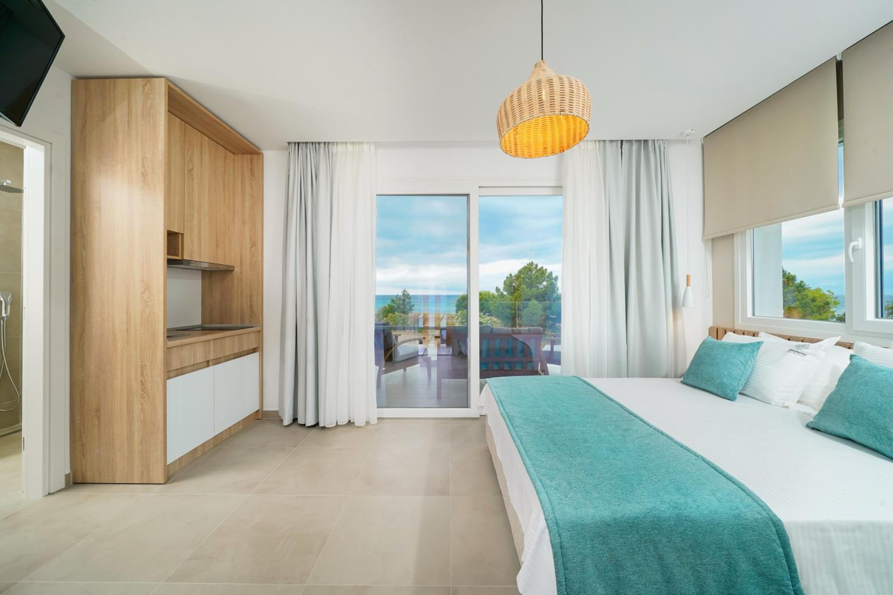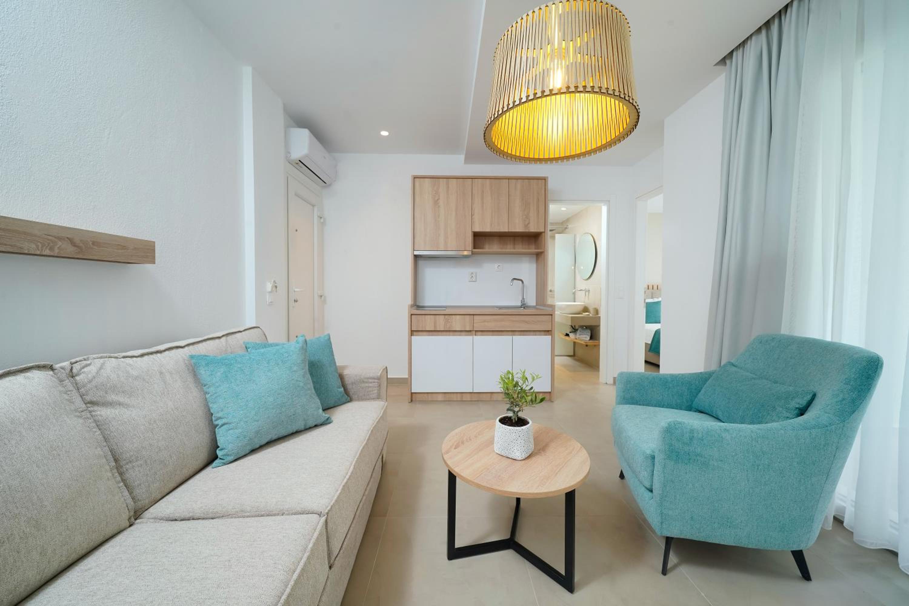 Everything was great! Stylishly decorated rooms that brought relaxation to mind. Loads of amenities - mosquito-nets, hair dryer, iron, sandwich maker + you could even choose between pillows. Spacious balconies with a partial sea-view, equipped with comfy patio furniture. The cleaning crew was meticulous with attention to detail. Staff was friendly and helpful. We were pleasantly surprised by a Greek night with live music and traditional food on our last night. Almost forgot - a cute little black and white cat that actively greeted us whenever we returned. Vast beach with calm water even on windy days just a few meters from the property. Good restaurants nearby. Satisfied with our choice.