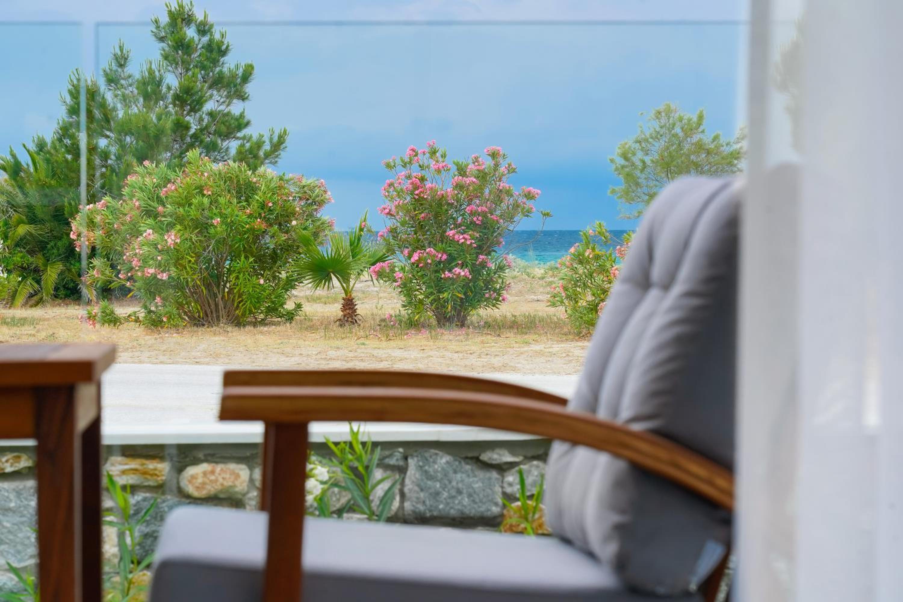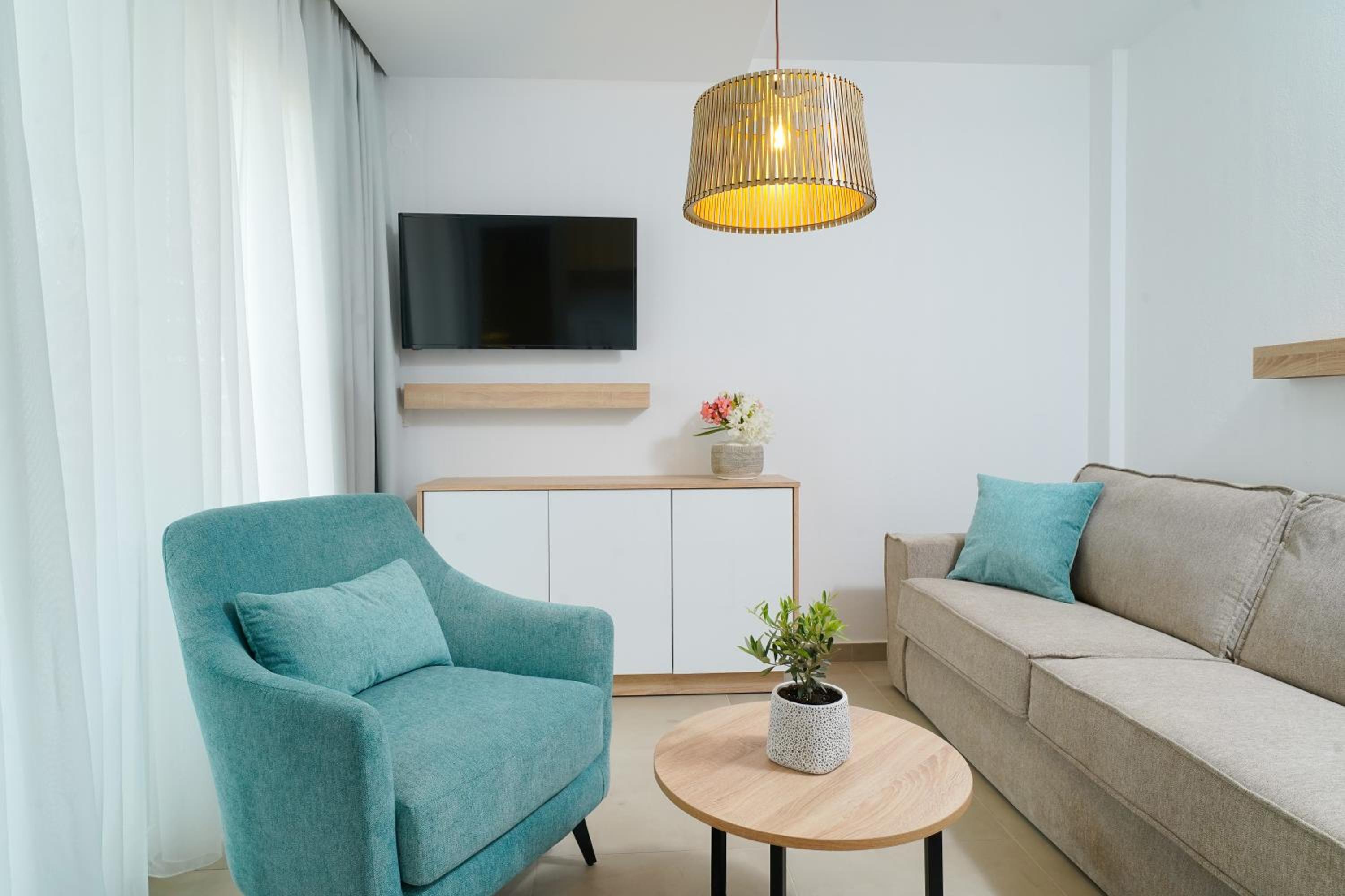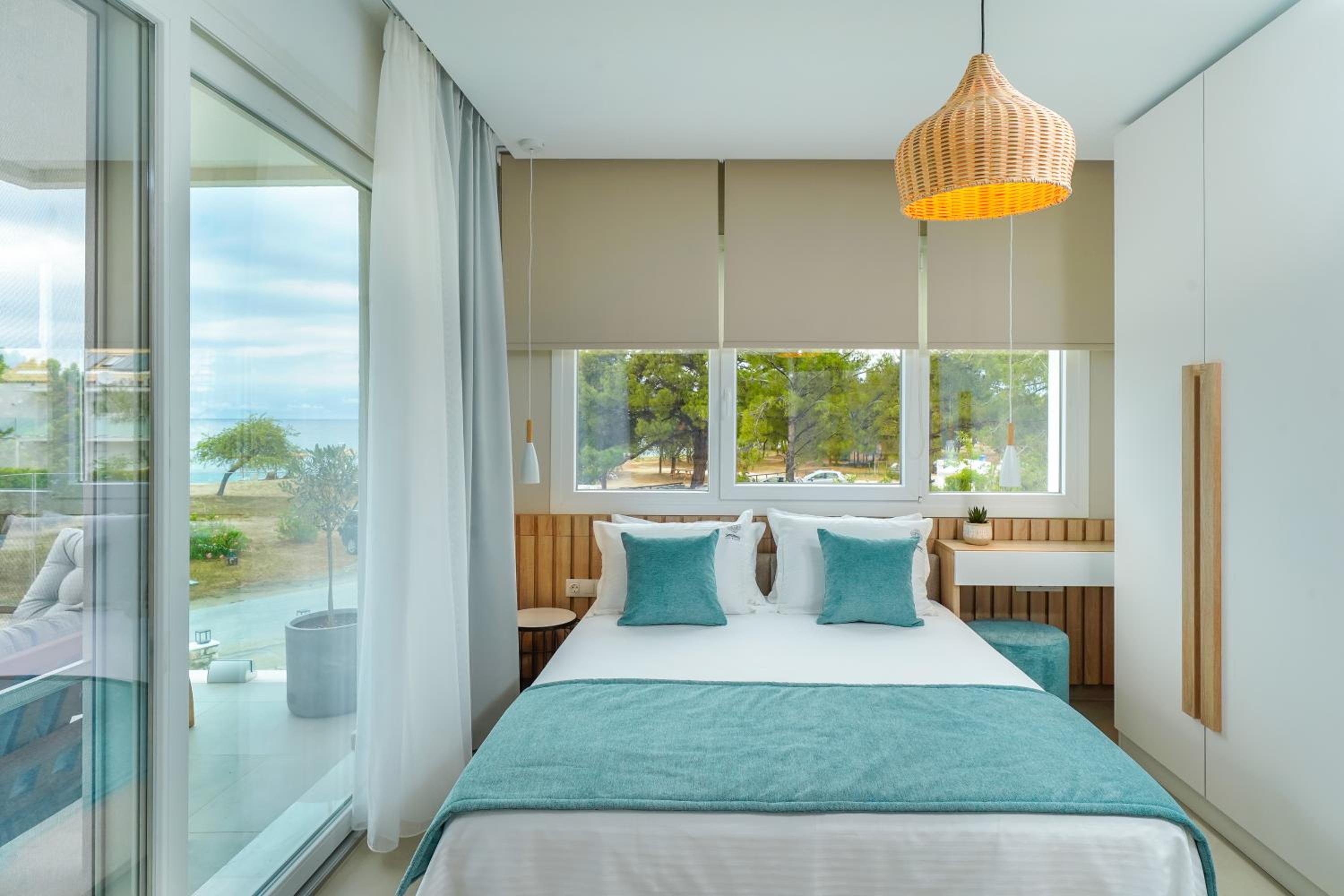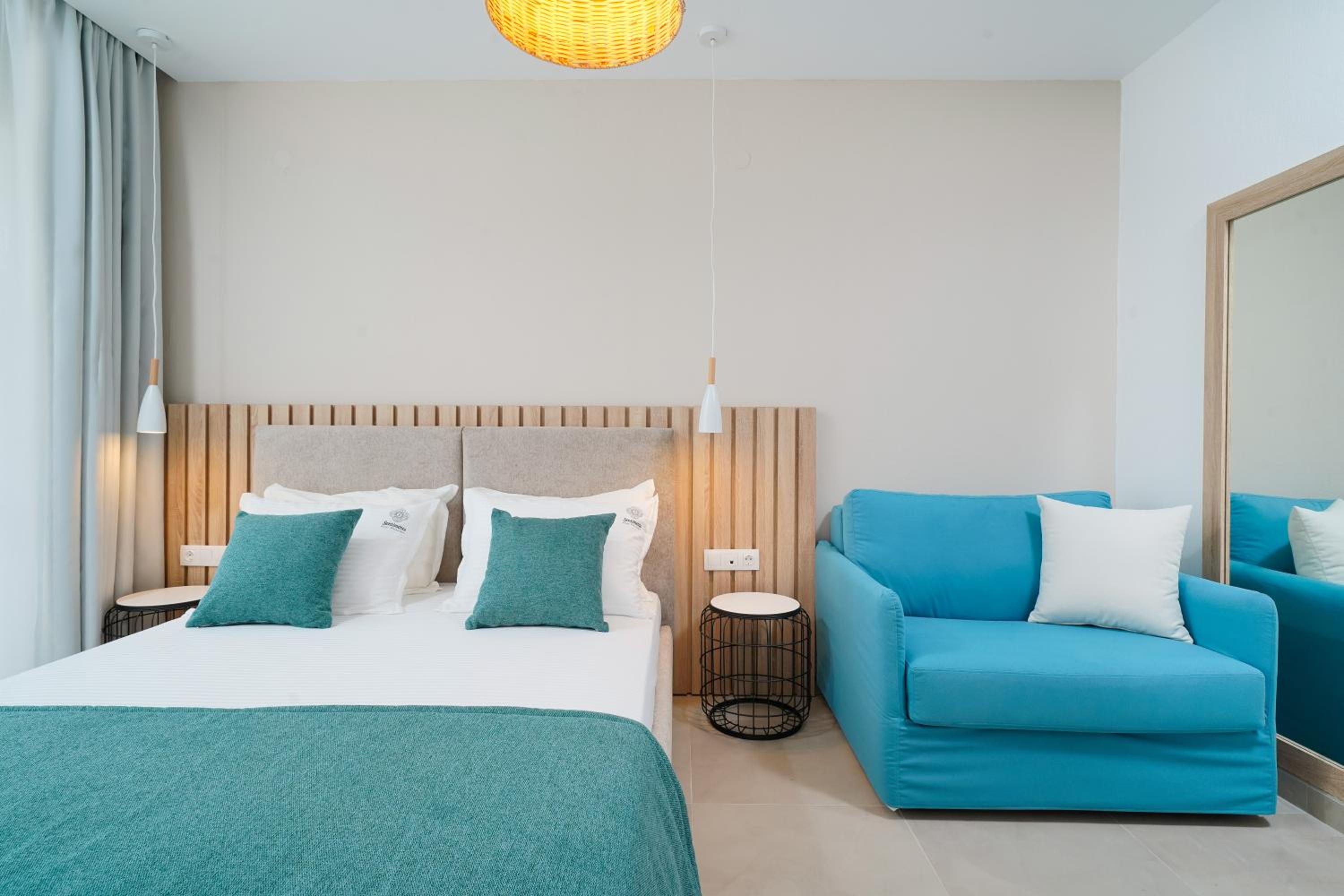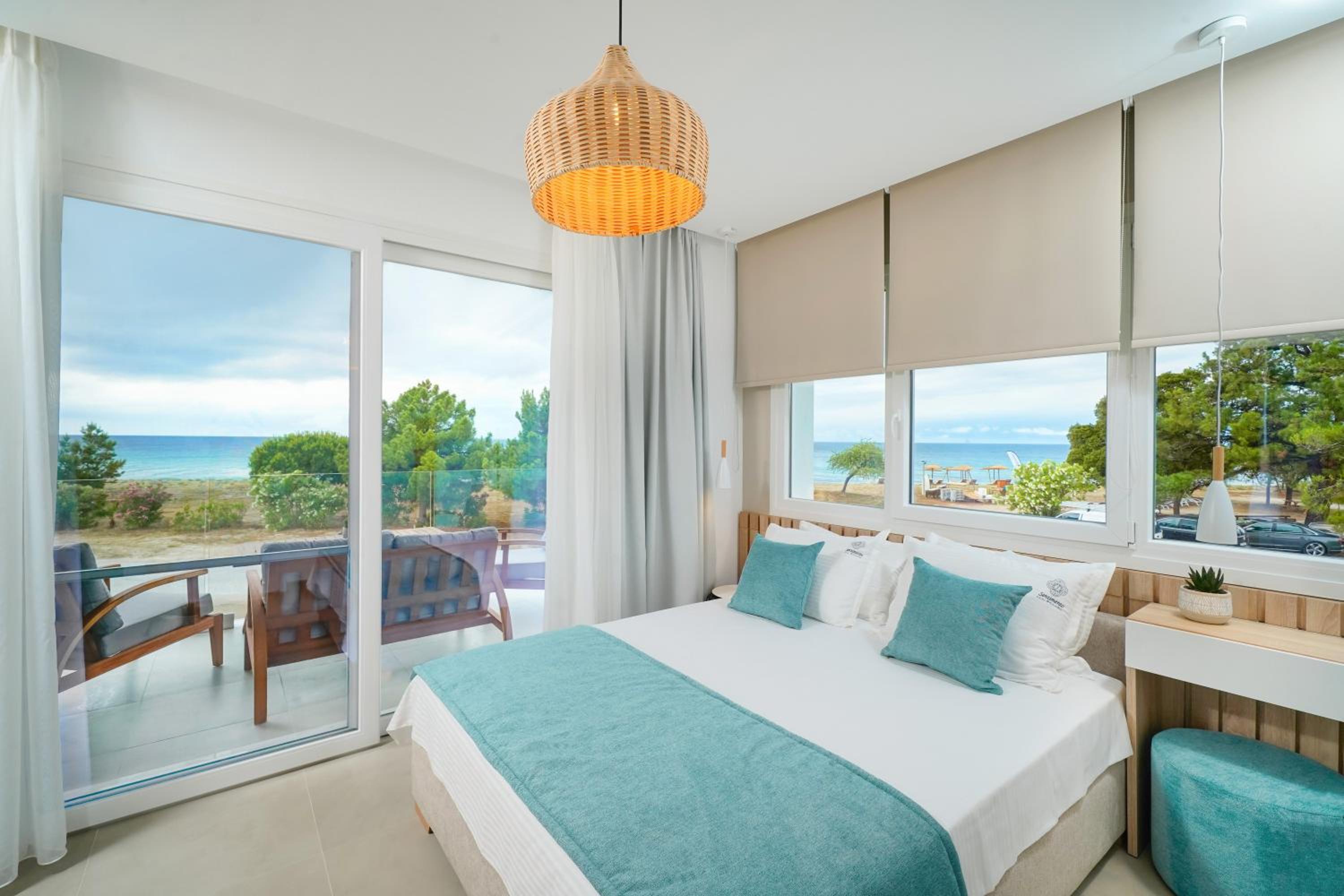 Everything was great! Stylishly decorated rooms that brought relaxation to mind. Loads of amenities - mosquito-nets, hair dryer, iron, sandwich maker + you could even choose between pillows. Spacious balconies with a partial sea-view, equipped with comfy patio furniture. The cleaning crew was meticulous with attention to detail. Staff was friendly and helpful. We were pleasantly surprised by a Greek night with live music and traditional food on our last night. Almost forgot - a cute little black and white cat that actively greeted us whenever we returned. Vast beach with calm water even on windy days just a few meters from the property. Good restaurants nearby. Satisfied with our choice.