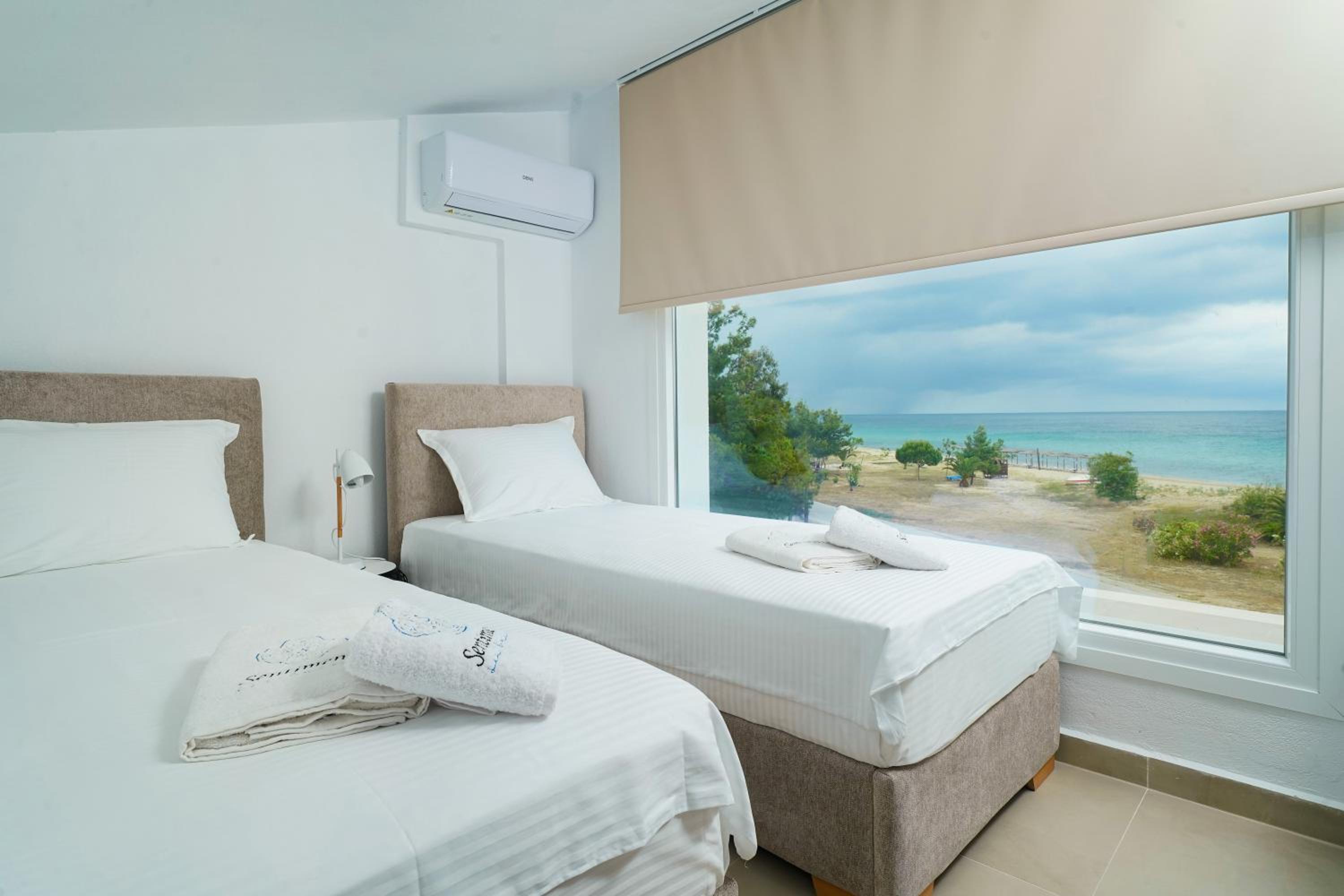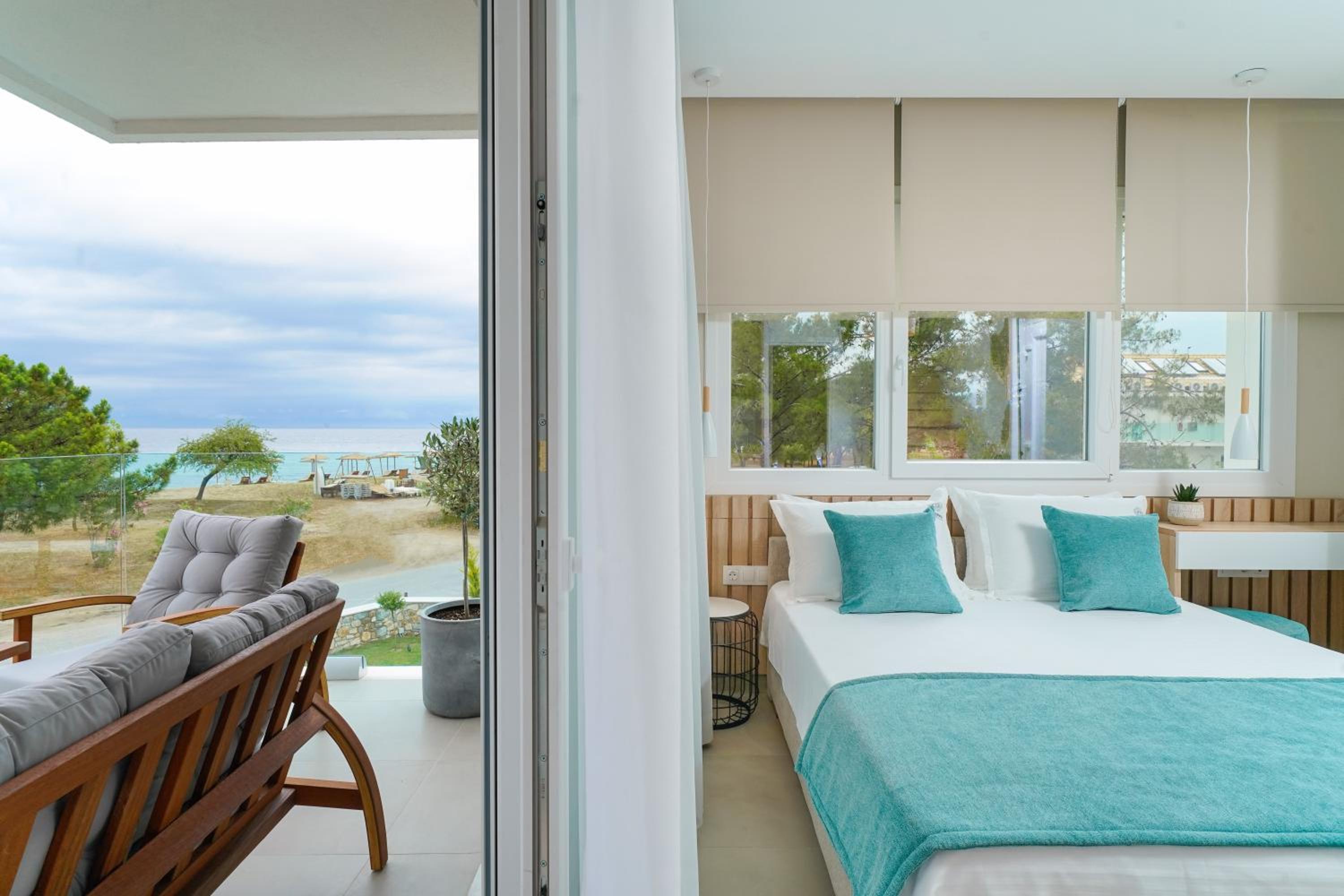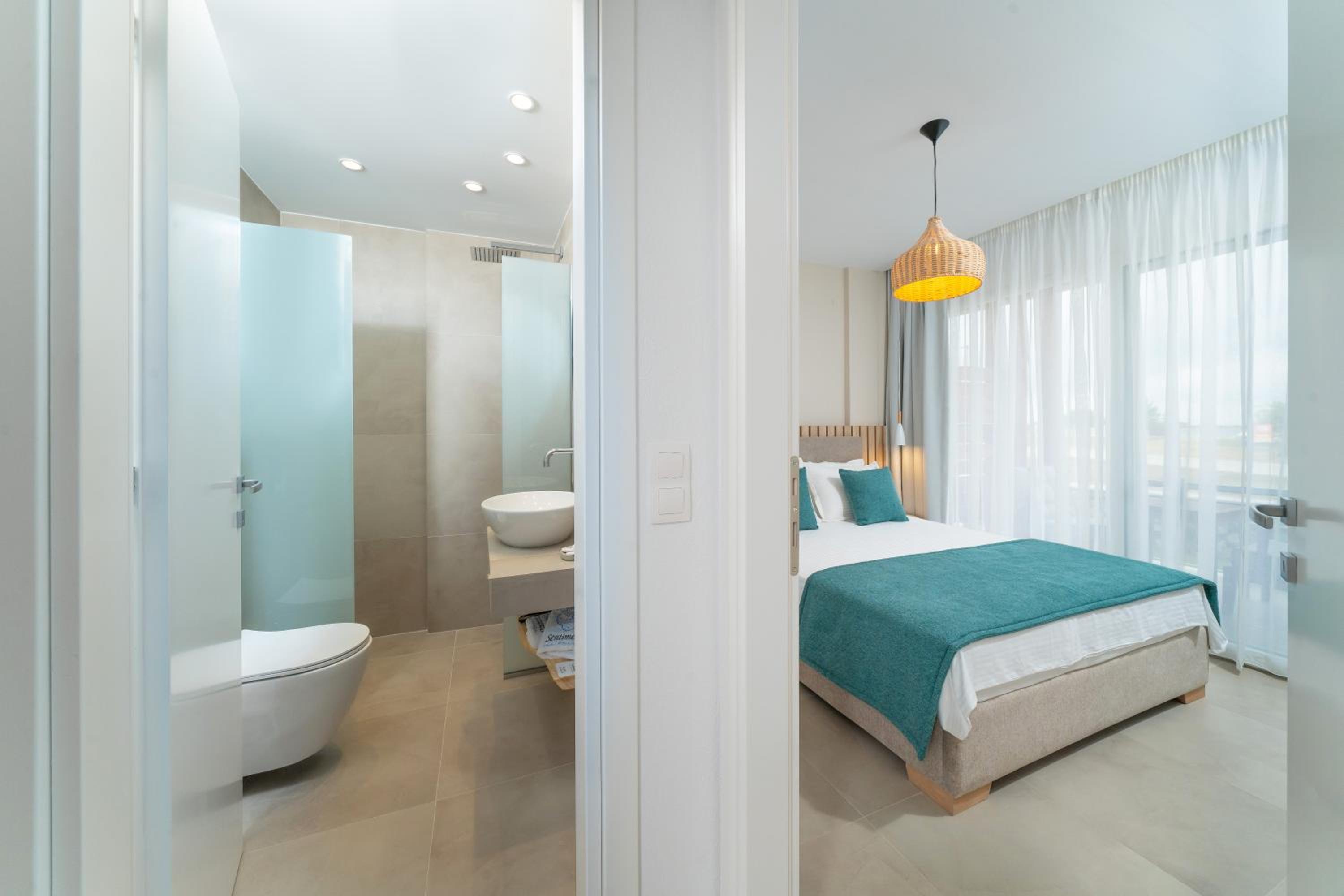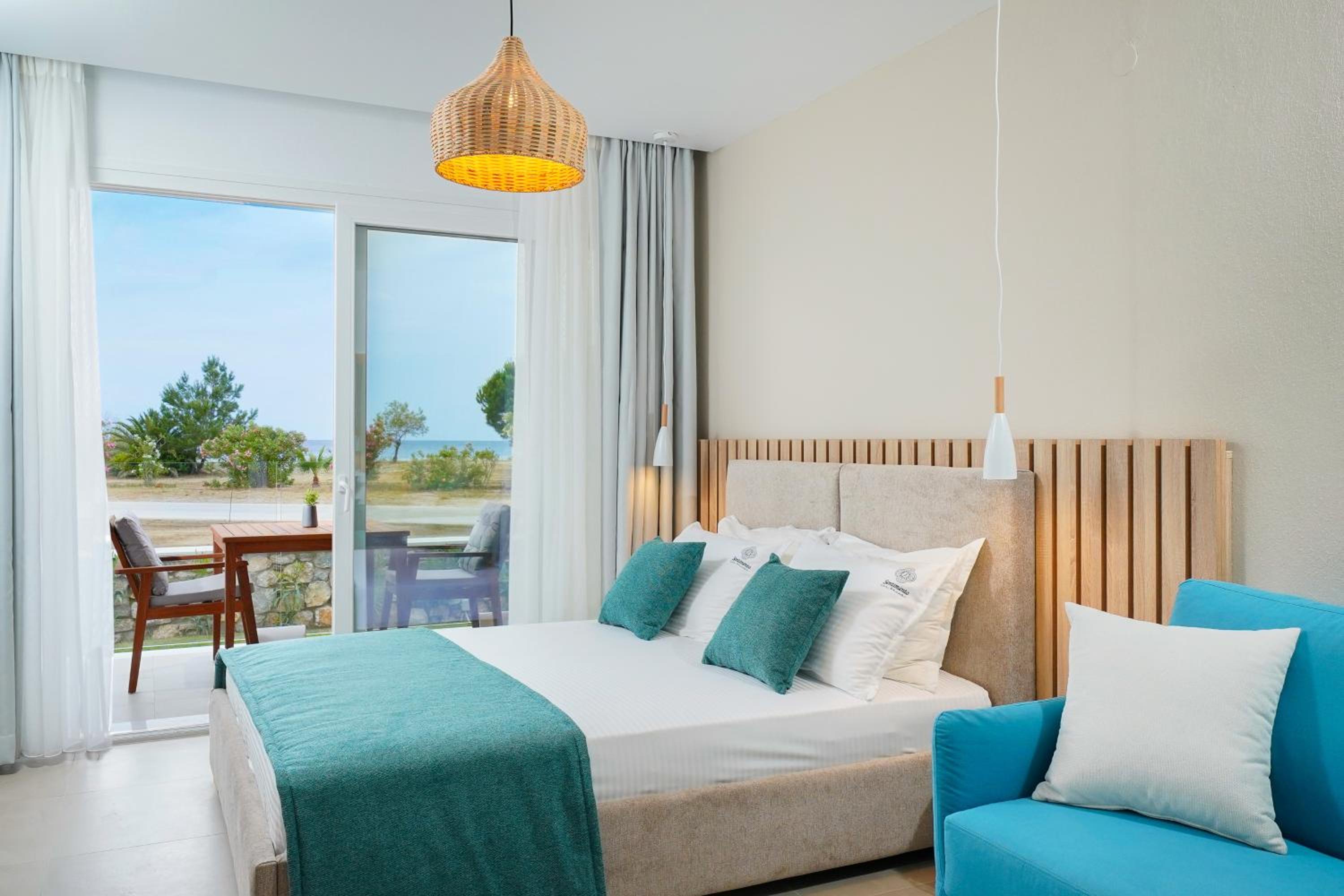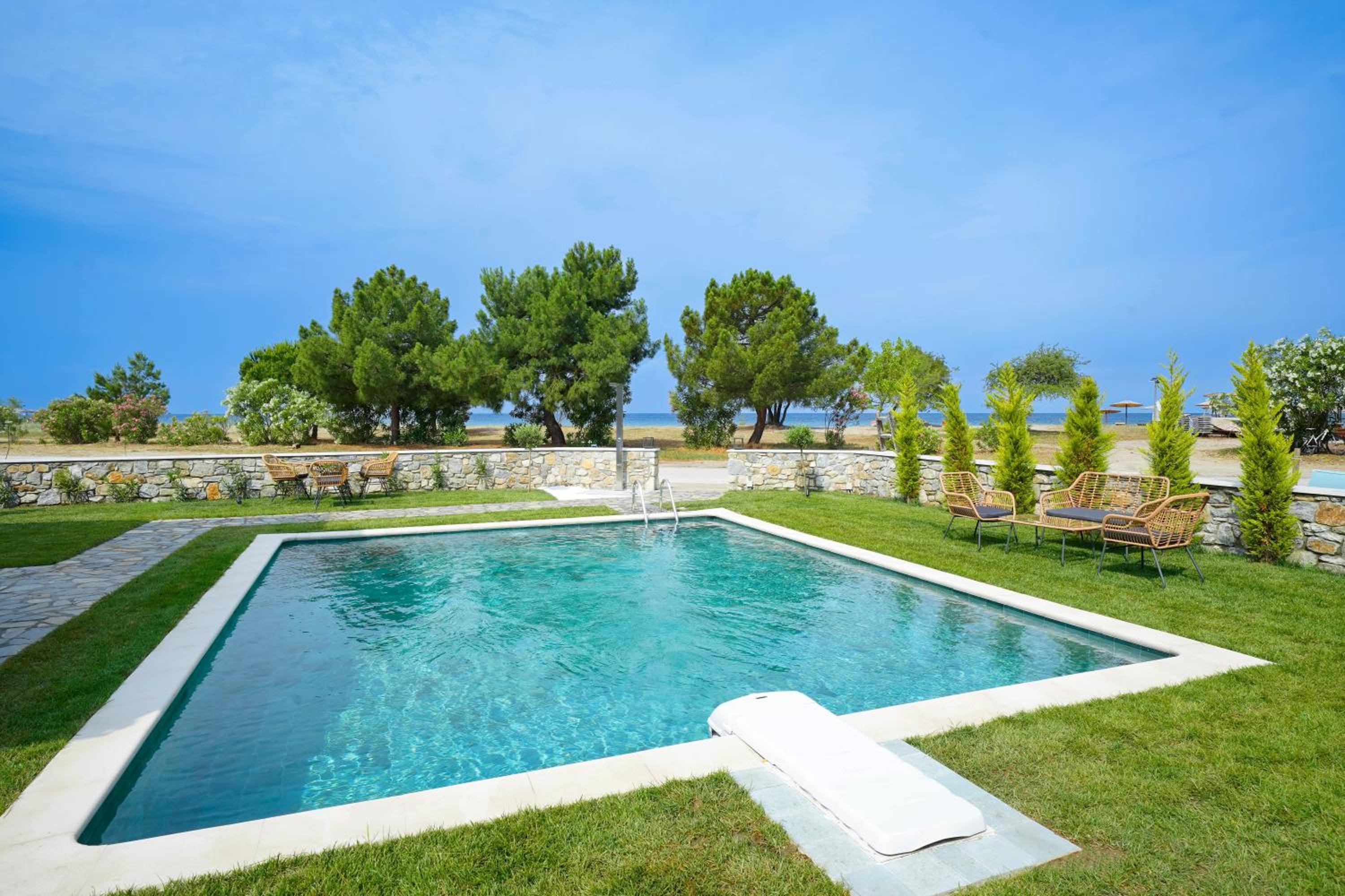 Everything was great! Stylishly decorated rooms that brought relaxation to mind. Loads of amenities - mosquito-nets, hair dryer, iron, sandwich maker + you could even choose between pillows. Spacious balconies with a partial sea-view, equipped with comfy patio furniture. The cleaning crew was meticulous with attention to detail. Staff was friendly and helpful. We were pleasantly surprised by a Greek night with live music and traditional food on our last night. Almost forgot - a cute little black and white cat that actively greeted us whenever we returned. Vast beach with calm water even on windy days just a few meters from the property. Good restaurants nearby. Satisfied with our choice.