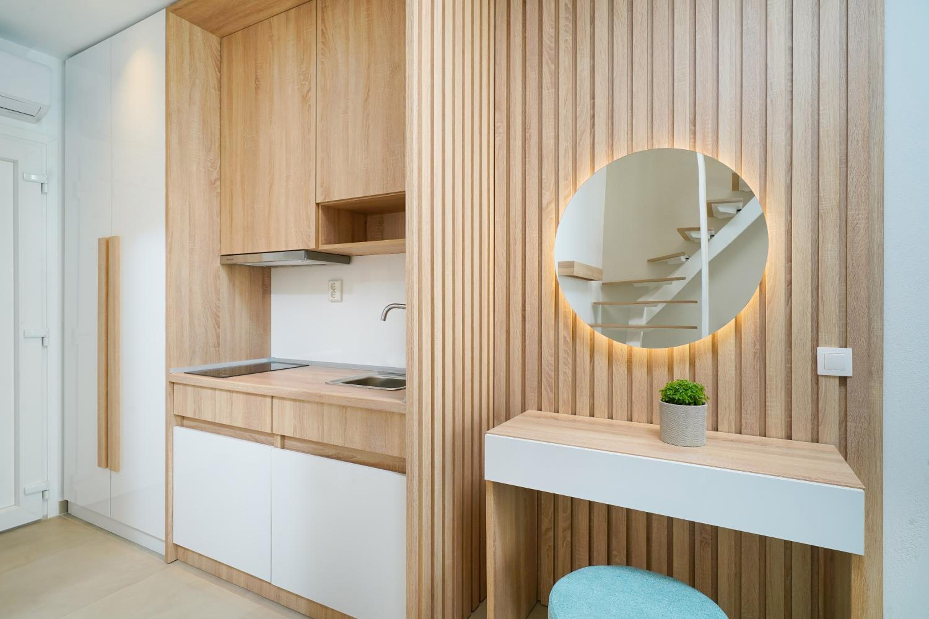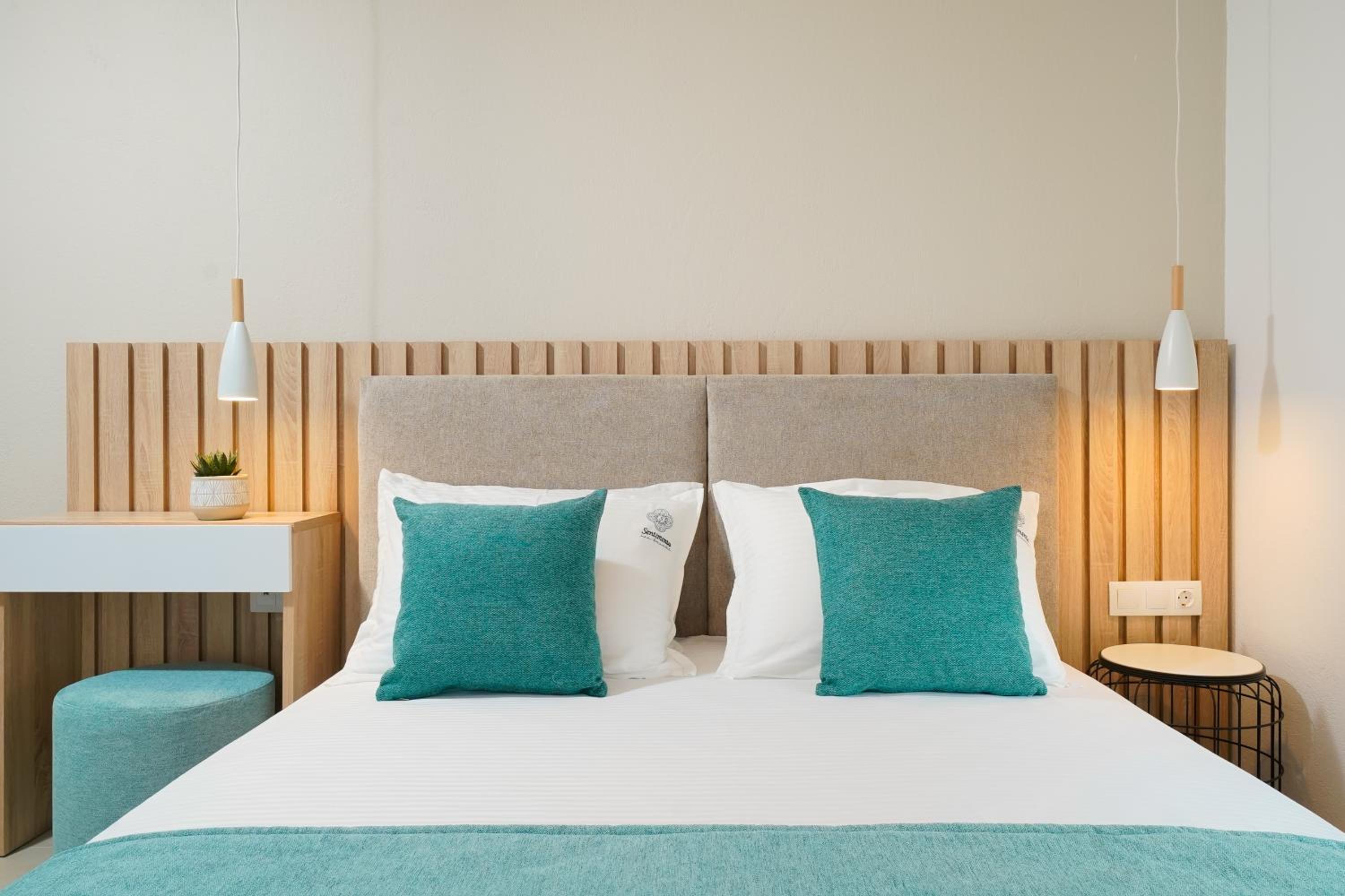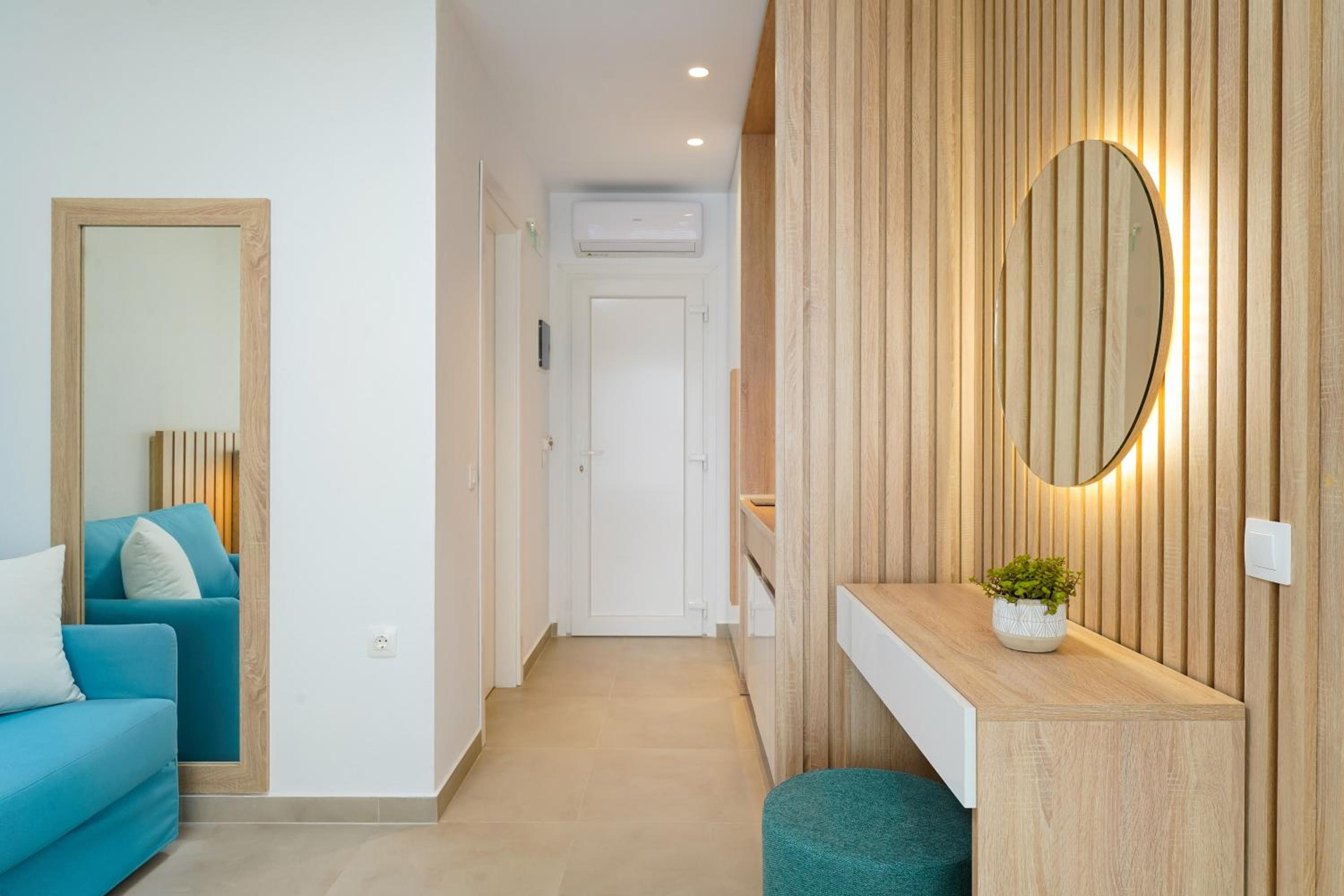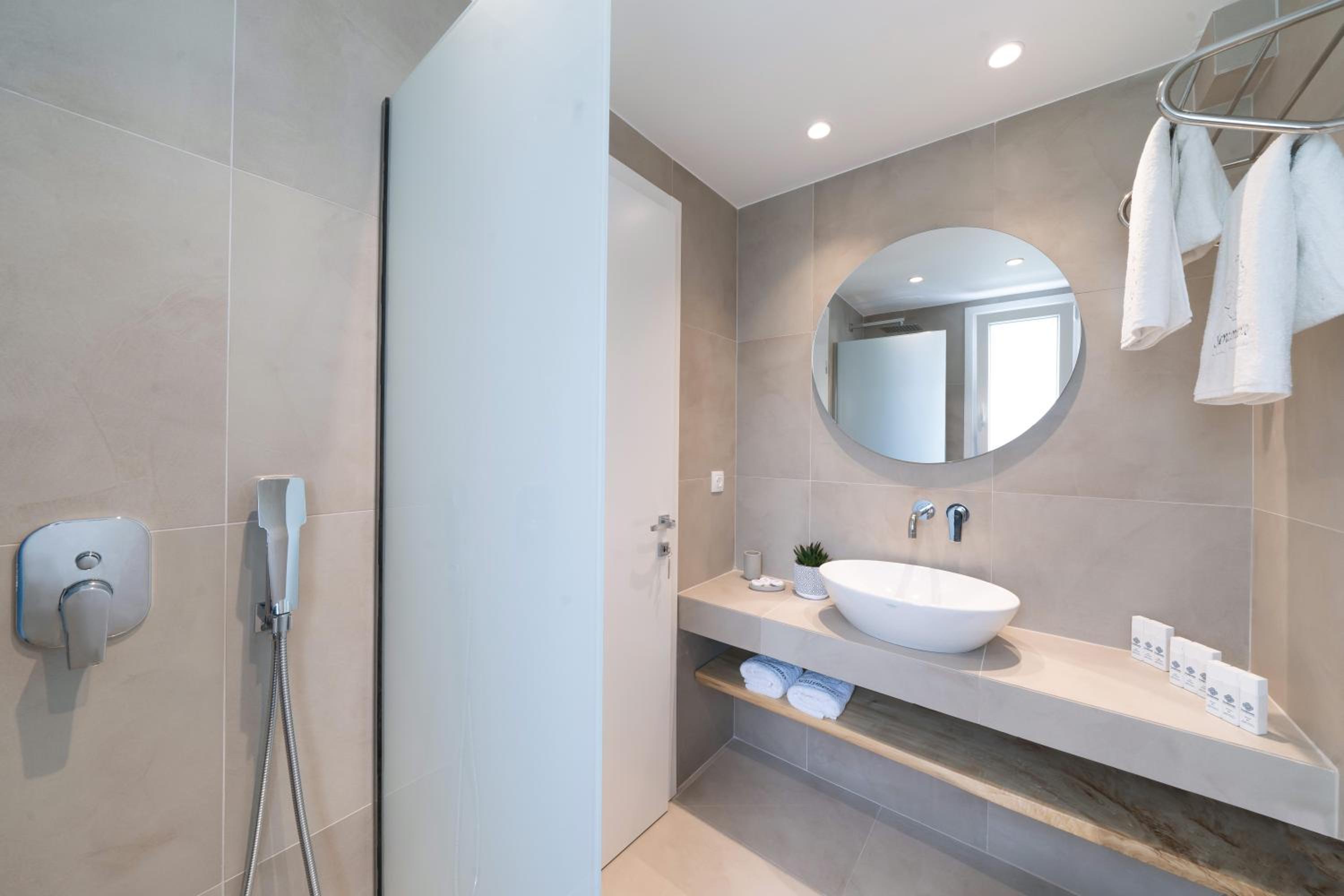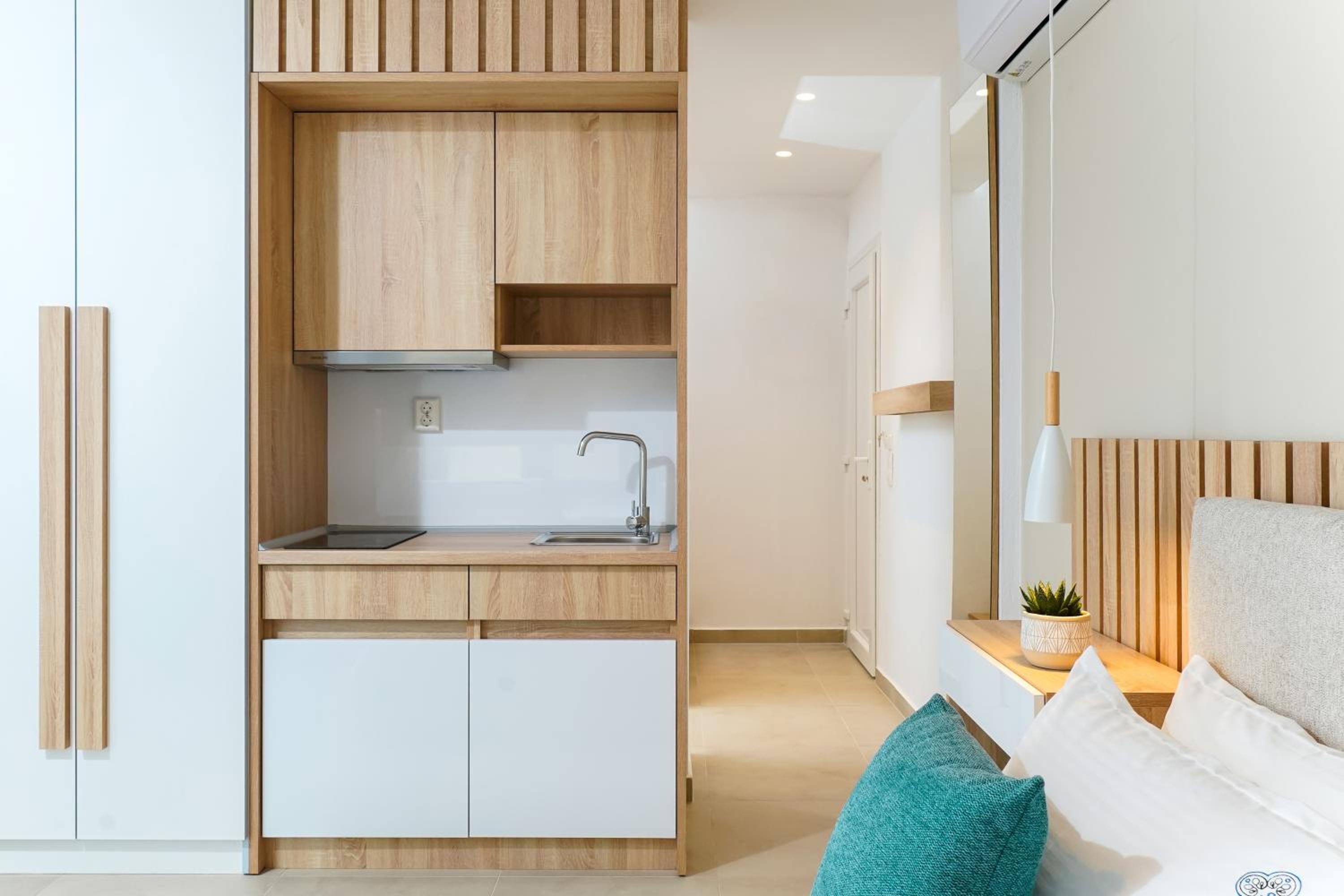 Everything was great! Stylishly decorated rooms that brought relaxation to mind. Loads of amenities - mosquito-nets, hair dryer, iron, sandwich maker + you could even choose between pillows. Spacious balconies with a partial sea-view, equipped with comfy patio furniture. The cleaning crew was meticulous with attention to detail. Staff was friendly and helpful. We were pleasantly surprised by a Greek night with live music and traditional food on our last night. Almost forgot - a cute little black and white cat that actively greeted us whenever we returned. Vast beach with calm water even on windy days just a few meters from the property. Good restaurants nearby. Satisfied with our choice.