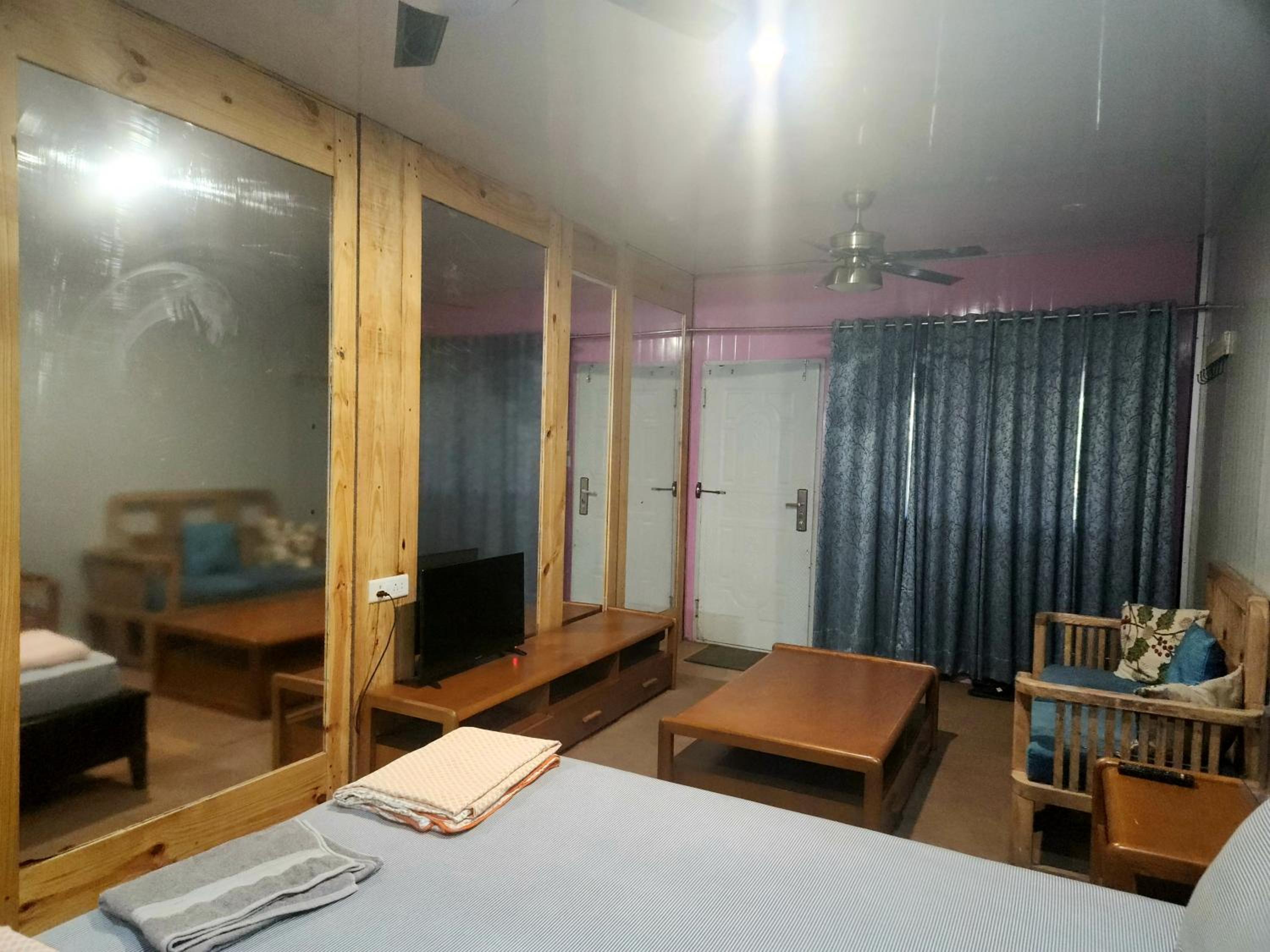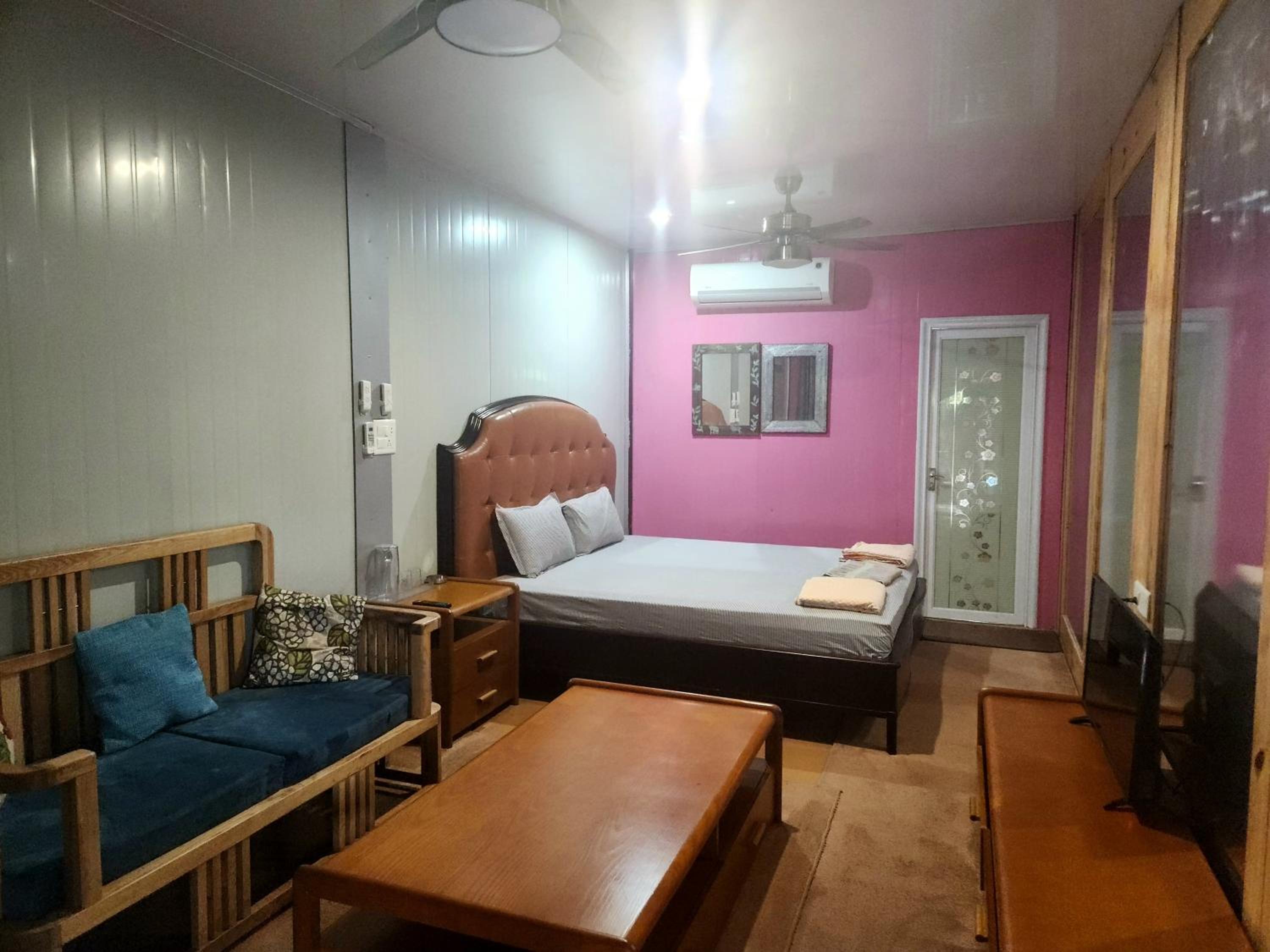 Nell'insieme l'hotel è carino e l'idea dell'utilizzo dei container mi piaceva, il mio sogno è farmi una casa in questo modo. Le camere ed il bagno pur essendo spaziosi, non hanno un arredamento che ti faccia diventare piacevole starci: ho soggiornato al piano terra e non avrei potuto aprire la finestra o la tenda 1 per le zanzare, 2 perchè non avrei avuto privacy. Ho chiesto di togliere dei copridivani con cuscinoni in peluche di un qualche tipo x' davano proprio una brutta idea soprattutto abbinati ai grandi tappeti non così puliti. Ho chiesto mi fossero cambiati i cuscini perchè c'era un odore stagno di sudore altrui e devo dire che sono stati subito solerti a farlo ed a rendermi più comodo possibile l'alloggio. Infatti i dipendenti e la proprietà sono stati molto carini! Gli aerei che passano proprio sopra all'hotel si sentono molto: personalmente non mi hanno infastidito + di tanto ma col senno del poi non avrei fatto 2 notti qui ma solo una. Le lenzuola erano pulite e mi sono state cambiate anche dopo solo la prima notte. Non lontanissimo c'è la fermata della metro non ricordo quale linea che aiuta ad avvicinarsi/muoversi perchè con l'Uber -visto il traffico costante de Delhi- è davvero difficile. Non abbiamo provato il ristorante. Mancherebbe un bollitore in camera con magari il the e Nescafè che in tutti gli altri posti in India ho trovato.