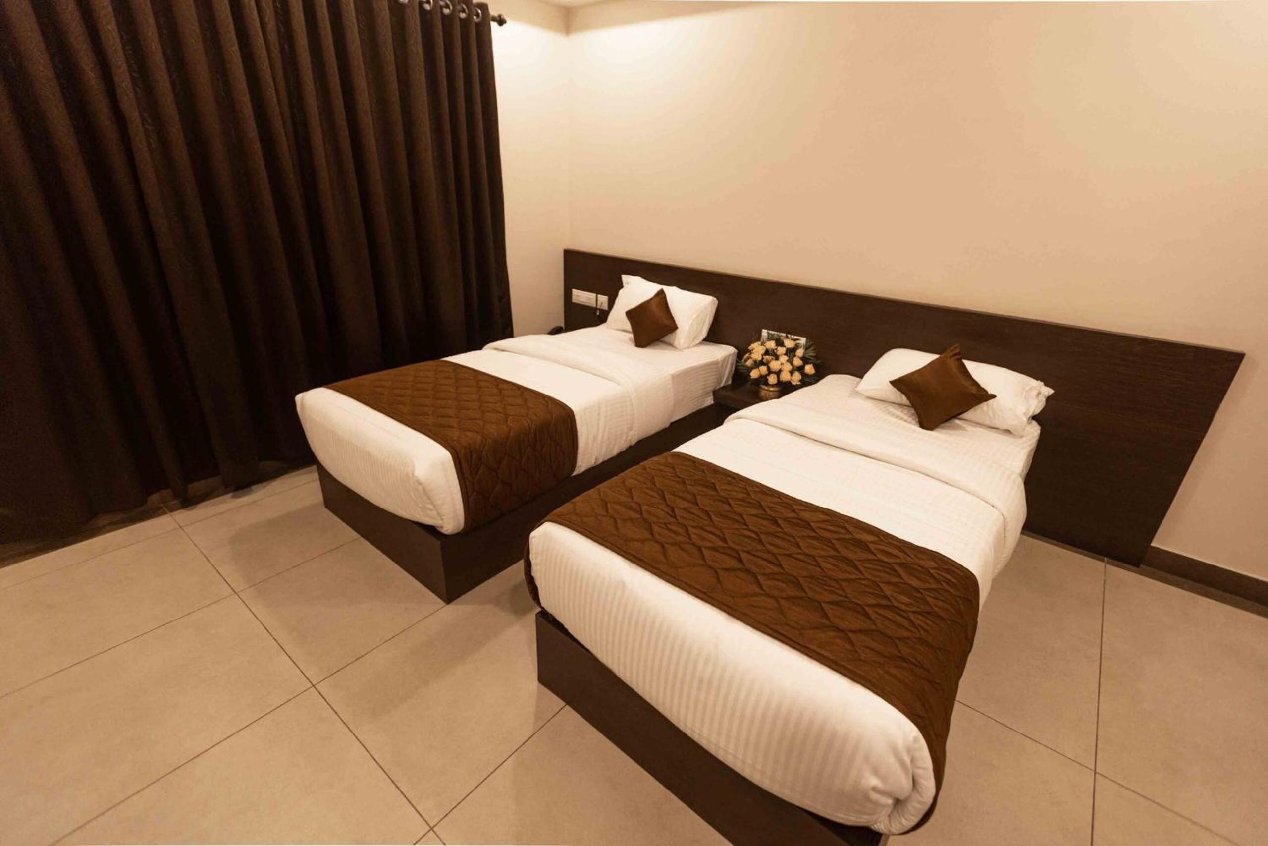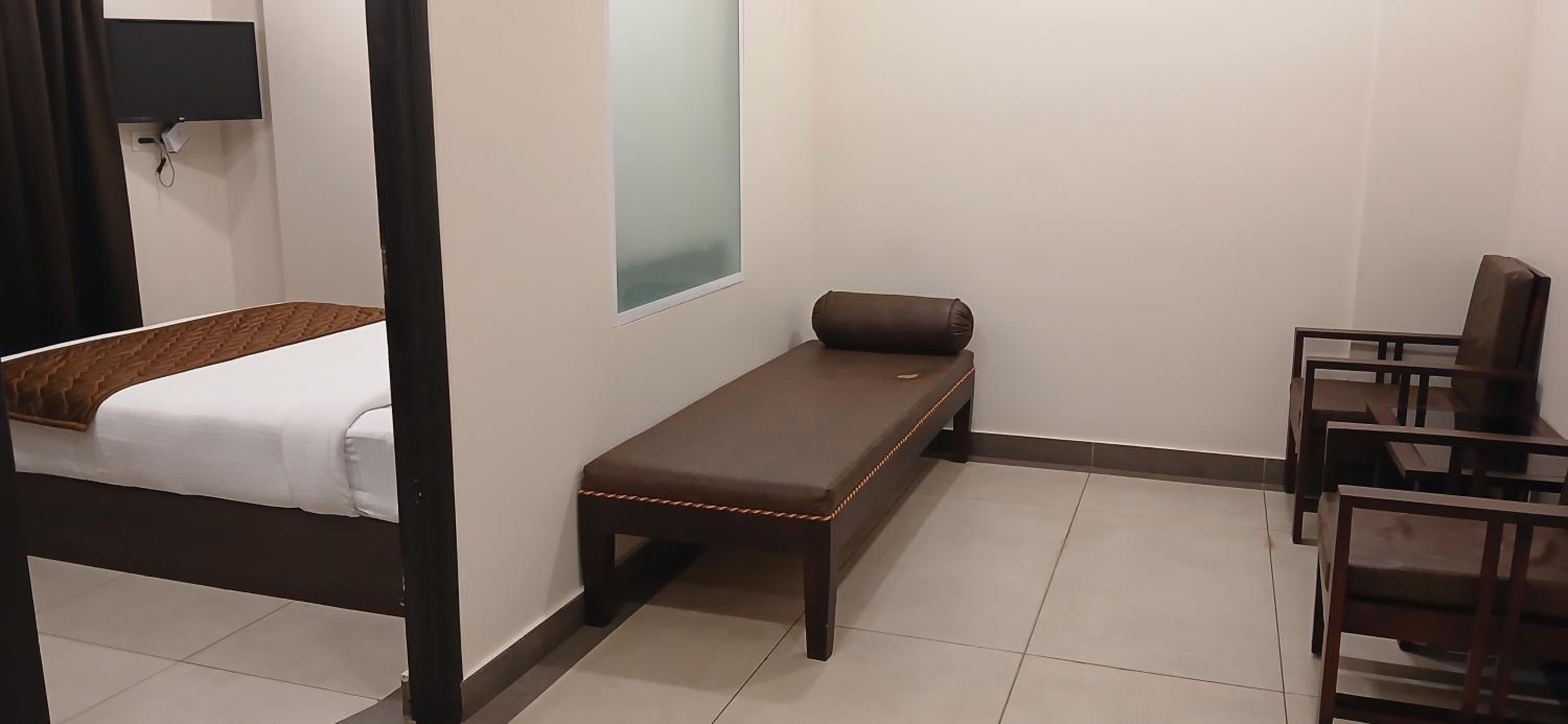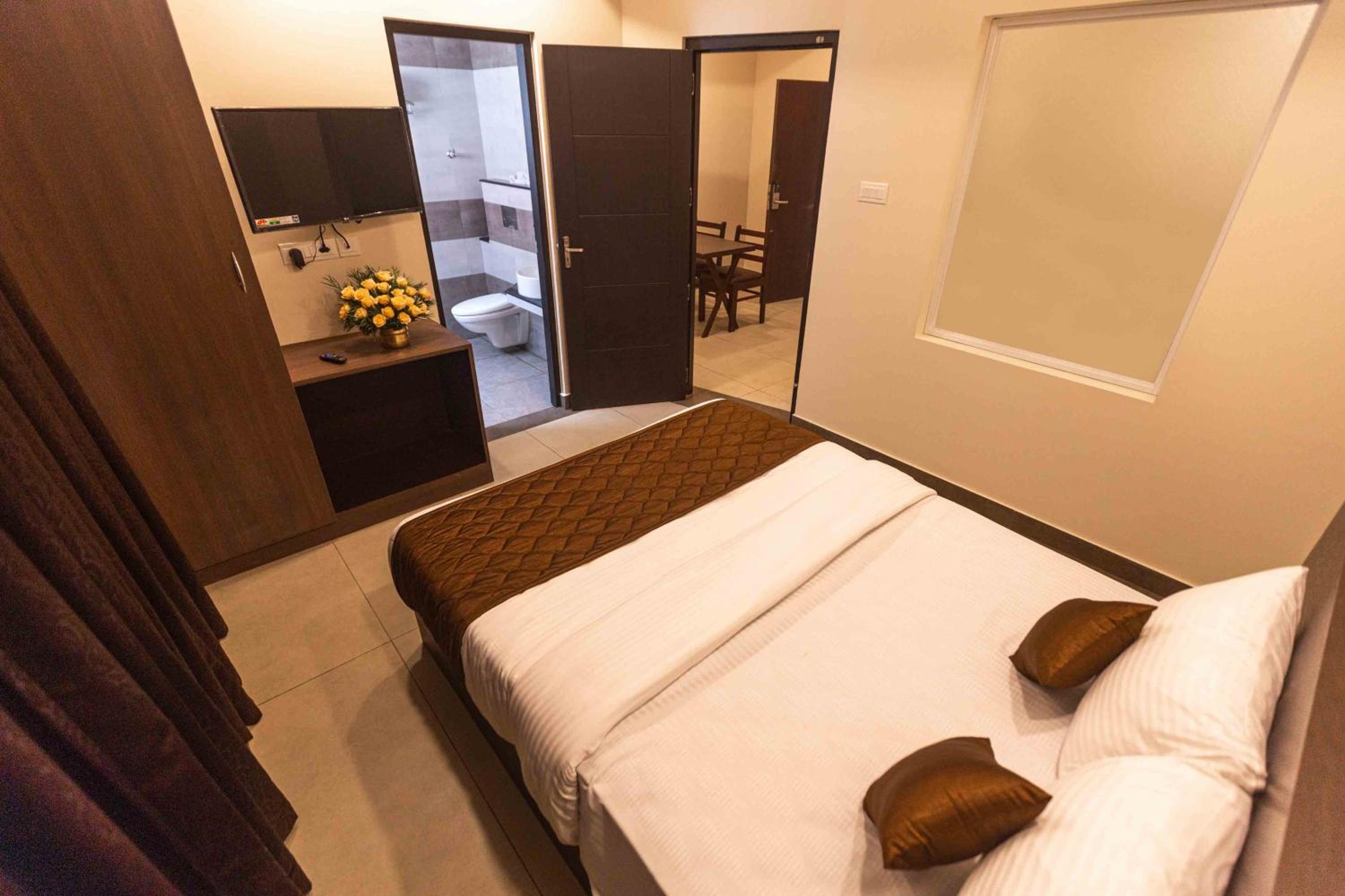 I am really happy about the location and convenience in booking the hotel. They didn't charge extra other than what was mentioned at booking time. Bed cleanliness can improve. The toilet is spacious and convenient. But some accessories are in damaged condition. Overall my family is very happy about the facilities available in the room including A/C ,spacious room with a wide bed which accomodate 3 members of us. The reception team is pleasant and helpful.