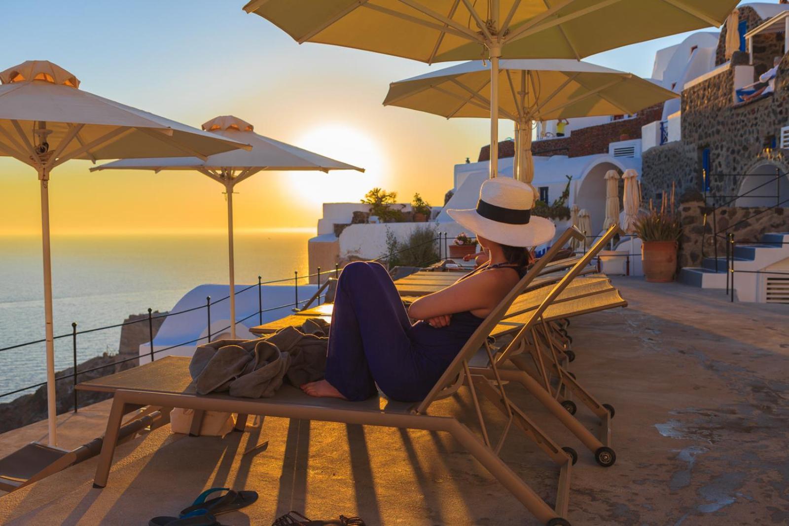最高の夕日を見られます。サンセットビューの部屋をとりましたが、エスペラスで宿泊している人なら皆使える共用のプールがあるスペースから、夕日が沈む海と白壁を照らすオレンジの光が反射するところを見ることができます。