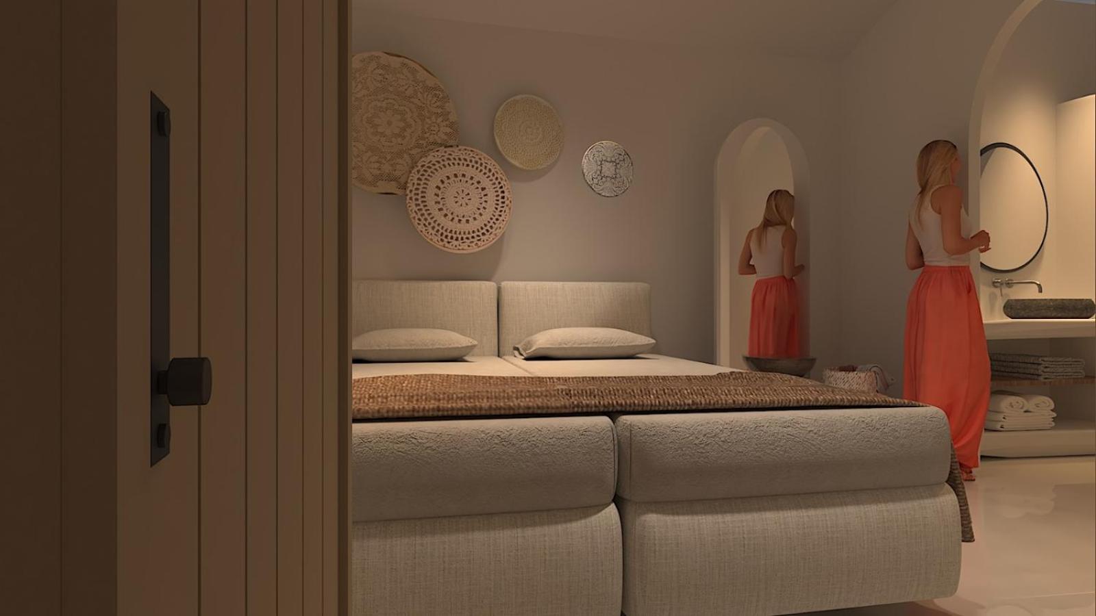 The Cycladic-style units at Esperas are not only tastefully designed but also equipped with top-notch features such as Entos mattresses, Greek bio & Zealots of Nature bathroom amenities, free Wi-Fi, satellite TV, and a DVD/MP3 player with a collection of DVDs.