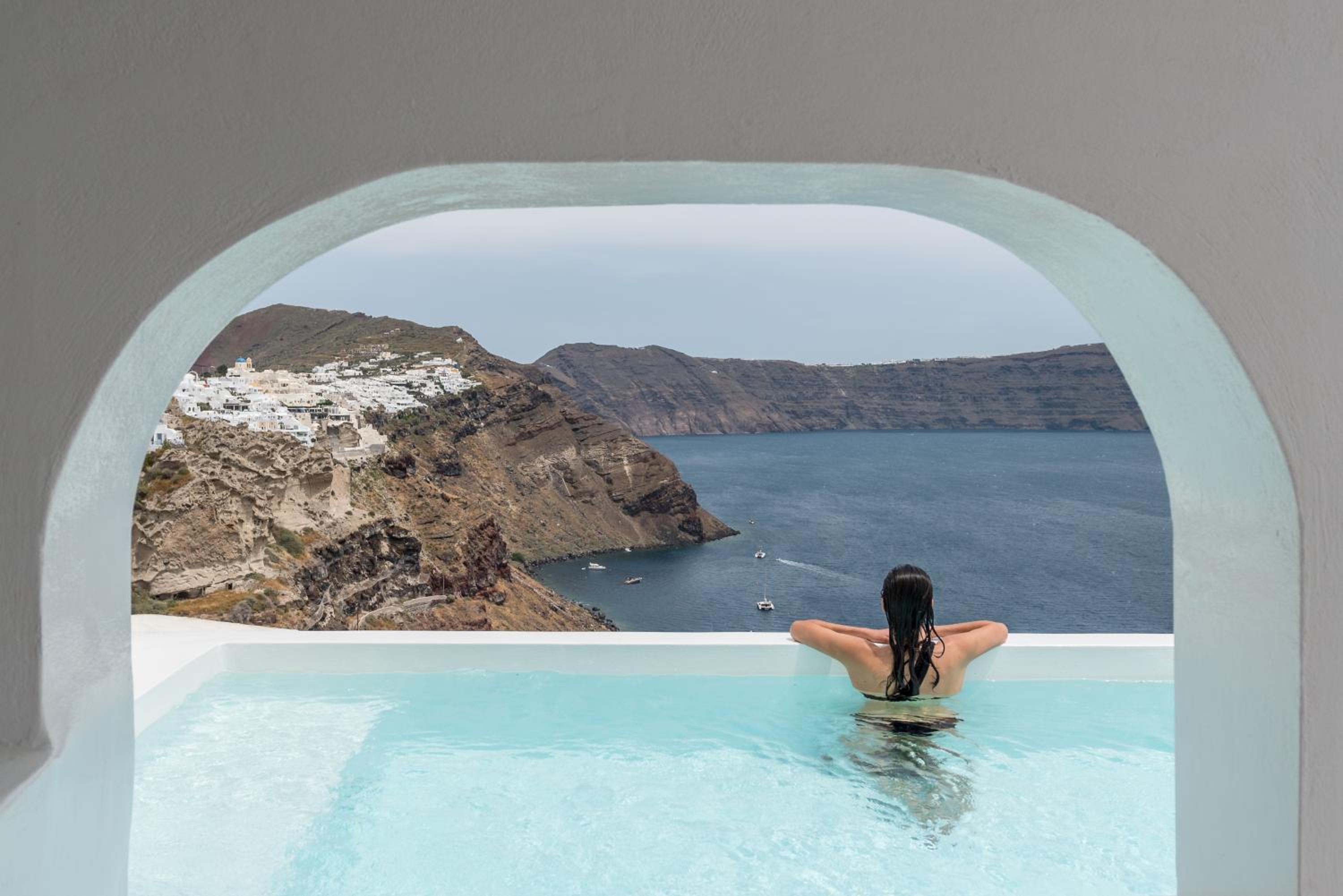 Offering stunning views of Oia with blue domes, the Aegean Sea, and the volcano, Aspaki by Art Maisons Hotel provides elegant suites with free Wi-Fi. The Cycladic-style property features whitewashed walls, vaulted ceilings, and arched entryways, each suite equipped with a mini bar and coffee machine. Guests can enjoy outdoor hot tubs or indoor plunge pools, with some suites even boasting private pools.