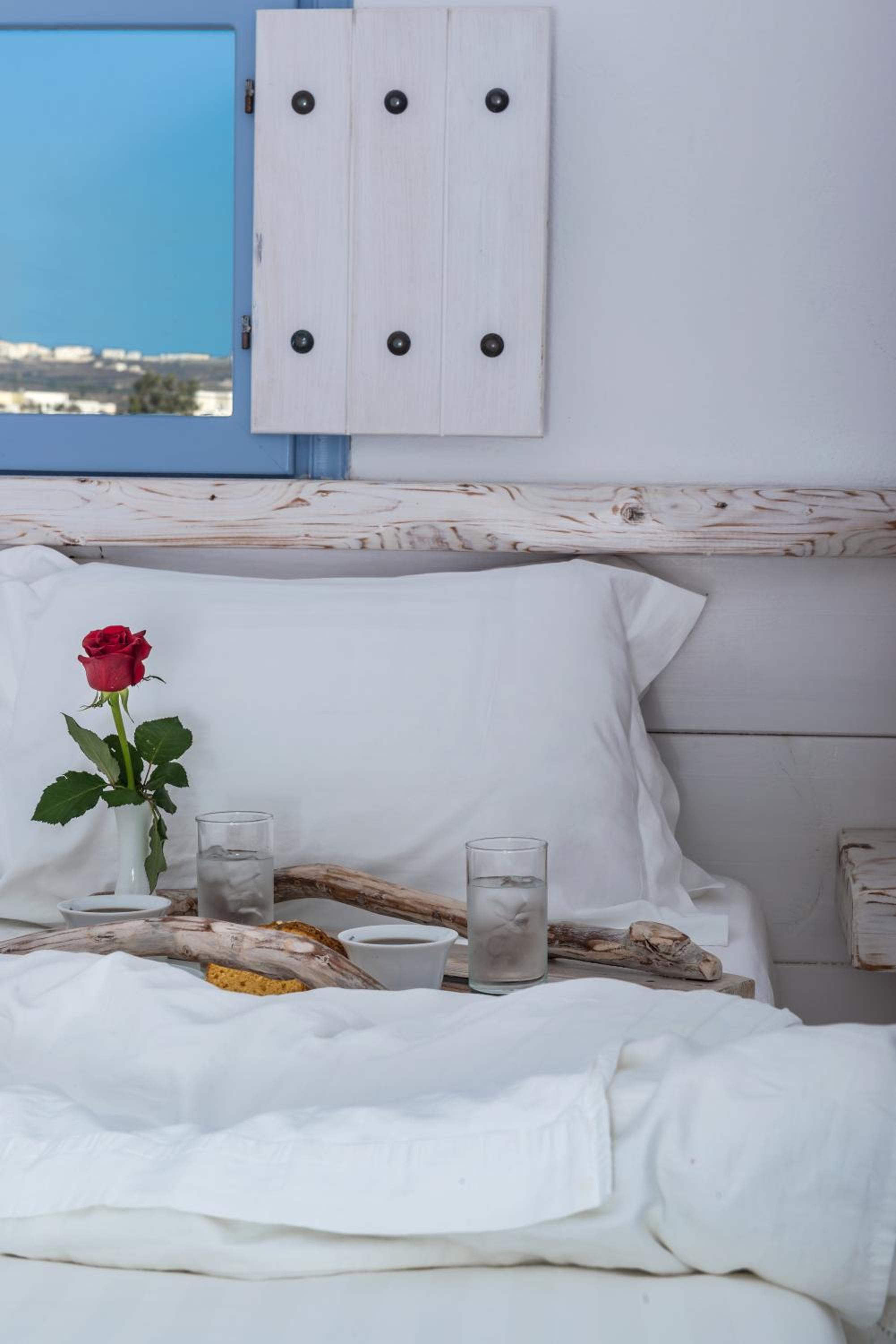 The private pool suite was even better than the photos. The view was stunning and the sunset spectacular, all in a nice quiet location. It’s just a short walk to the charming village of Megalochori. Hiring a car is a must to explore the island and there is plenty of free parking provided.