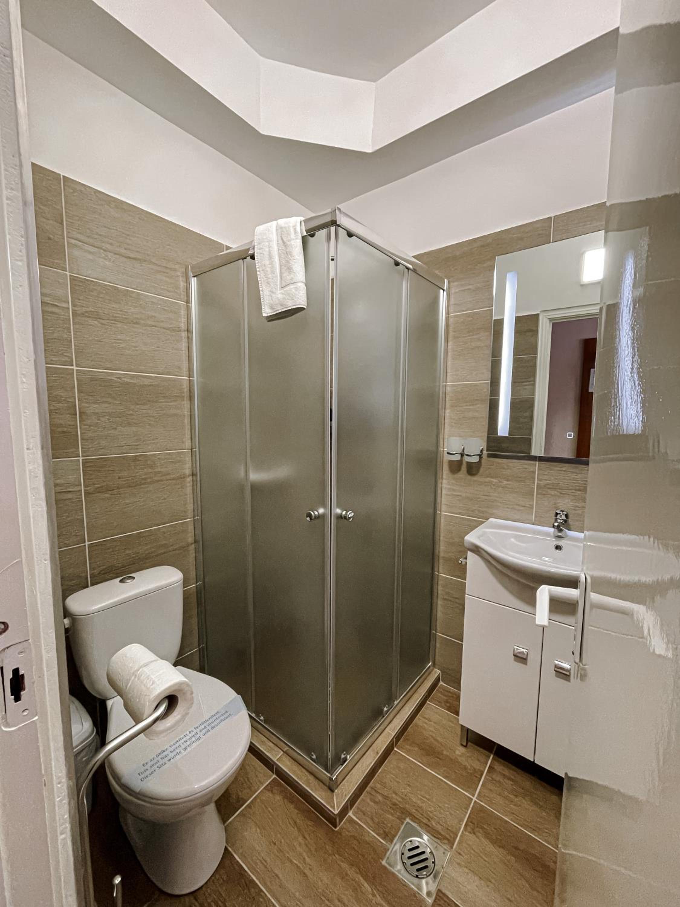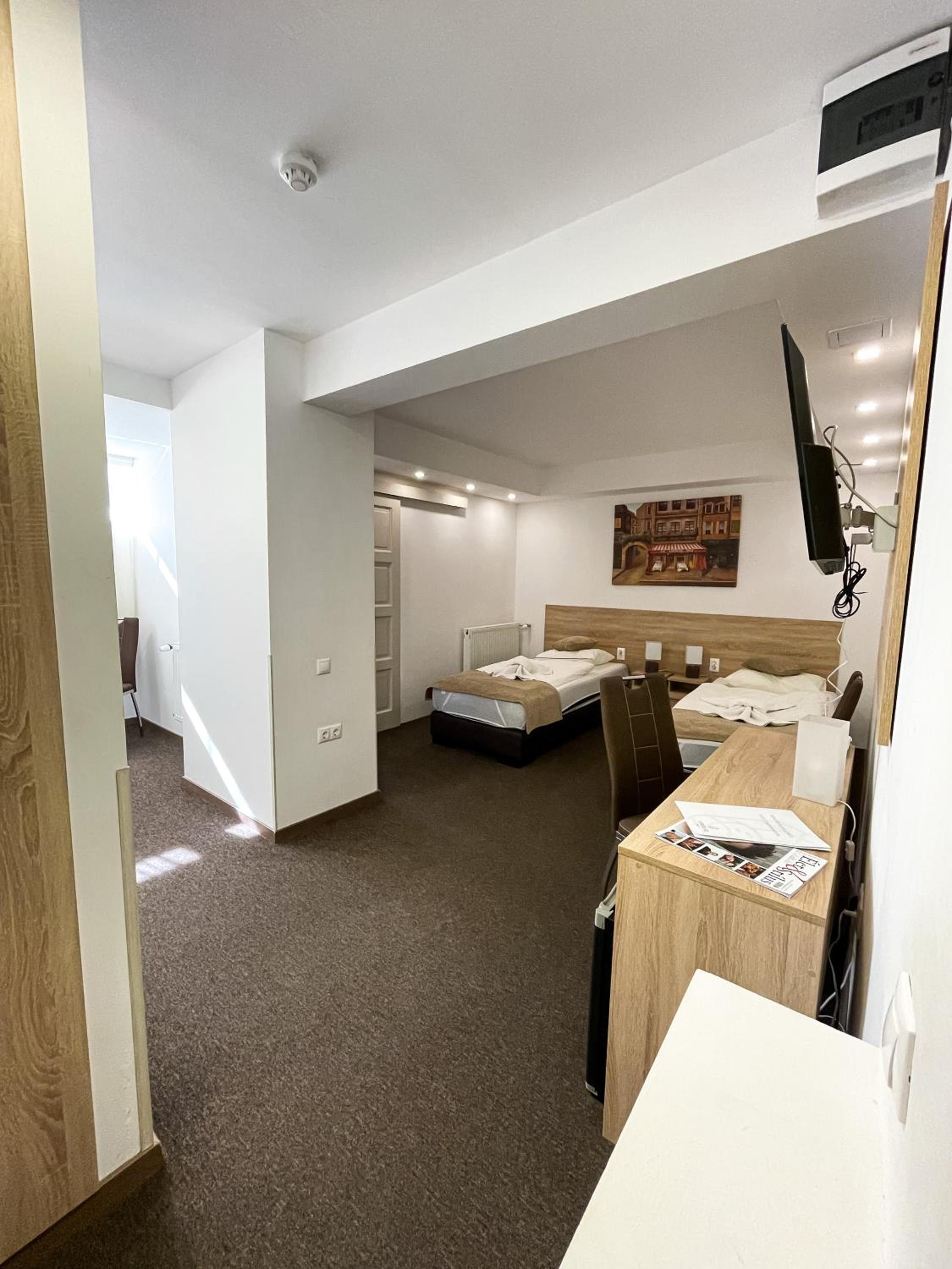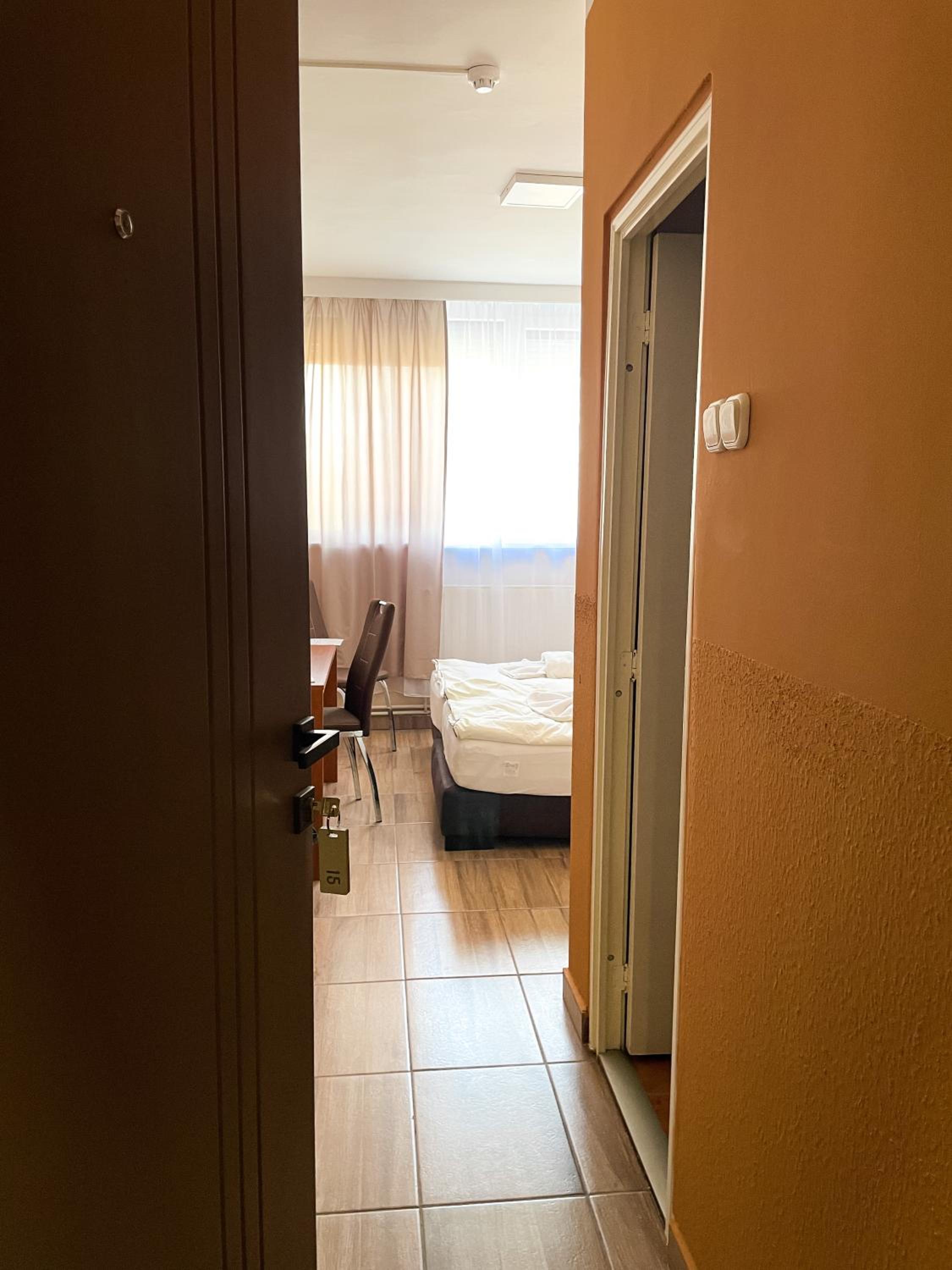 A szobában hősugárzóval kellett fűteni, a törülköző, amit kaptam vizes volt. A szobában nem volt felporszívózva, vagy csak felszínesen, mert a sarkokban állt a por és a hajszálak.