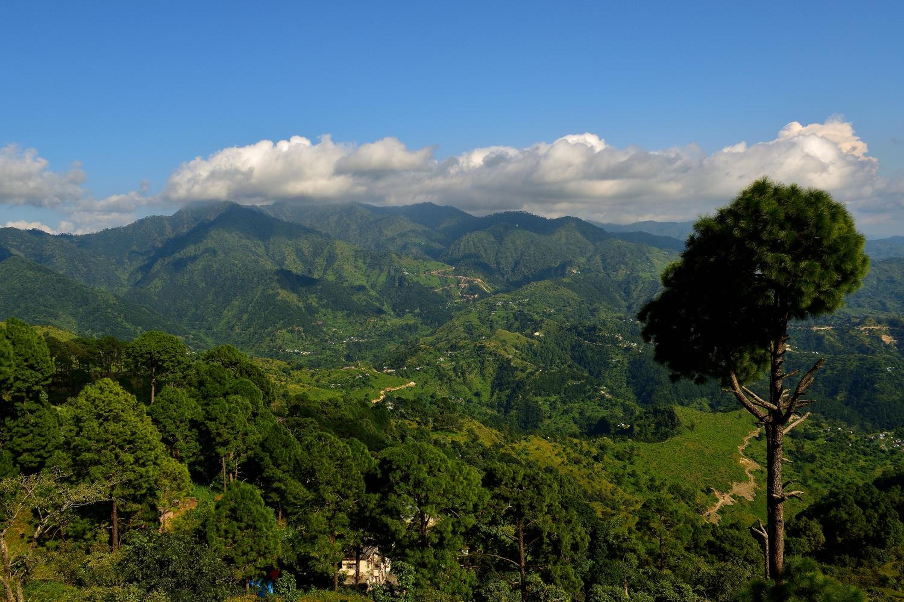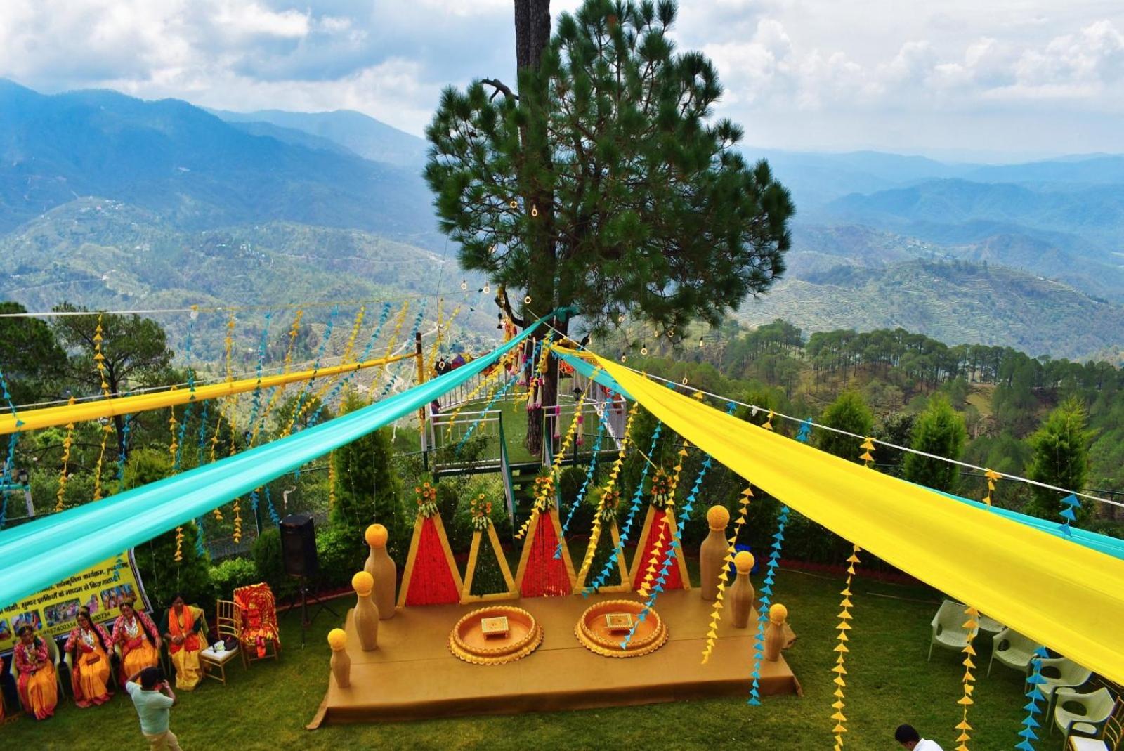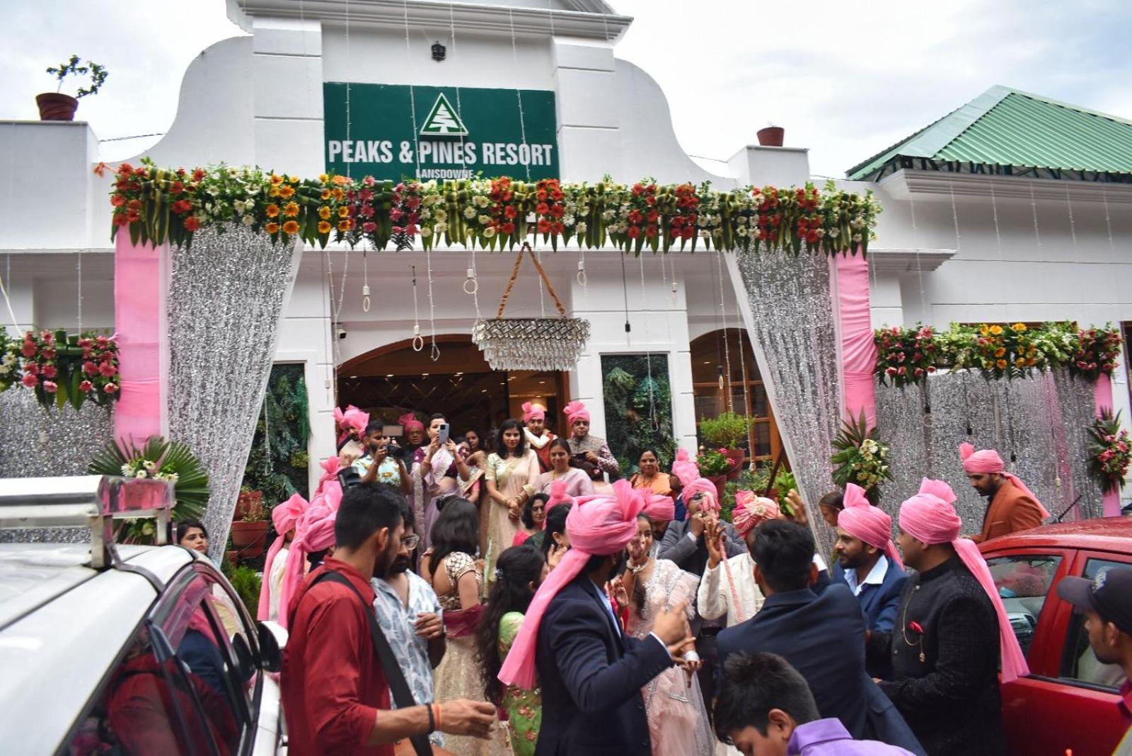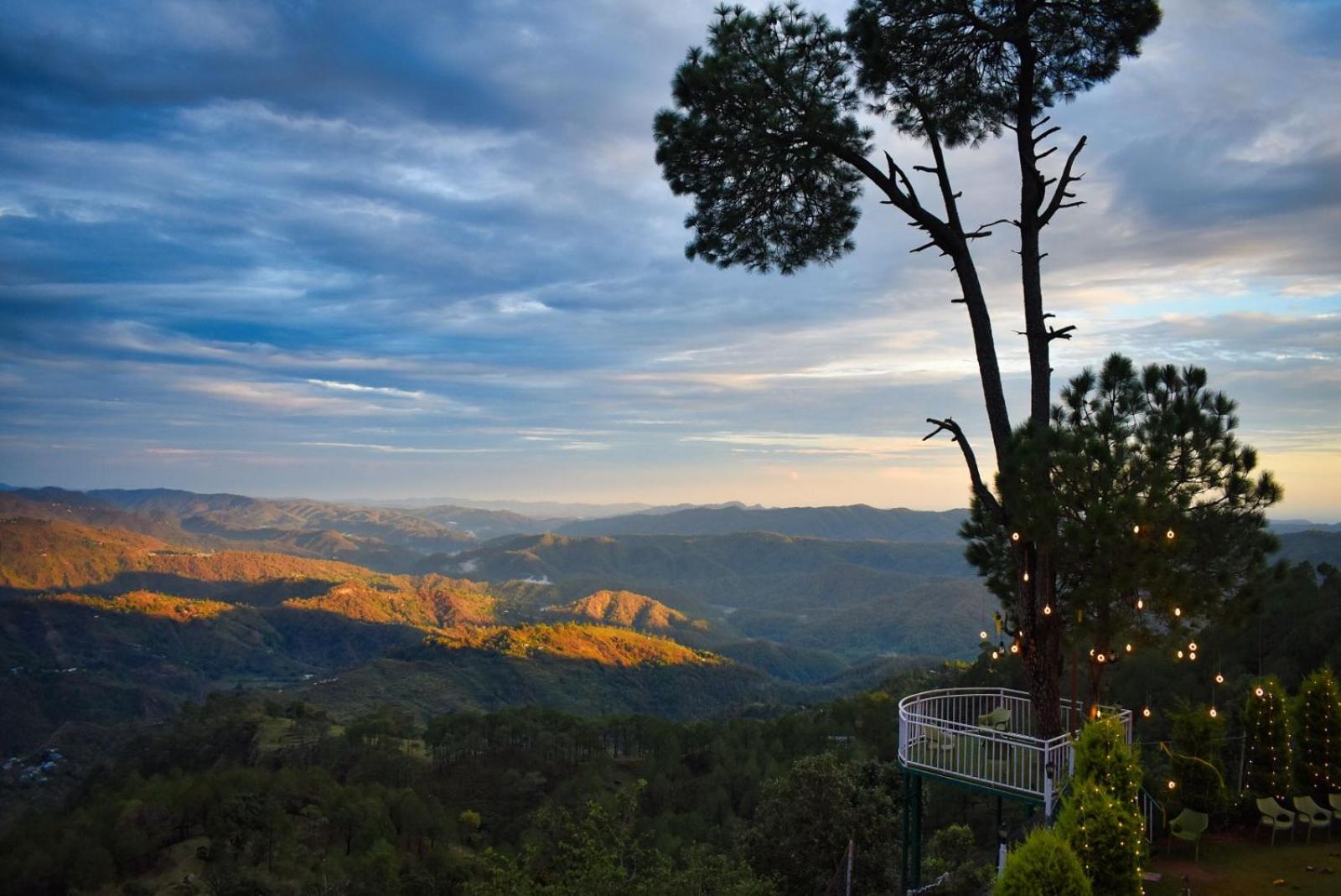 Peaks And Pines Resort in Lansdowne offers a luxurious 4-star experience with top-notch amenities. Each room features a stunning mountain view terrace, comfortable bedding, and modern facilities like a flat-screen TV and a coffee machine.