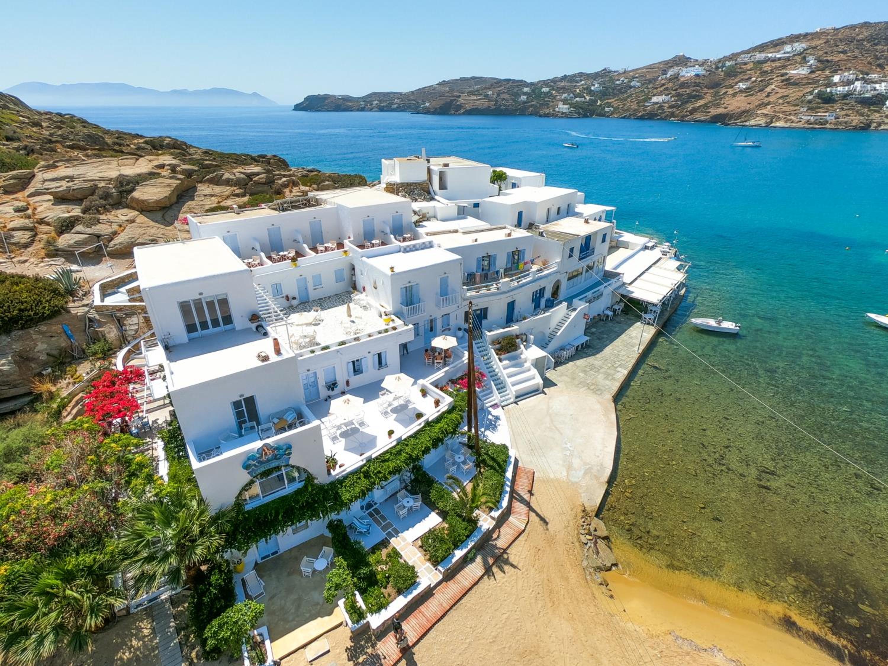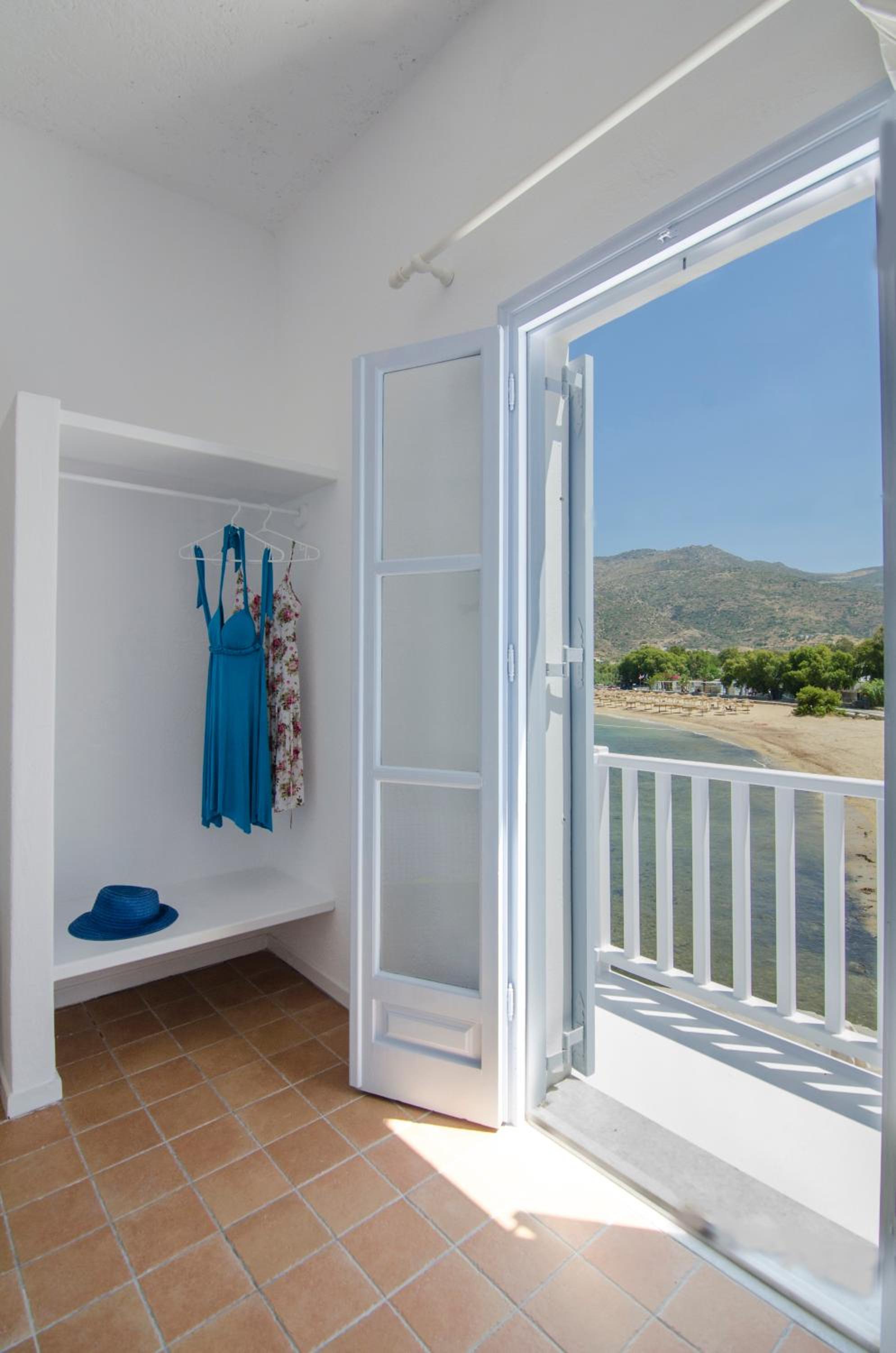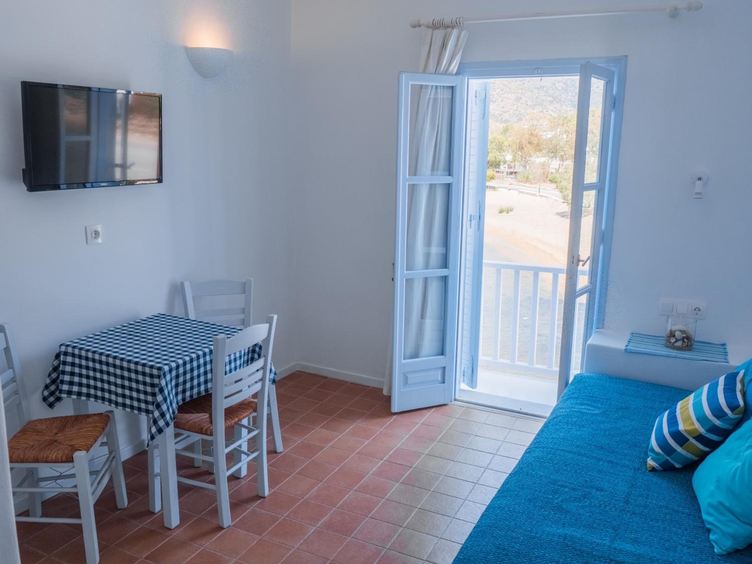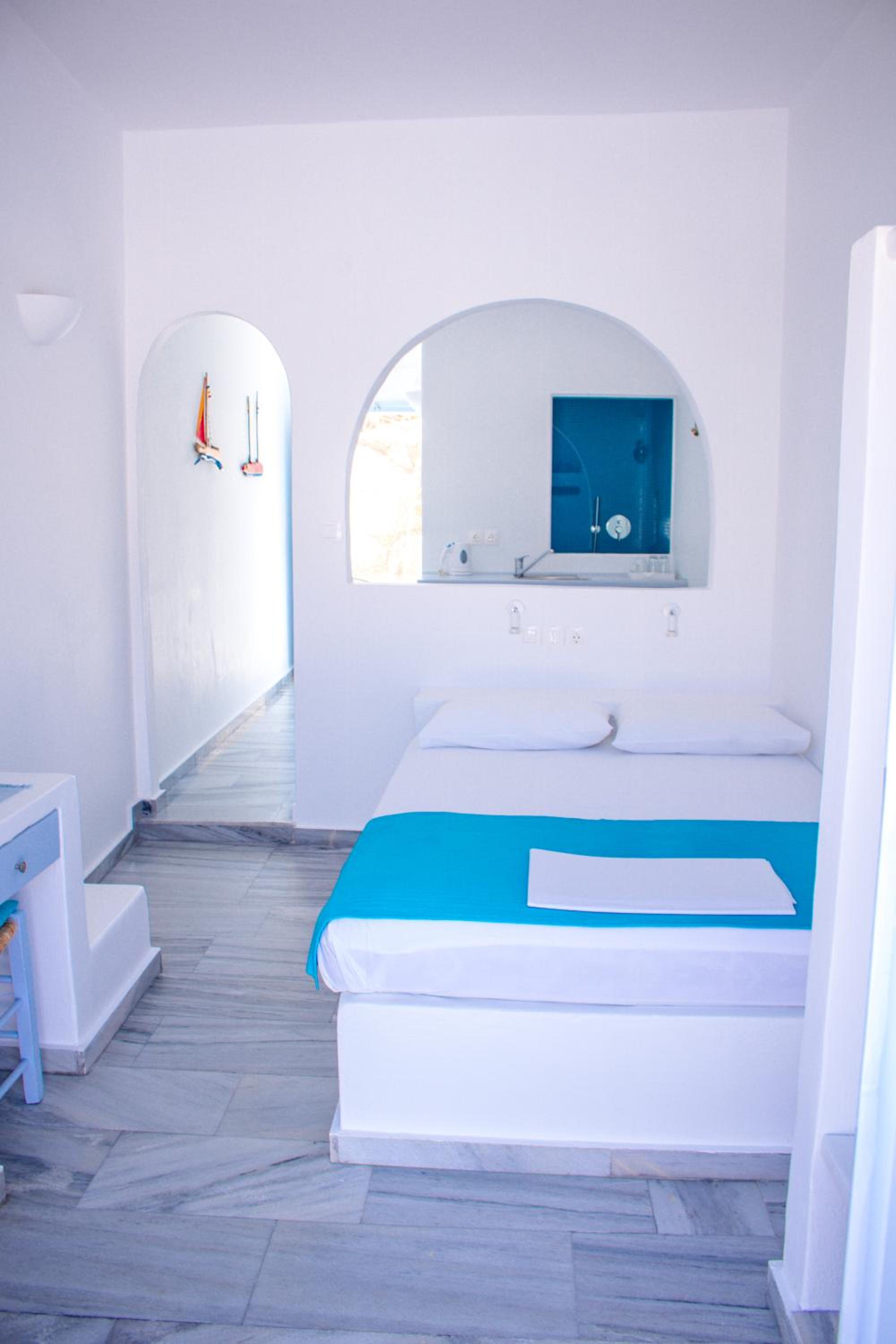 Elegant Accommodations Step into tastefully decorated studios, rooms, and apartments that provide a perfect blend of comfort and style. Enjoy your own balcony or shared terrace with mesmerizing Aegean Sea views.