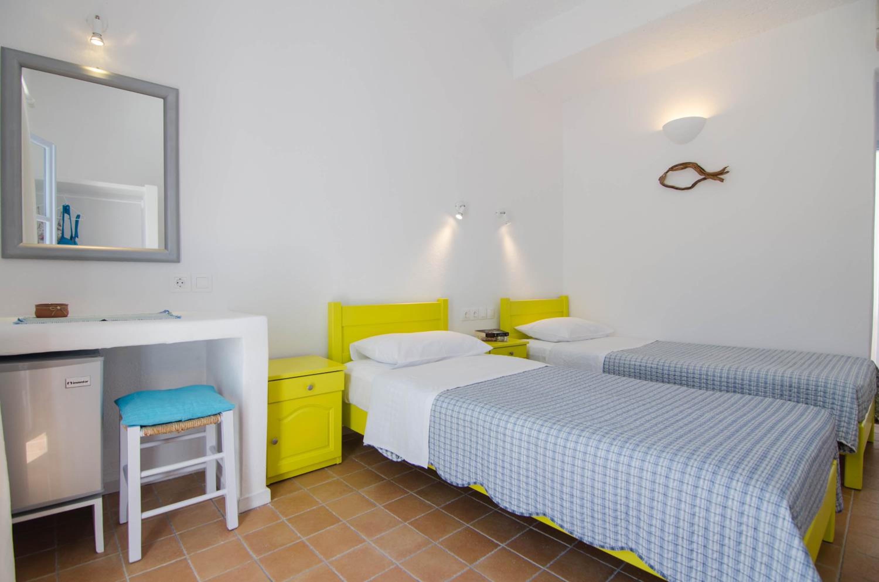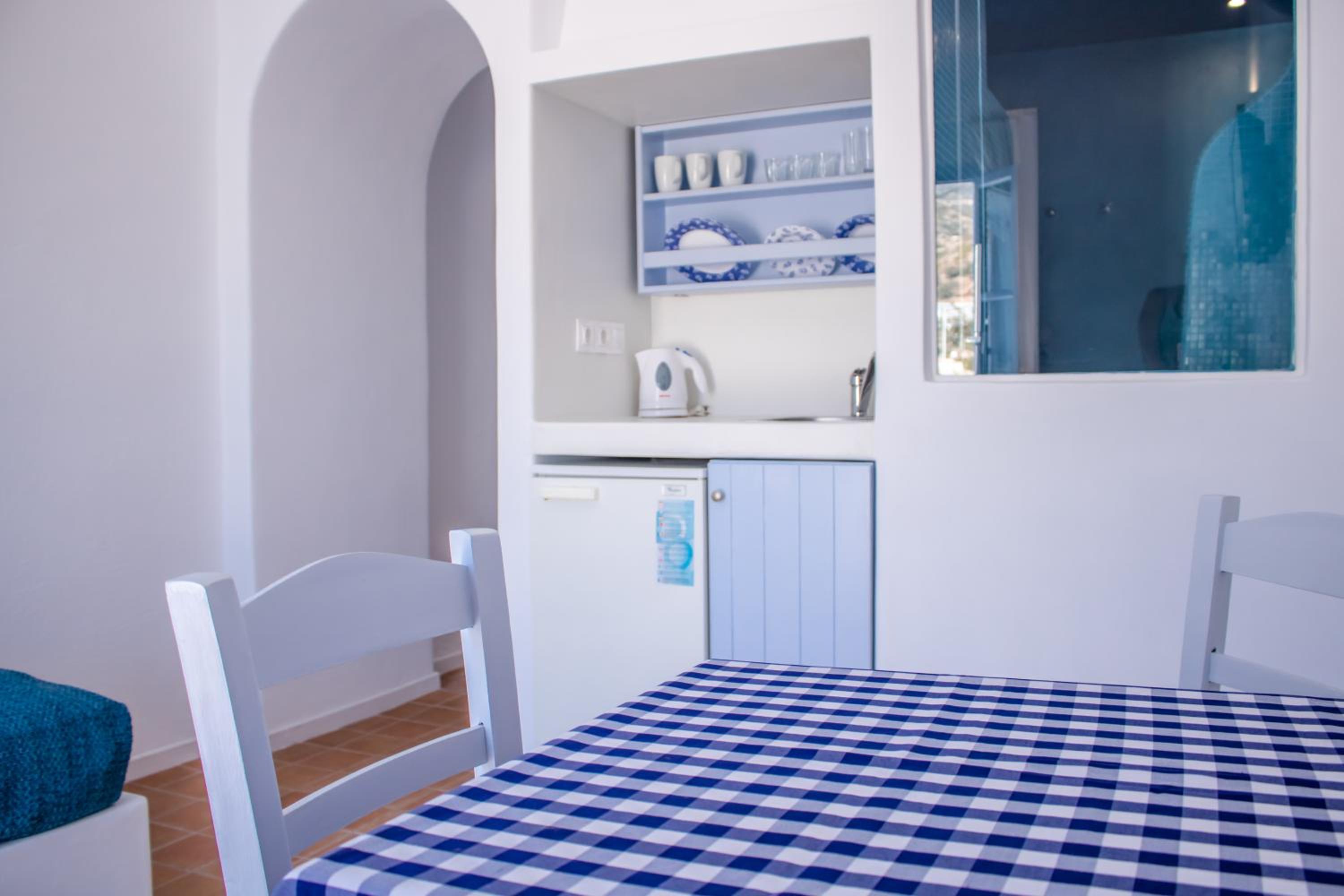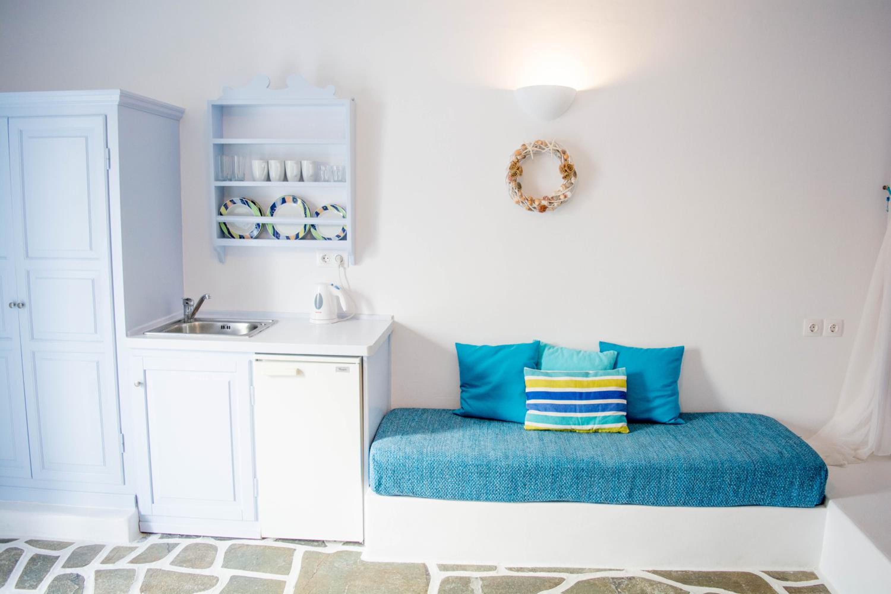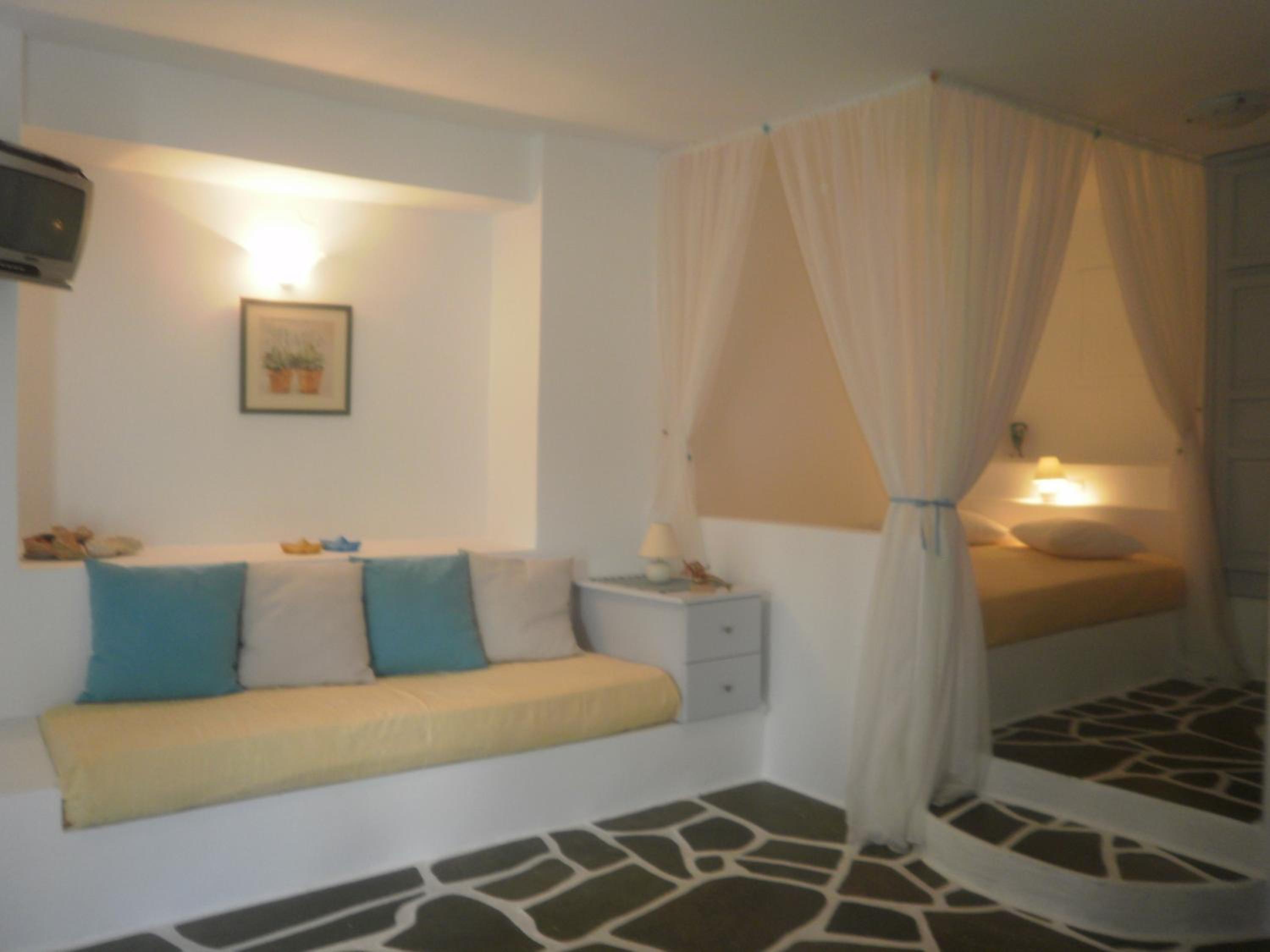 Elegant Accommodations Step into tastefully decorated studios, rooms, and apartments that provide a perfect blend of comfort and style. Enjoy your own balcony or shared terrace with mesmerizing Aegean Sea views.