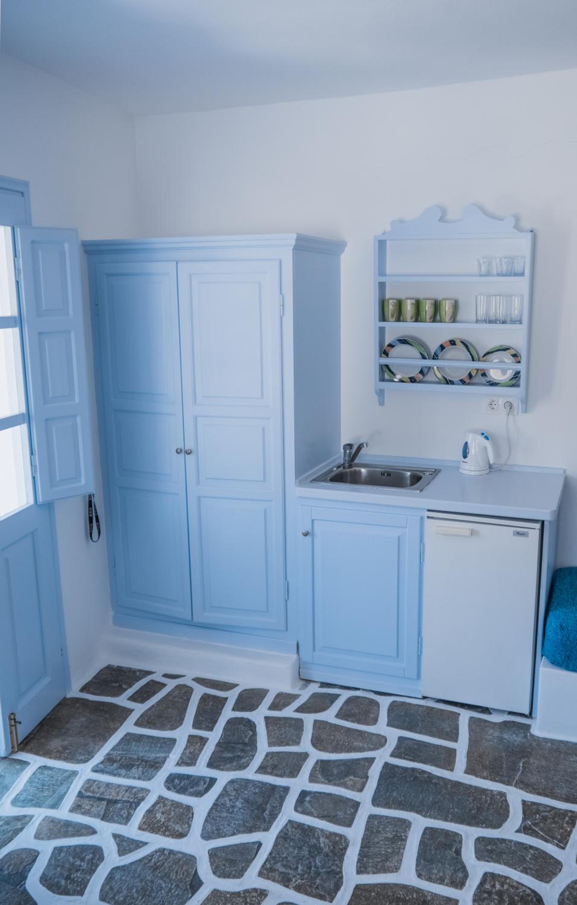 Limited breakfast options. The balcony door couldn’t be left open, as the wind was blowing them shut. Also, the hotel is close to the busiest beach bars in Ios, which means music until very late.