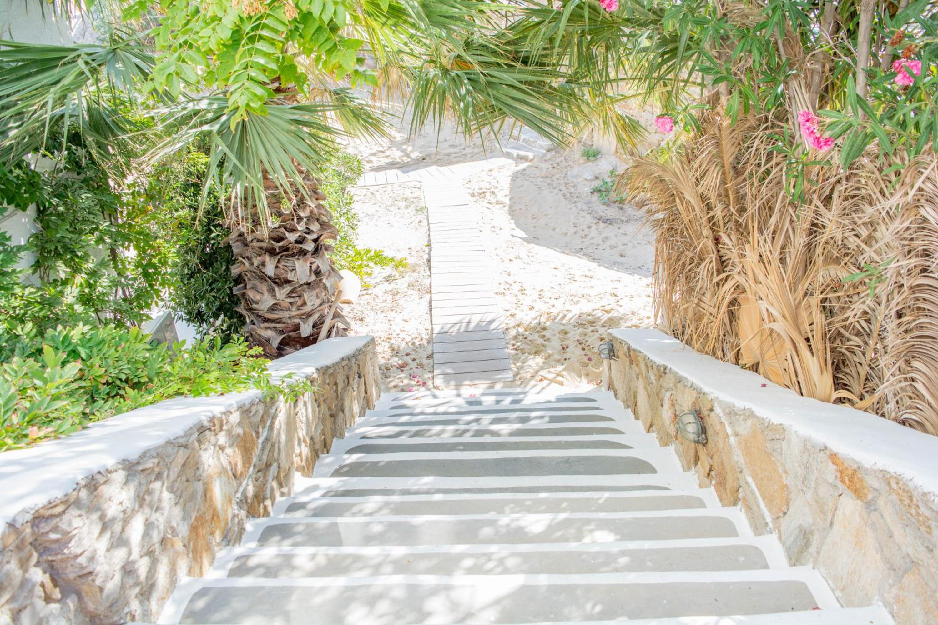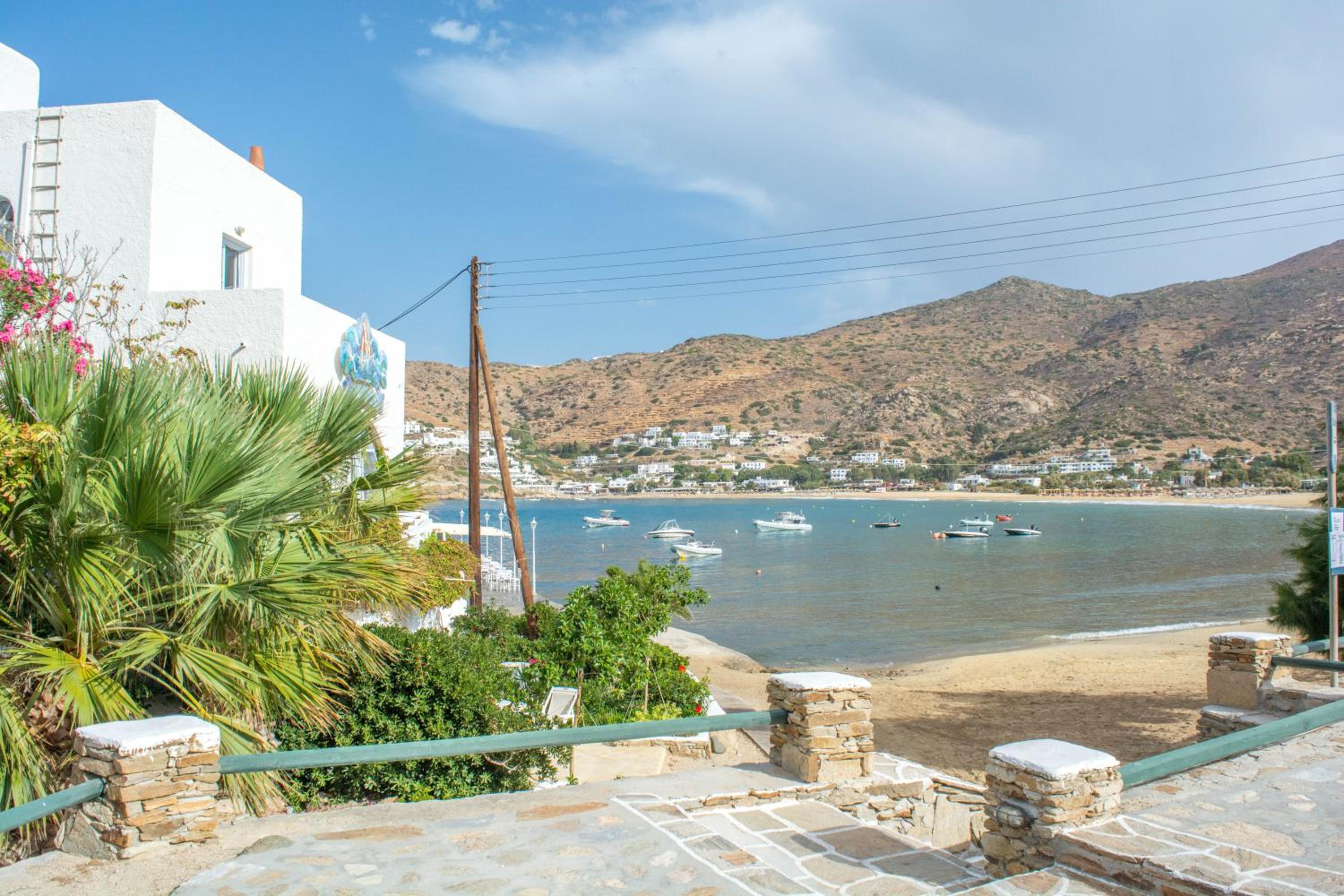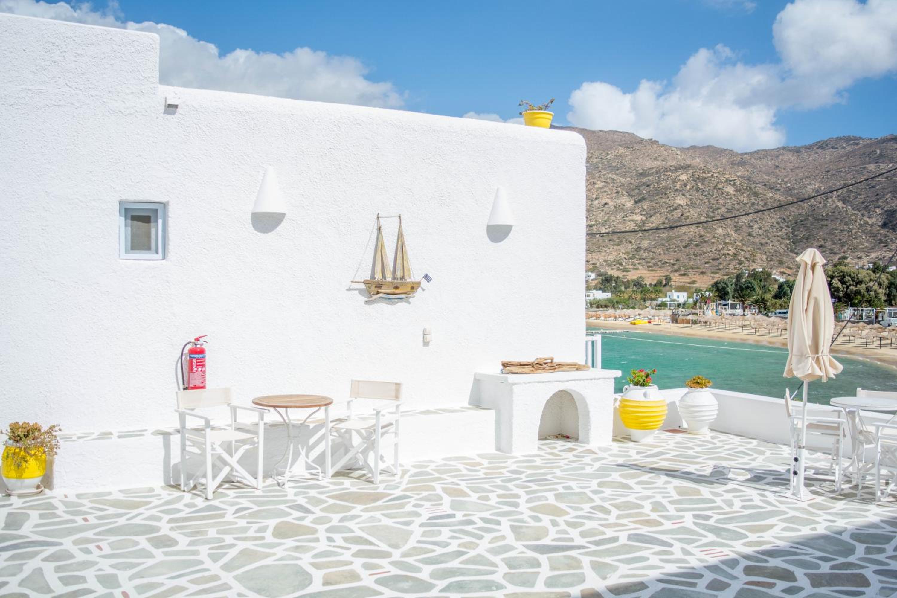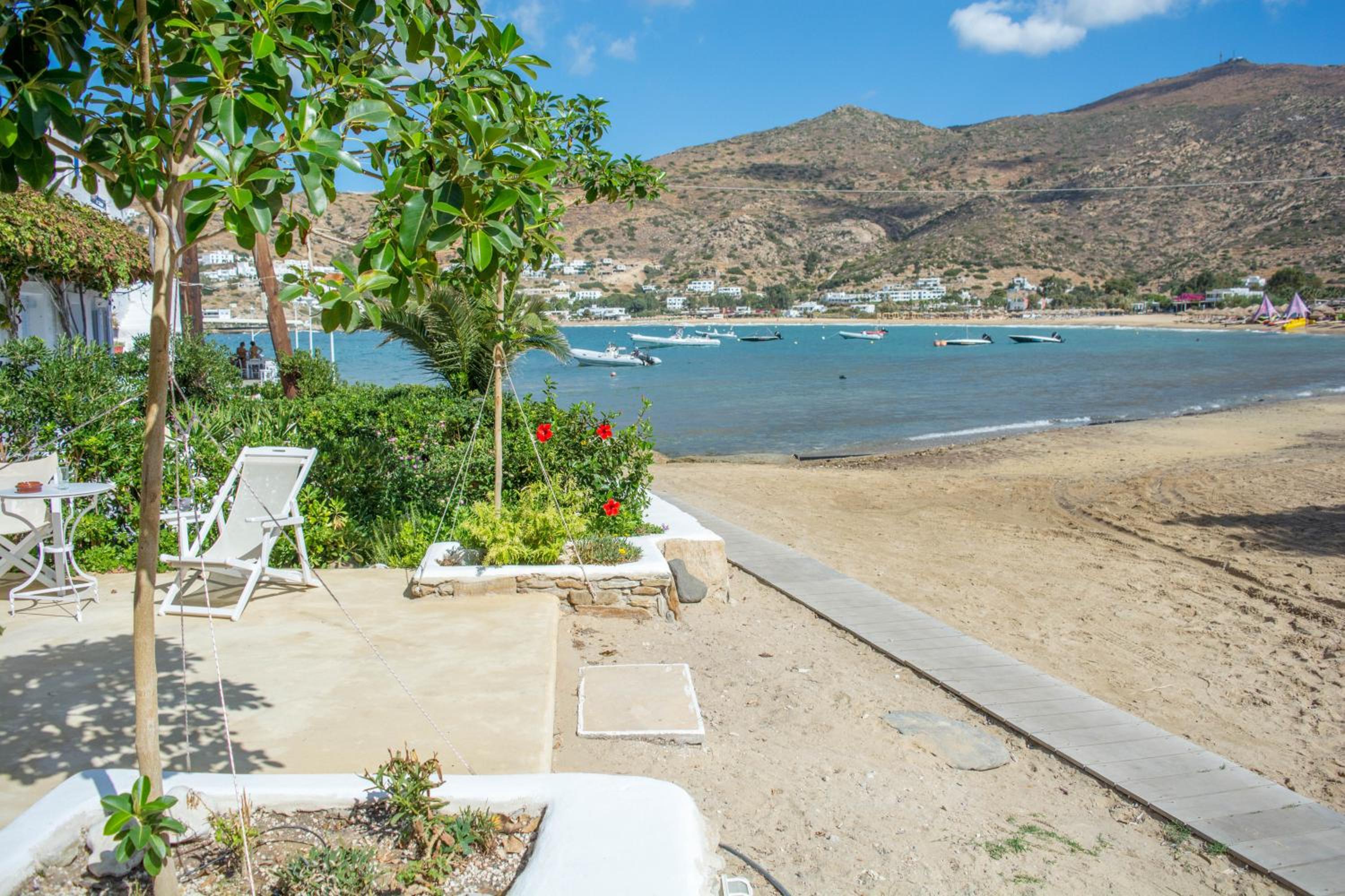 Escape to Gorgona, a stunning haven perched right on the sandy beach of Mylopotas in Ios Island, where sun-soaked days and serene nights await you.
