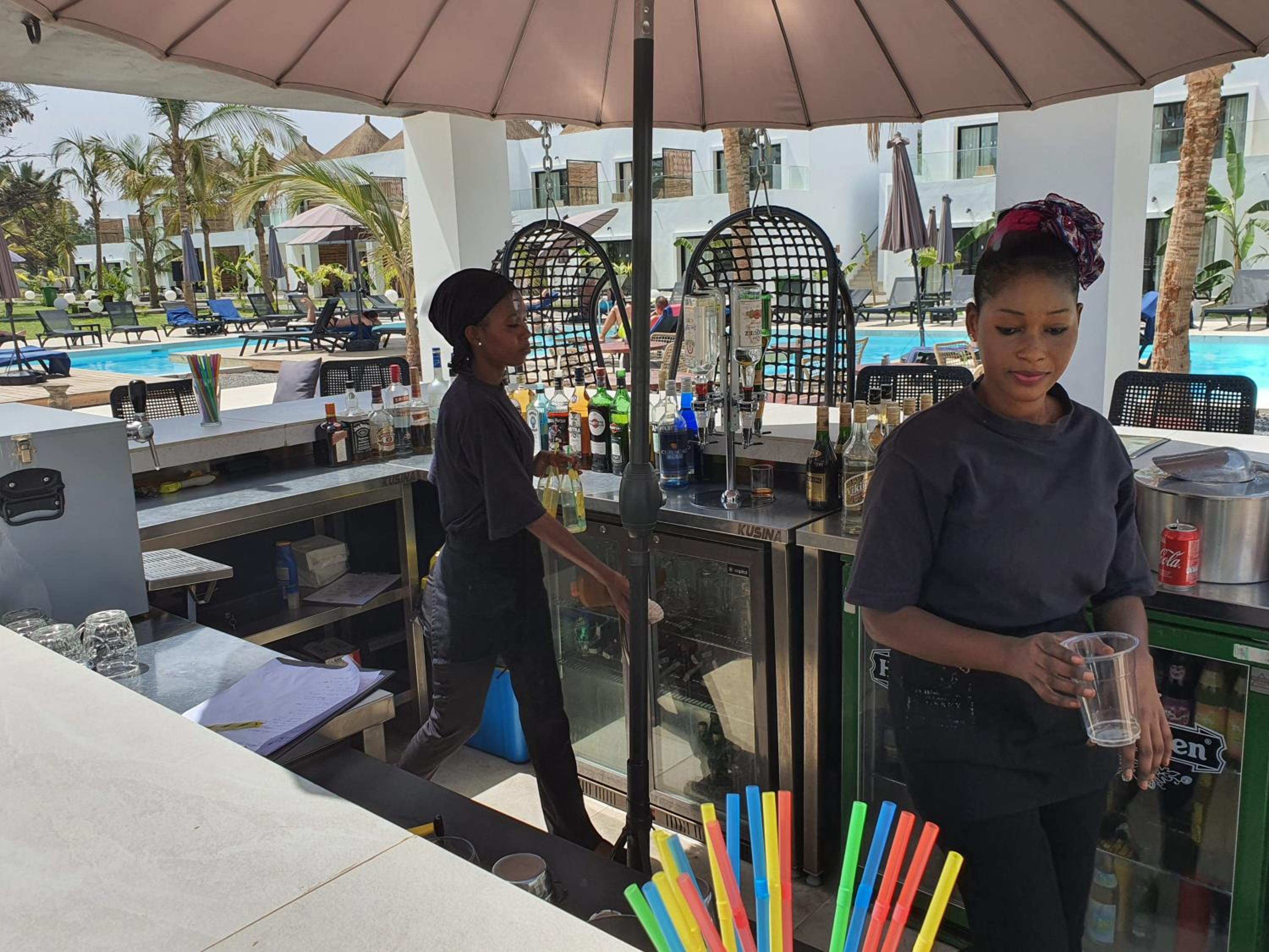 Wonderful staff who couldn't do enough to make our stay comfortable and fun. The restaurant and bar staff were attentive and helpful. The chefs were great and provided a variety of choices at every meal time. Special mention to Chef Kujabi. Our room was serviced daily- special mention to Saiko Danso. Good to see well trained and viligant lifeguards present. A relaxed and professional approach by the mainly Gambian staff. A credit to your country, community and polished hospitality skills.