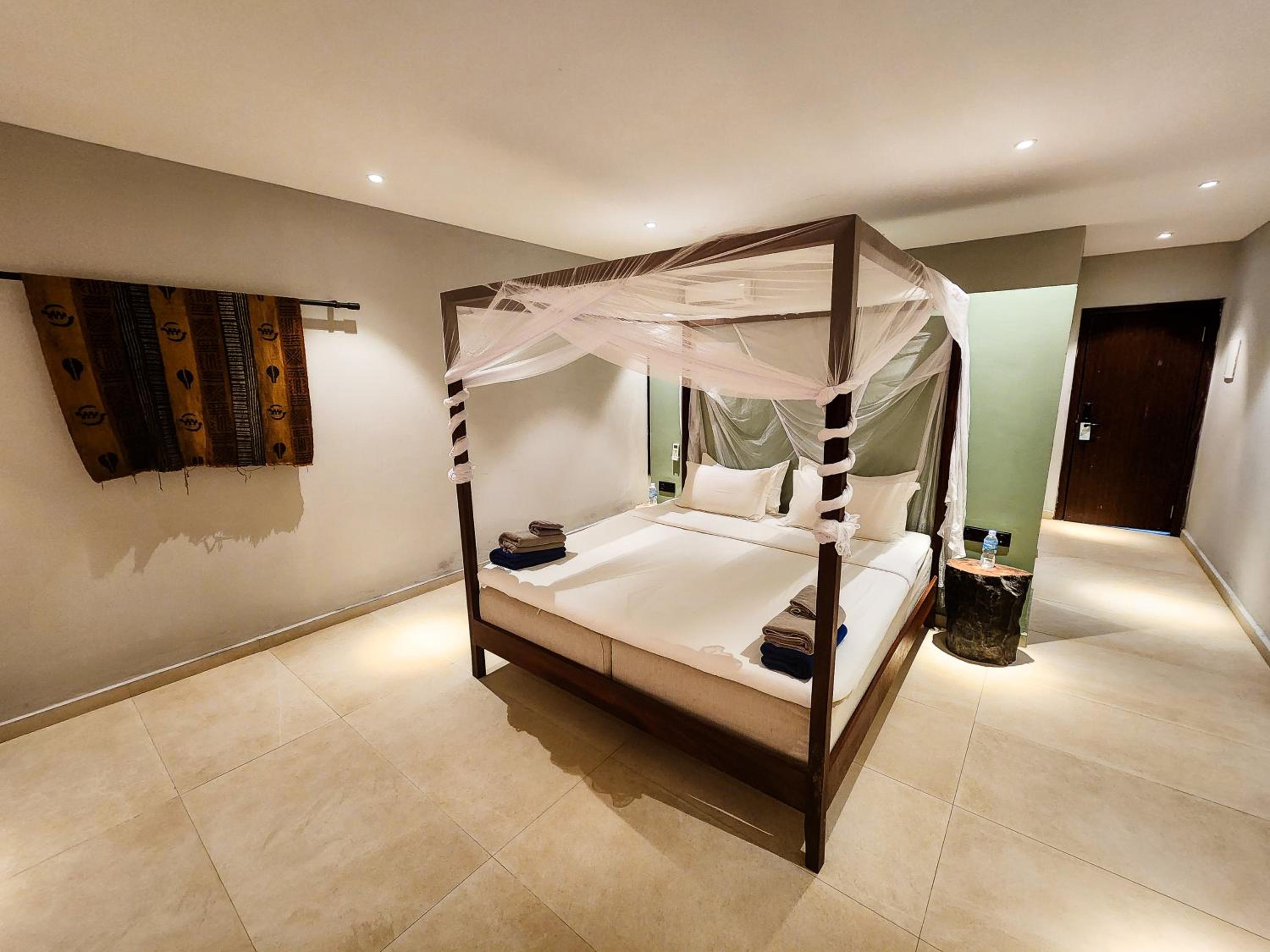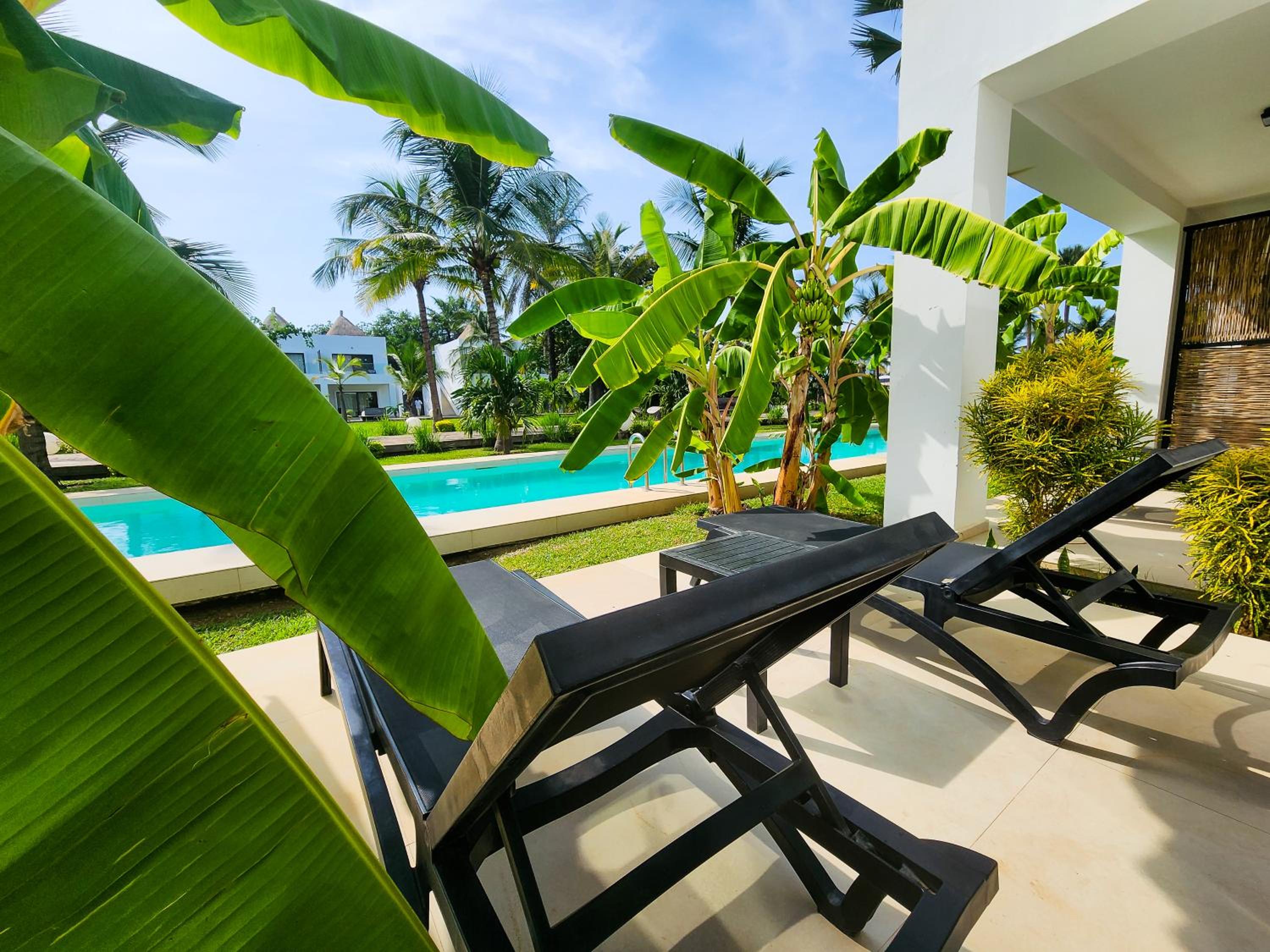 Kalimba Beach Resort in Kotu offers modern rooms with air conditioning, flat-screen TVs, and private bathrooms. Some rooms even feature fully equipped kitchens, perfect for longer stays.