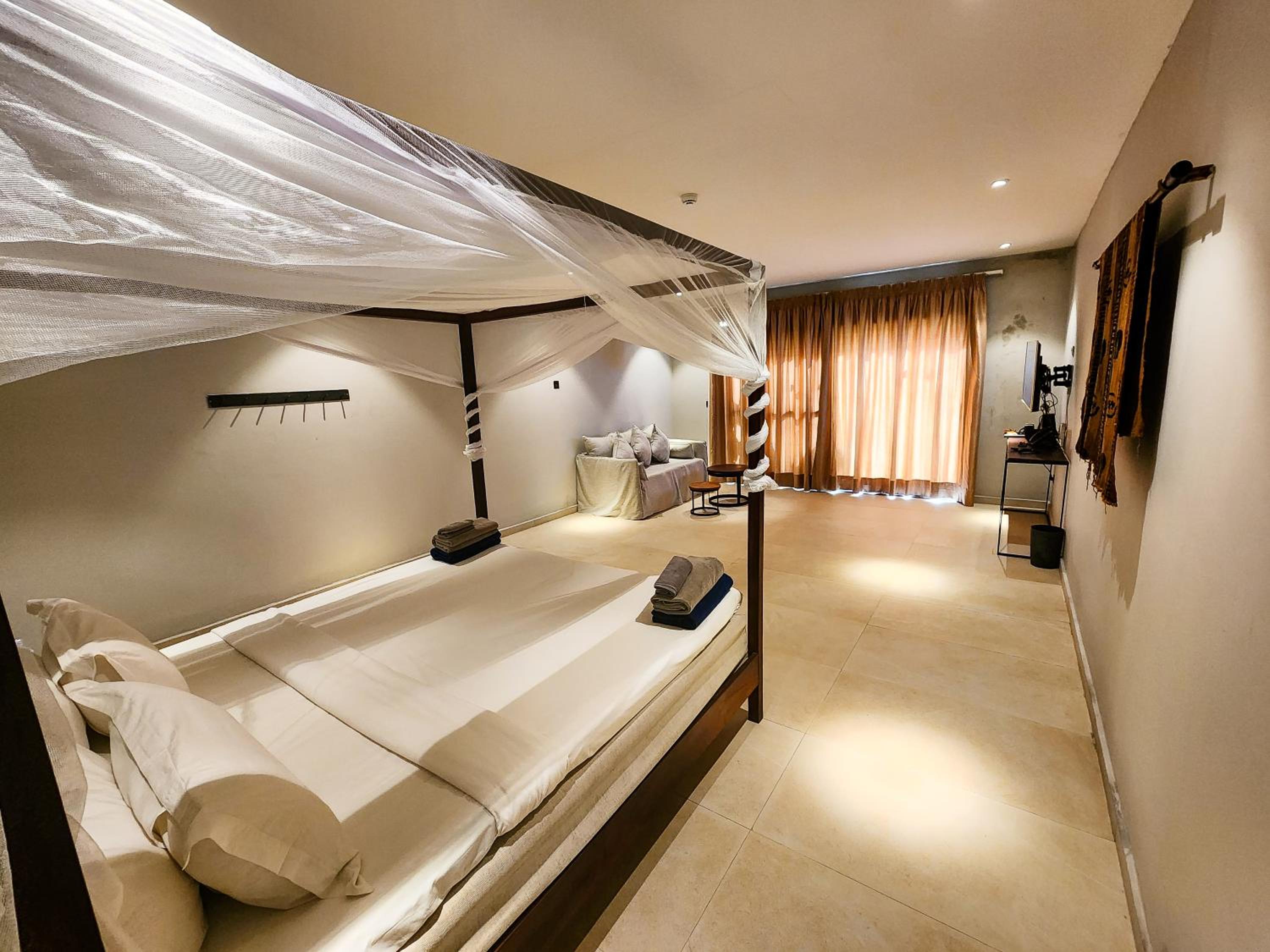 Racist personnel! People with dark skin were treated different than others, they were interrogated and were forced to use security screening, even when they were hotel guests paying for their stay. White people were allowed in and out unchallenged and were welcomed in restaurants and bars regardless whether or not they were hotel guests. There was no restaurant at the hotel and guests were directed to Tamala Resort next door (under the same management). Only one key per room was allowed which made it difficult for couples with varying programmes of a day. Reception was unattended most of the time. Rooms were full of crawling insects. Mosquito nets had large holes in them rendering them useless. Furniture in rooms was inadequate and uncomfortable.