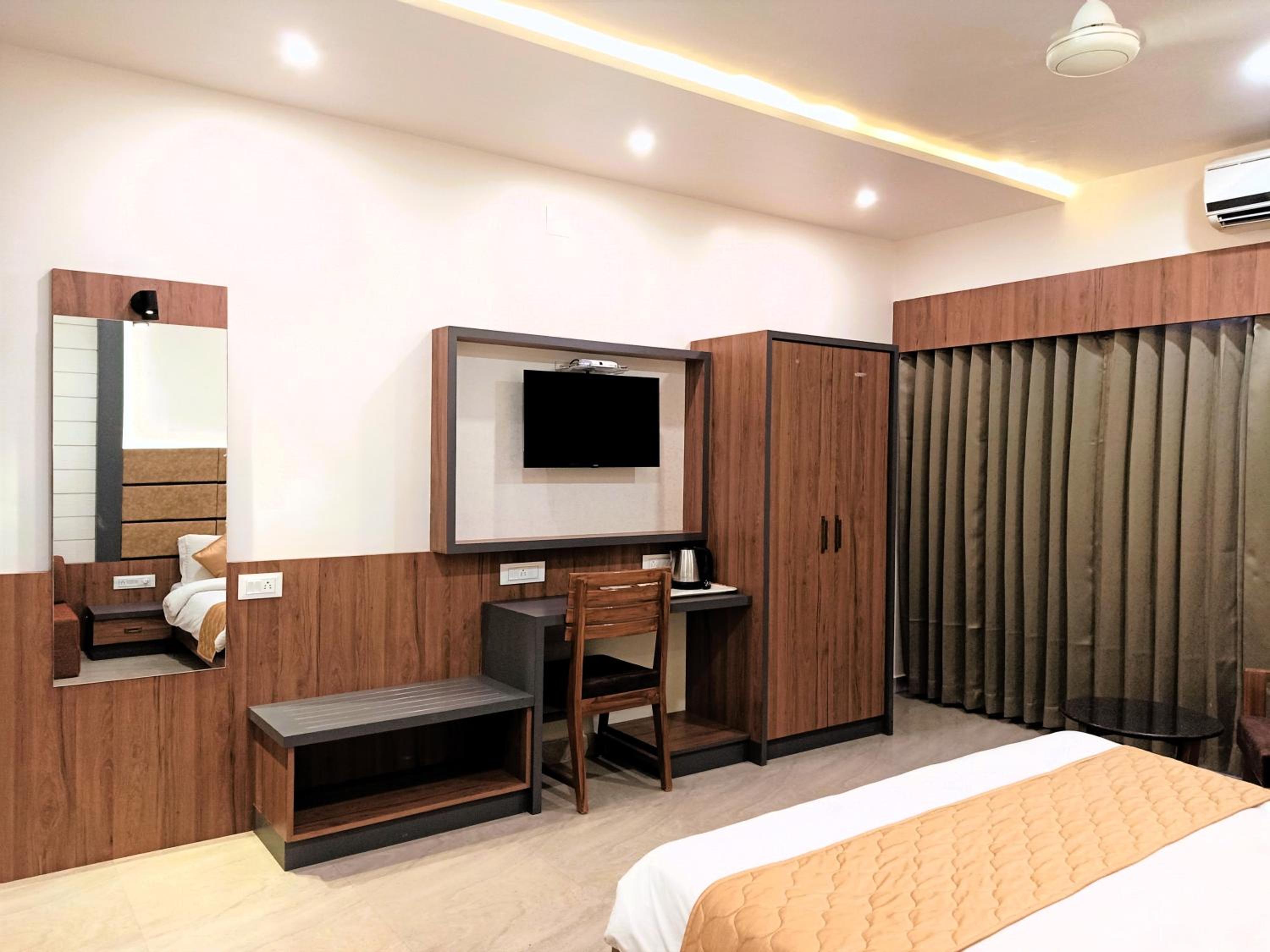 Relaxing Outdoor Pool and Restaurant: Guests can unwind by the outdoor pool or enjoy delicious Indian, Chinese, and continental cuisine at the onsite restaurant.