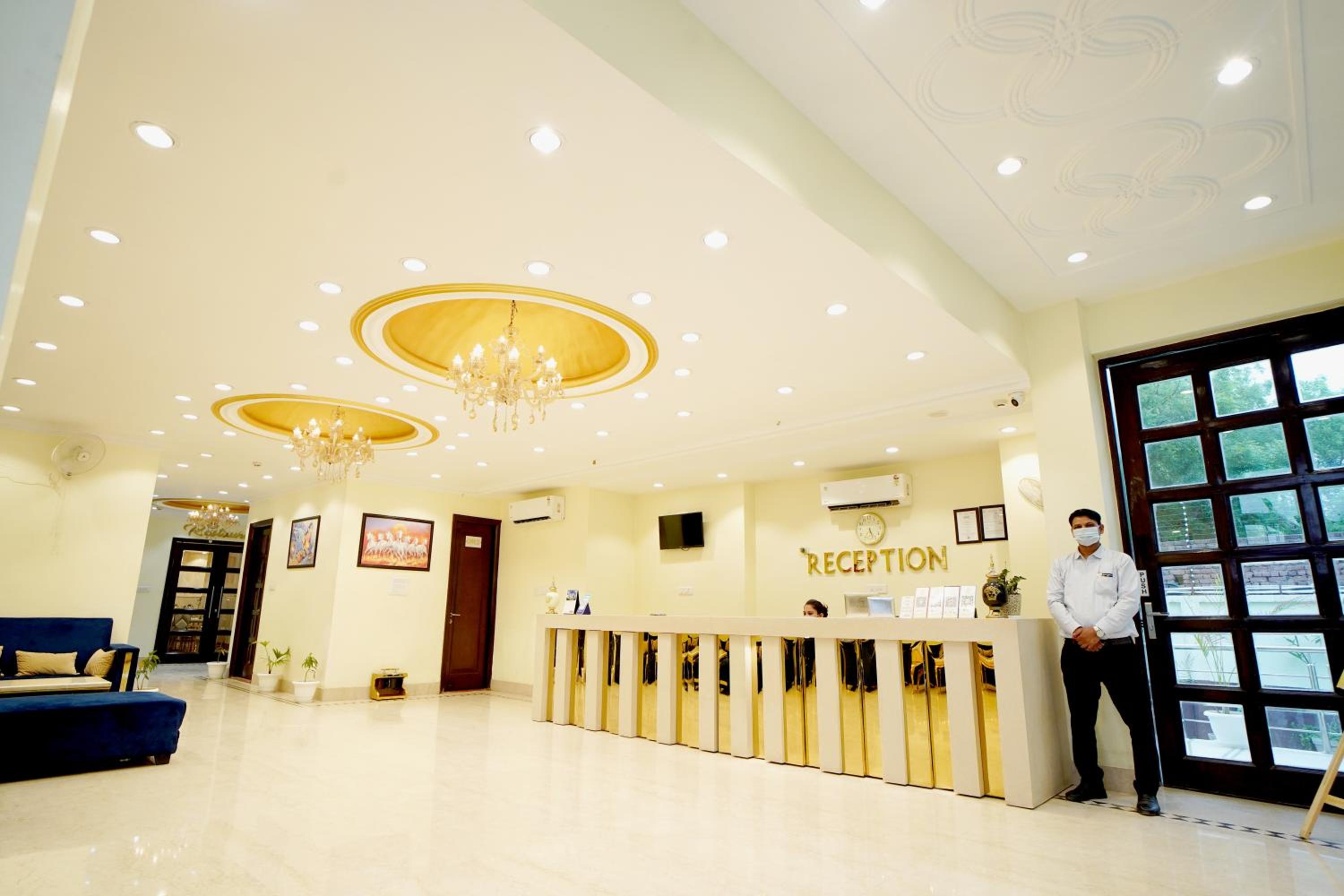 Experience a luxurious stay at Hotel SKS Grand Palace-Vrindāvan, offering stunning city views and top-notch services. Indulge in well-appointed rooms with all essential amenities for a comfortable stay. Start your day with a delicious breakfast buffet featuring a variety of options. With a garden, free parking, and a restaurant on-site, we ensure a convenient and memorable experience for our guests. Explore nearby attractions like Mathura Railway Station and Wildlife SOS easily from our prime location. Book now for an unforgettable stay in Vrindāvan!