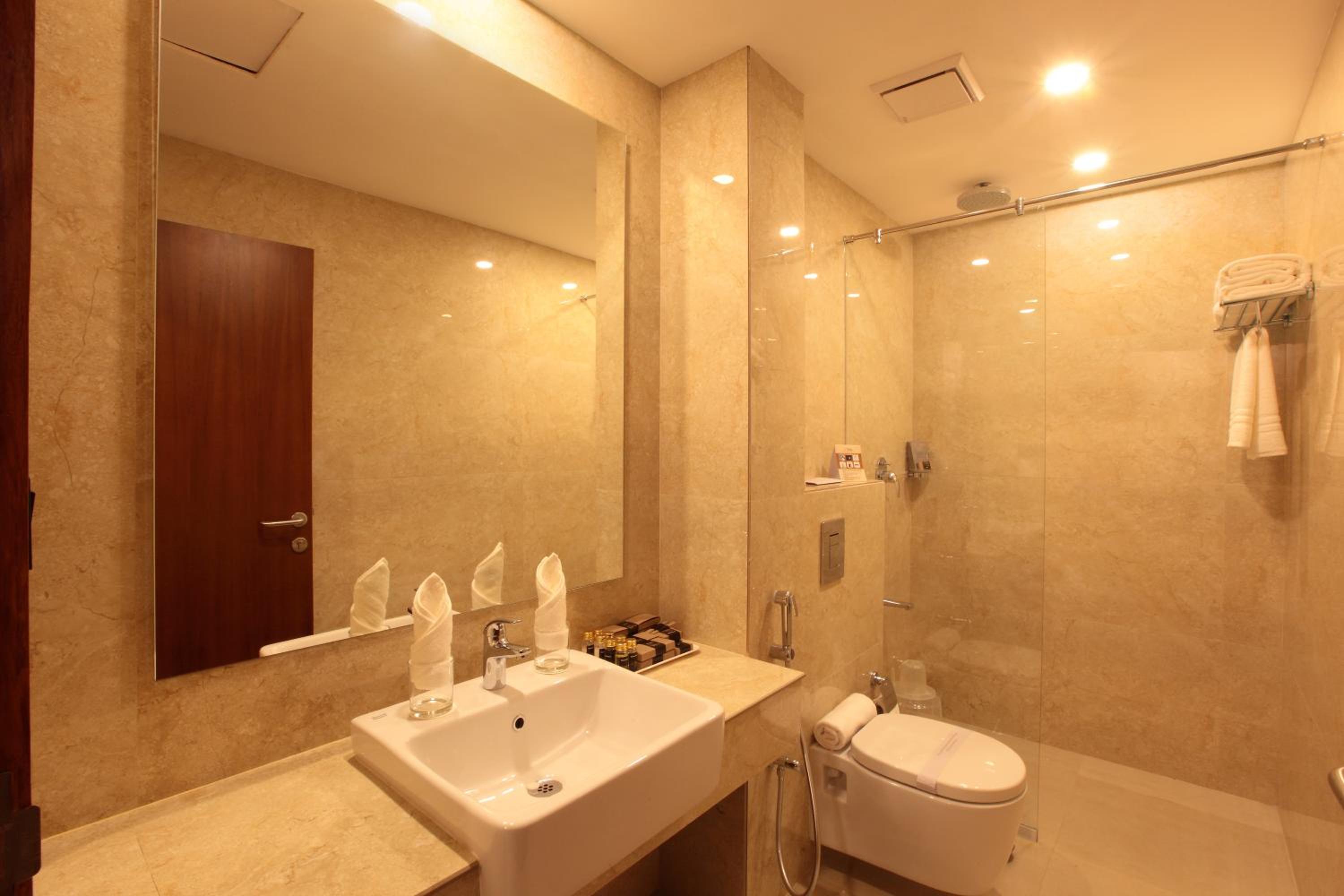 Hotel still provides only soap instead of shower gel. Showergel and liquid Handwash should be provided. Toilet rolls are not checked at the time of housekeeping and each time we had to call them up to provide it