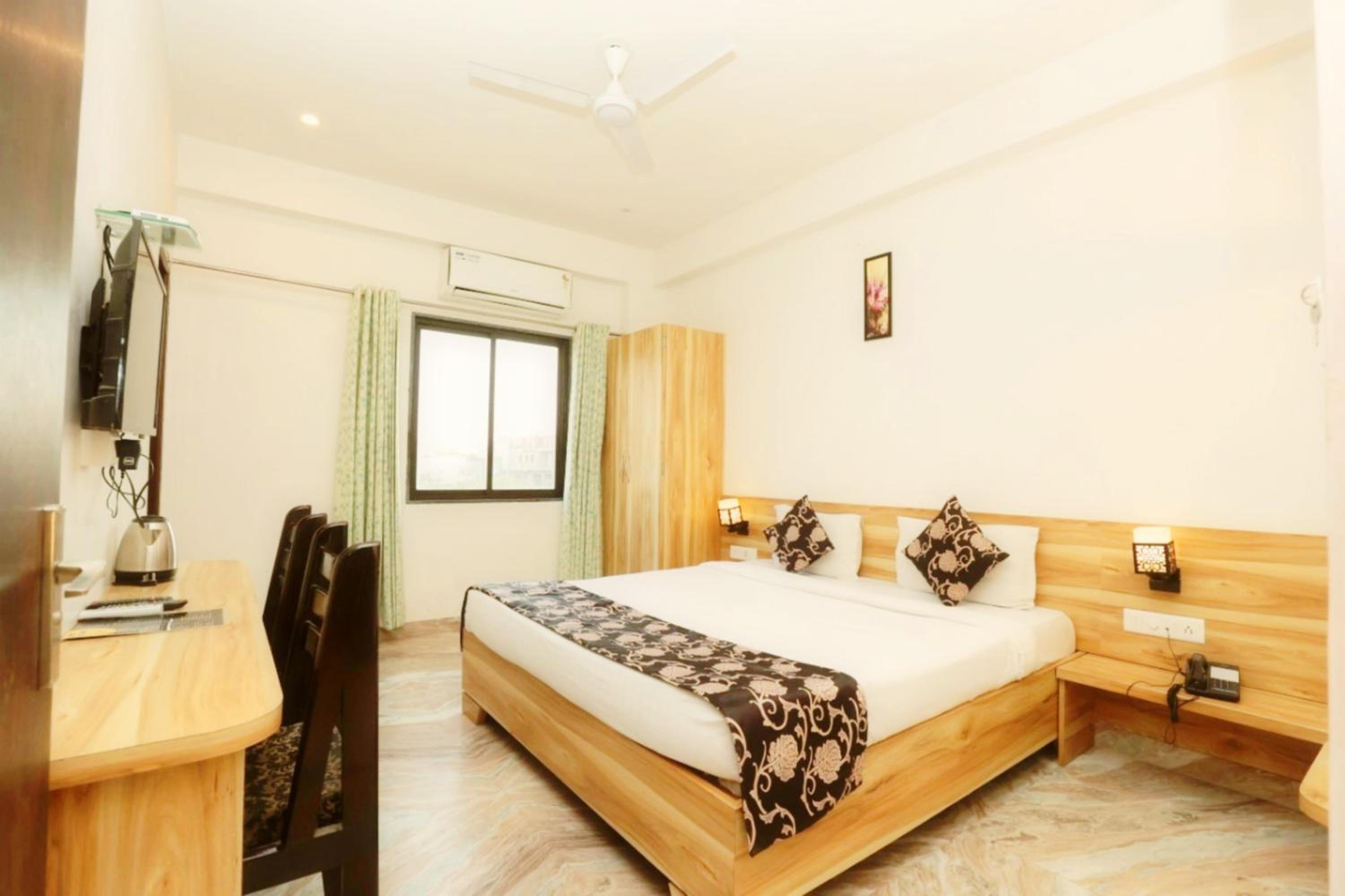 First of all the room 104 didnt have a window. There was a small glass facade facing the corridor and since lights from the corridor cannot be blocked, even with a curtain, sleeping is an issue. The room had a tea kettle but there were neither any cups kept at the room nor any tea bag. The staff said one has to ask for it from the restaurant. The reason - not sure but the point of providing a kettle is not understood. Checked in around 3 pm, however the room was not prepared as the toilet seat was found to be broken. The owner however intervened and got it repaired At night the corridors become very noisy due to the restaurant on top floor. No shelf in the bathroom to keep basic toileteries. Paid quite a sum for 2 nights @4350 per night without breakfast. Not worth more than 2K per night.