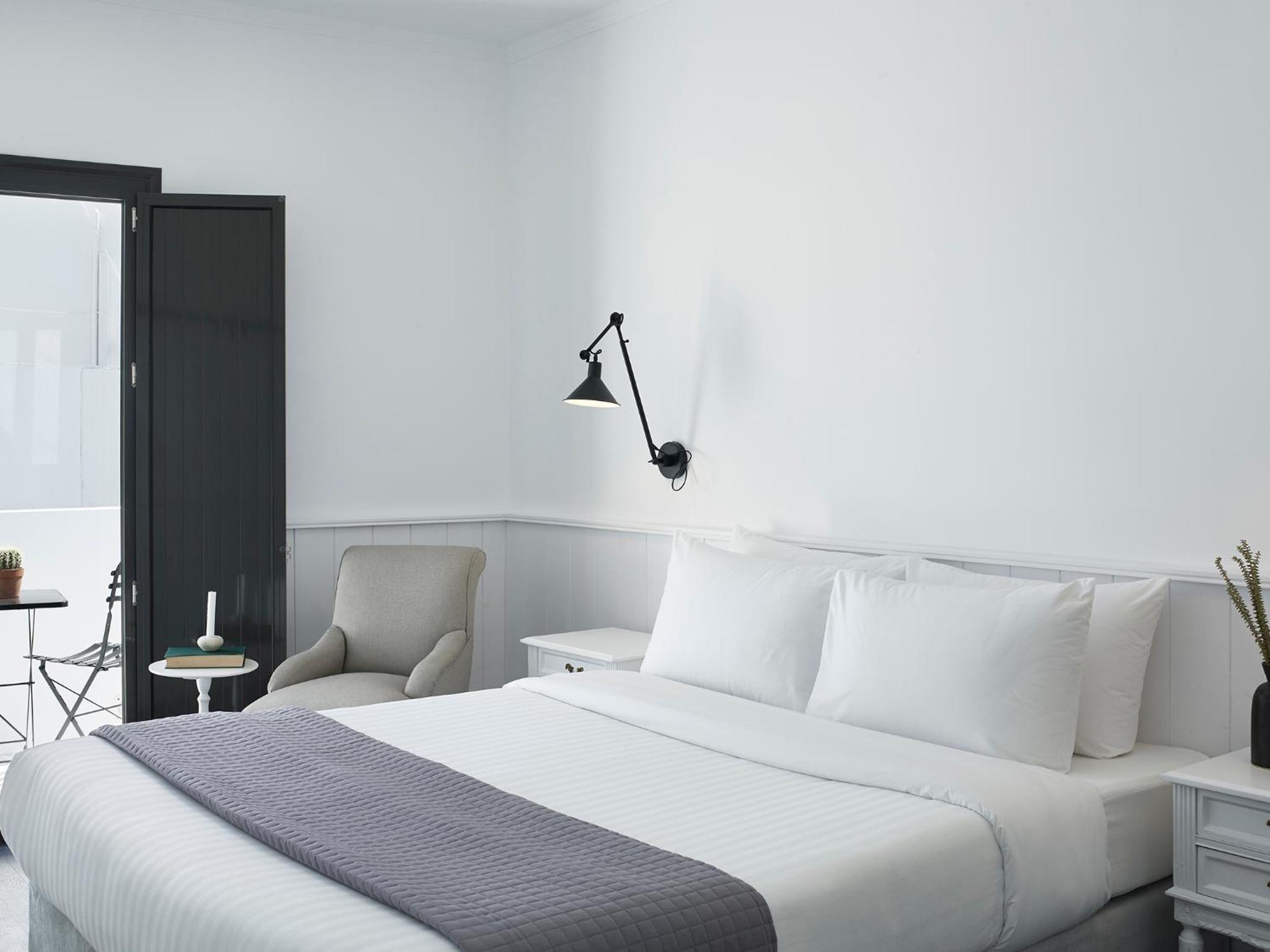 Experience the charm of arches, modern furnishings, and white-washed walls in every unit. Enjoy the convenience of air conditioning, flat-screen TVs, and stylish bathrooms with premium toiletries. Select rooms even offer a private terrace or balcony for a perfect relaxation spot.