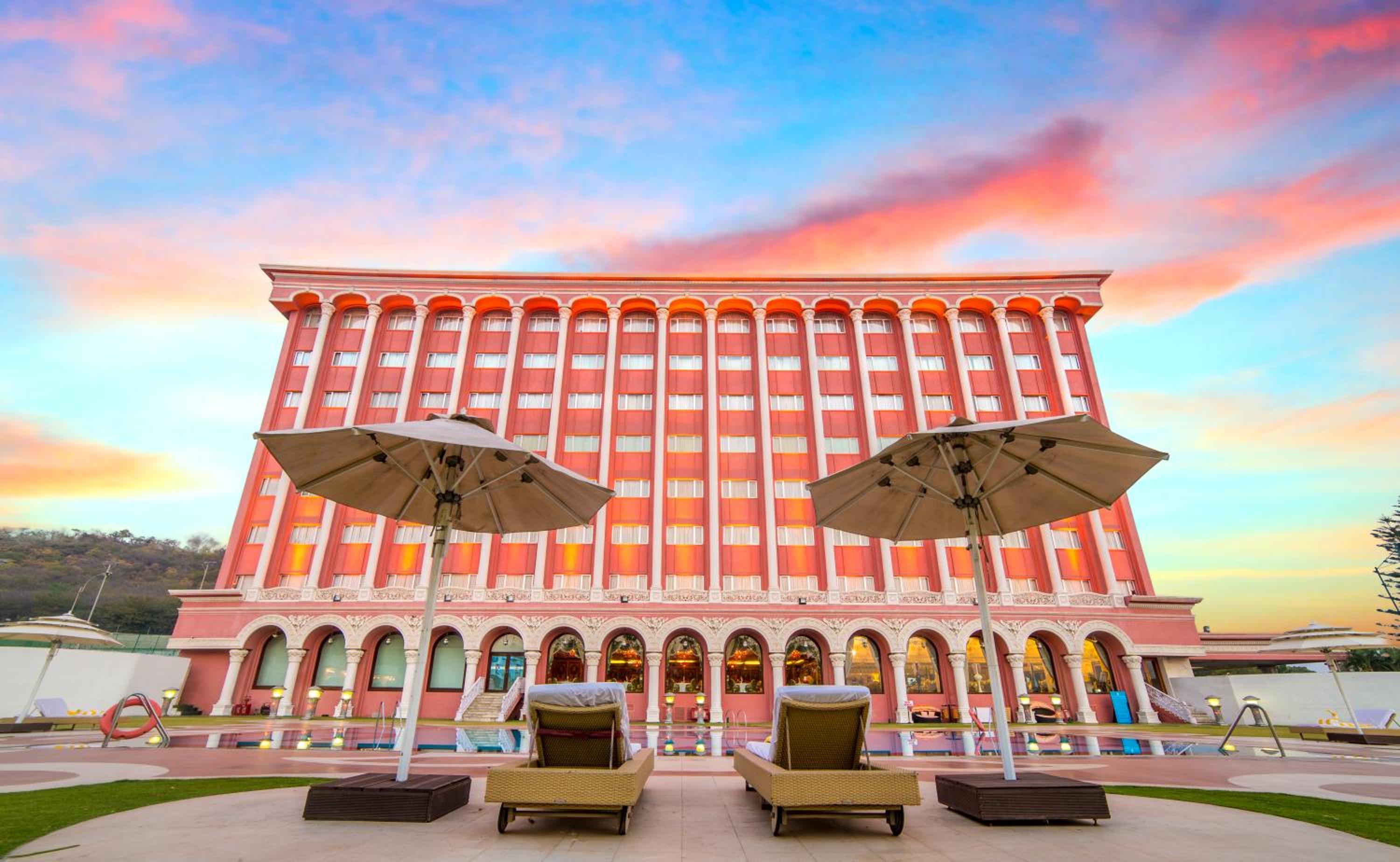 Enjoy a range of leisure activities including a refreshing outdoor pool, a well-equipped gym, and rejuvenating spa treatments, perfect for unwinding after a day of exploring Ramoji Film City.