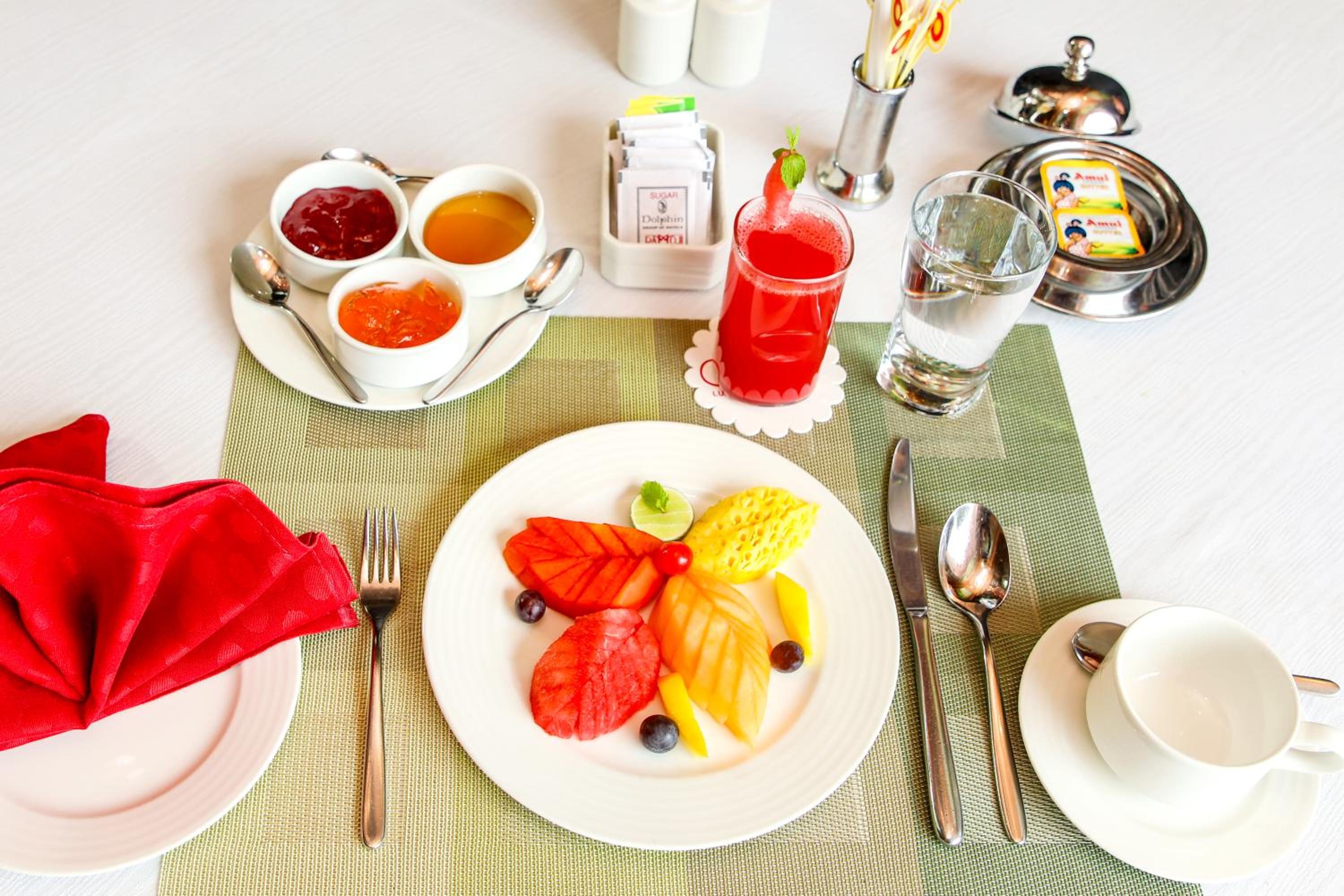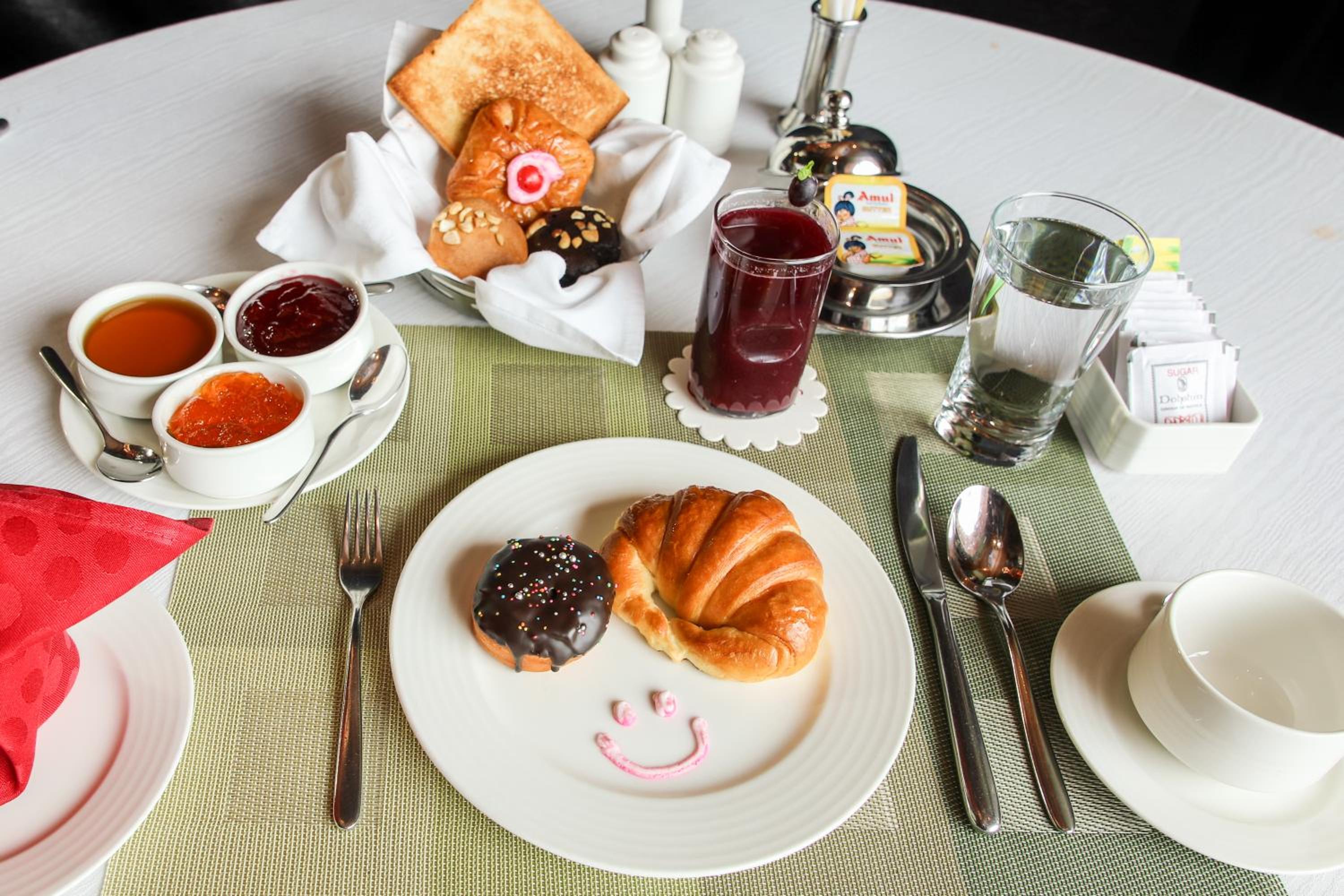 I was honestly disappointed the breakfast envoirment on my second day, it was at a hall and table cloth n chair cover looks dirty, uneasy to sit on it and cutlery was not on the table, when I ask for pineapple juice the waiter says no. Later I ask to a chef n he brought it for me.