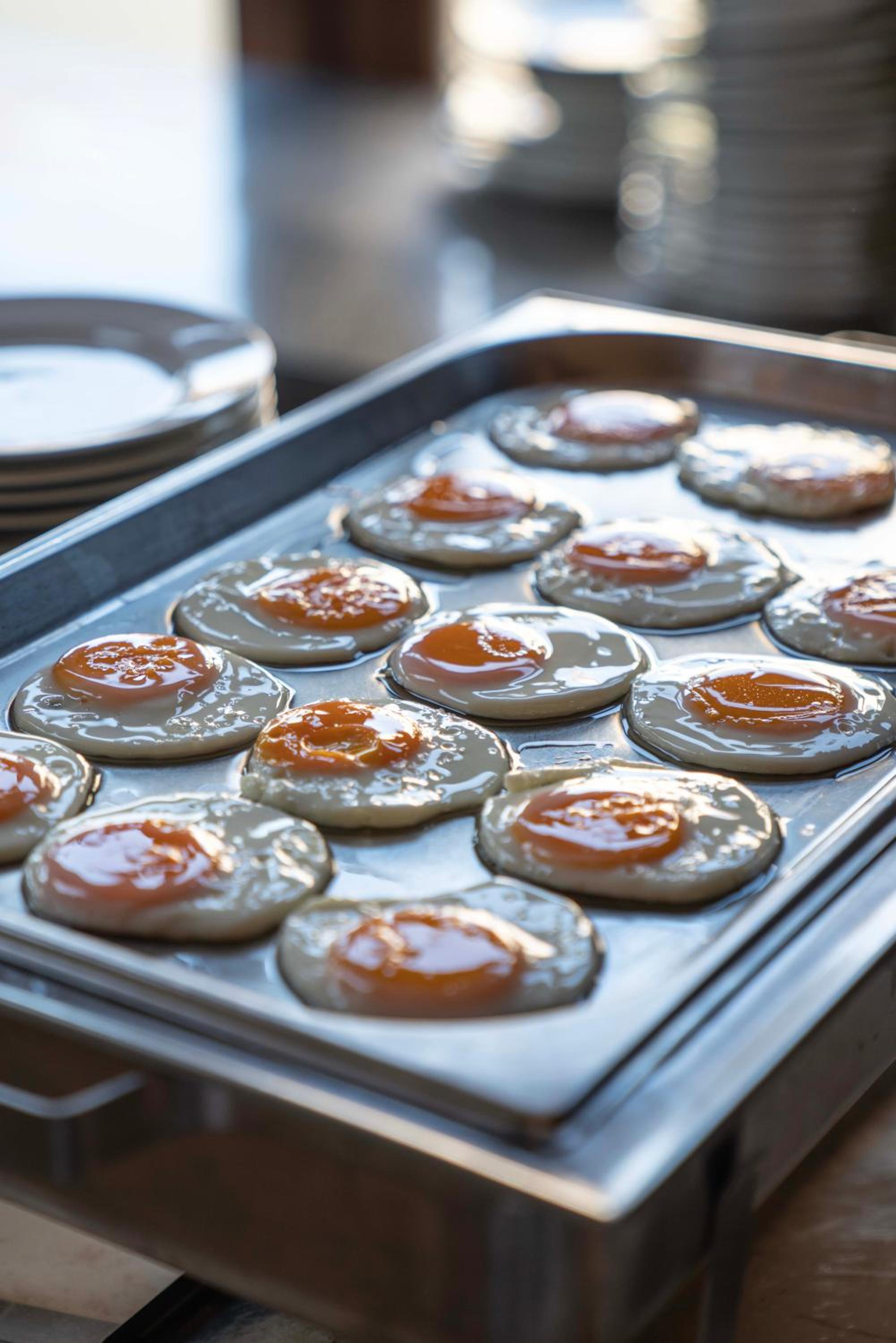 A reggeliztetés helyszínével kapcsolatban viszont lenne egy apró észrevételem. A tálalópult környéke kissé szűkösnek tűnt, főleg amikor több vendég egyszerre szeretett volna ételt választani. Egy kicsit nyitottabb elrendezéssel, vagy a tálalás átgondolásával kényelmesebb lehetne a közlekedés és a sorban állás is. Például ha a hideg kínálat több oldalról hozzáférhető lenne a pult, az sokat javíthatna a reggeli élményén.