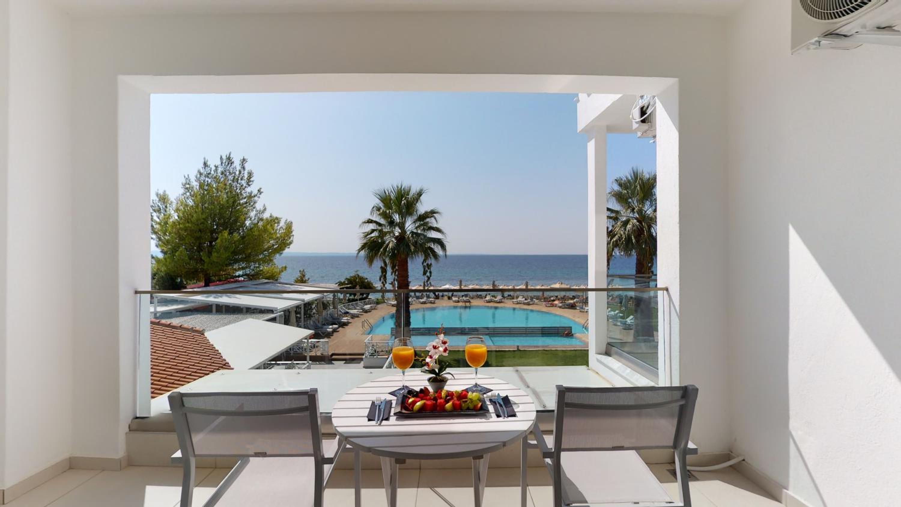 Acrotel Lilyann Boutique Hotel offers a luxurious stay right on the beach, just 9 km from Neos Marmaras Village. The air-conditioned rooms feature stunning views of Kassandra Bay from their furnished balconies. Free WiFi is available throughout the property.