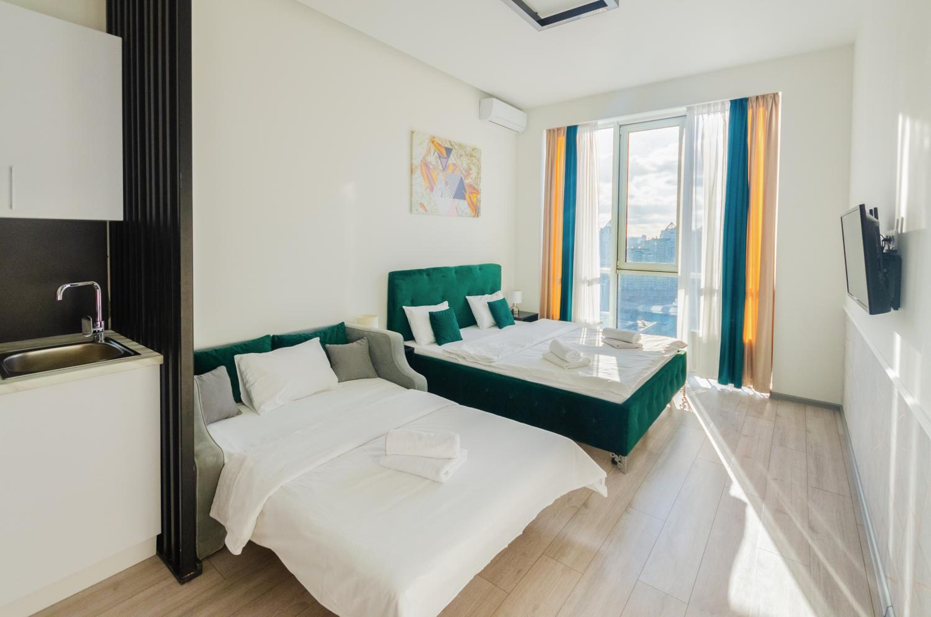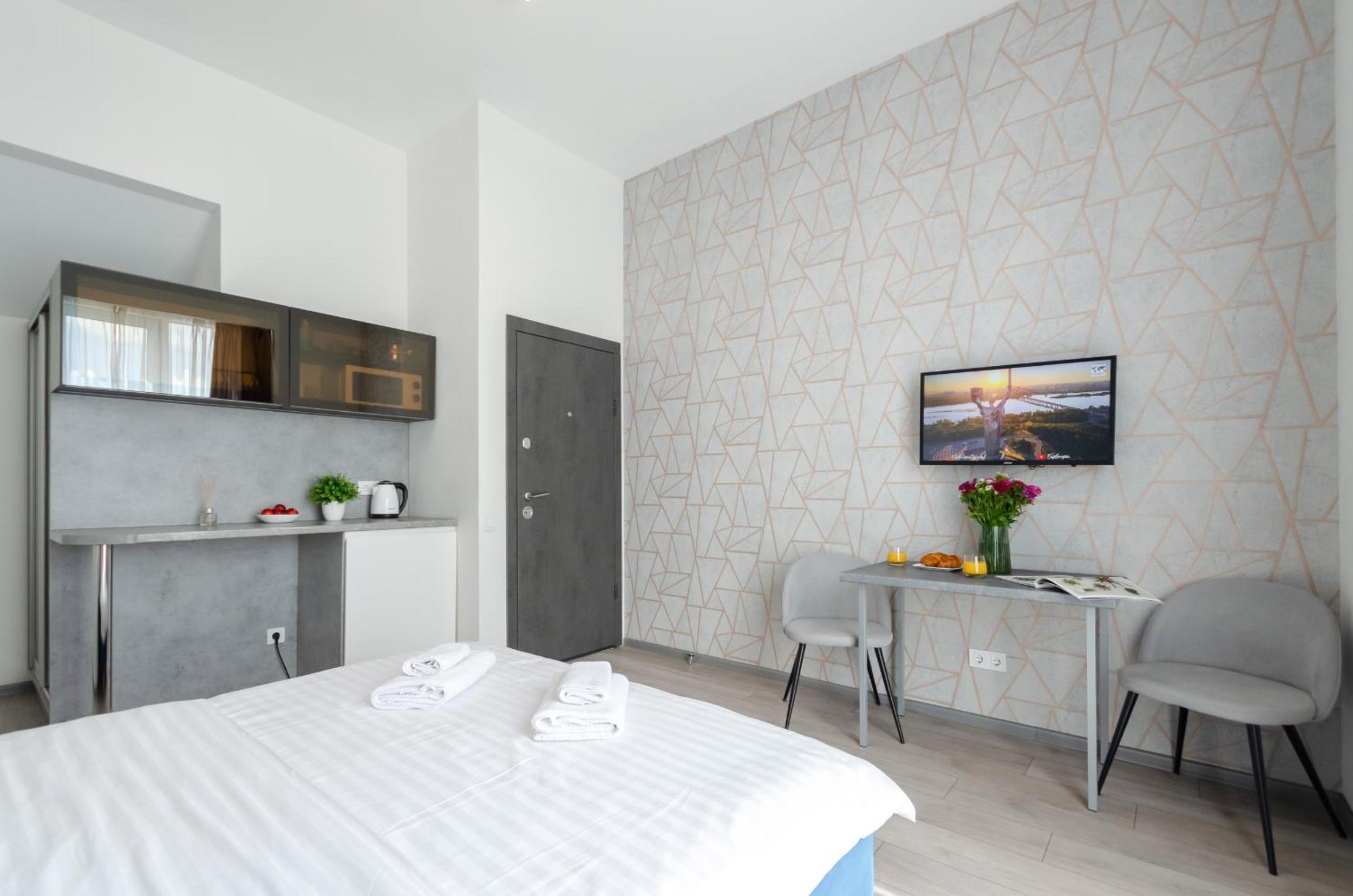 Світлий, чистий номер. Вид з вікна неперевершений: під тобою весь Київ! В пішій доступності (6-7 хвилин) залізничний вокзал (Південний)