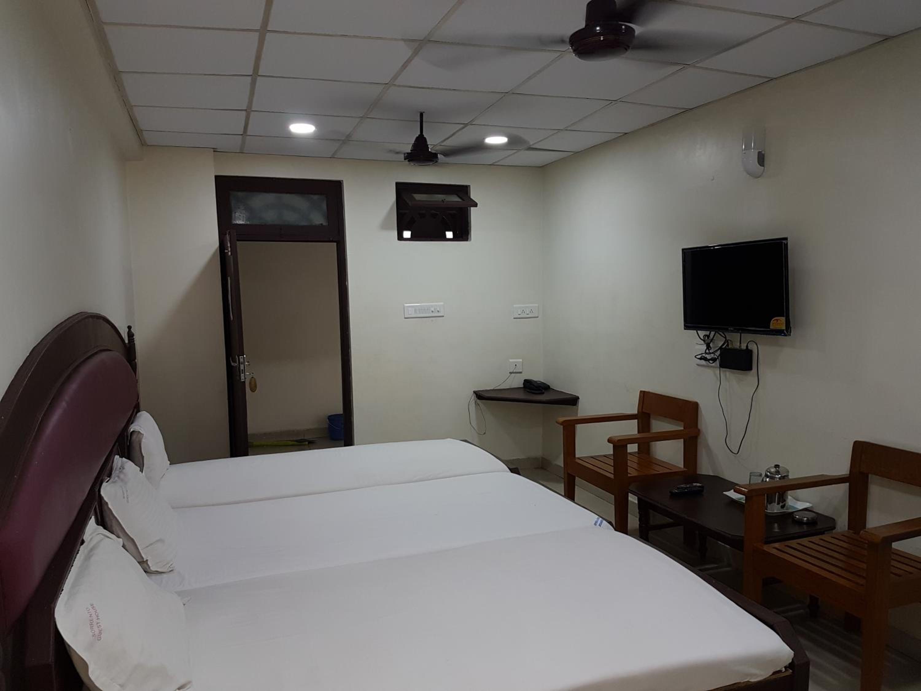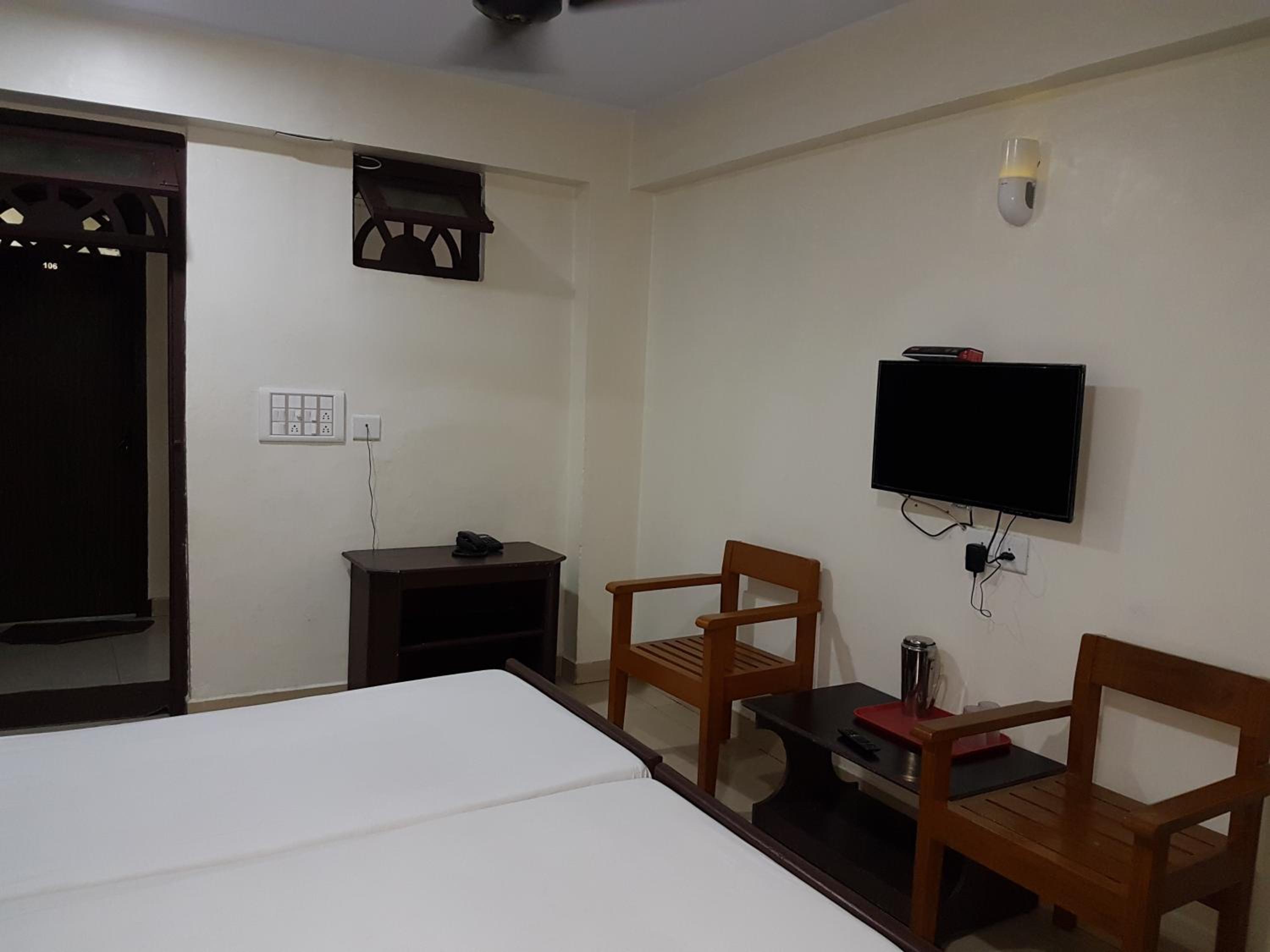 Hotel Sorrento Guesthouse Anna Nagar offers comfortable and spacious rooms with a double bed, flat-screen TV, and seating area, creating a cozy atmosphere for guests to unwind.