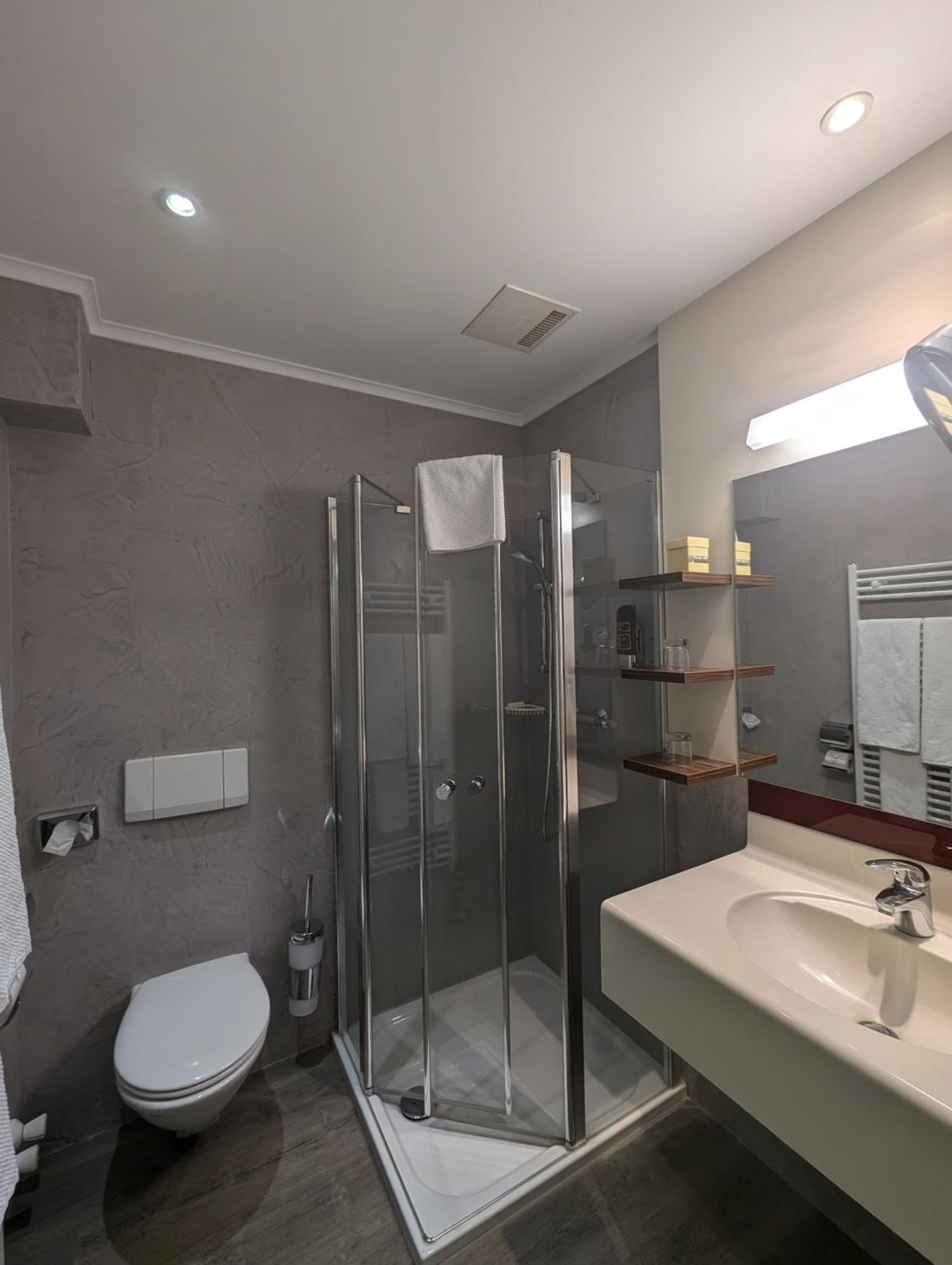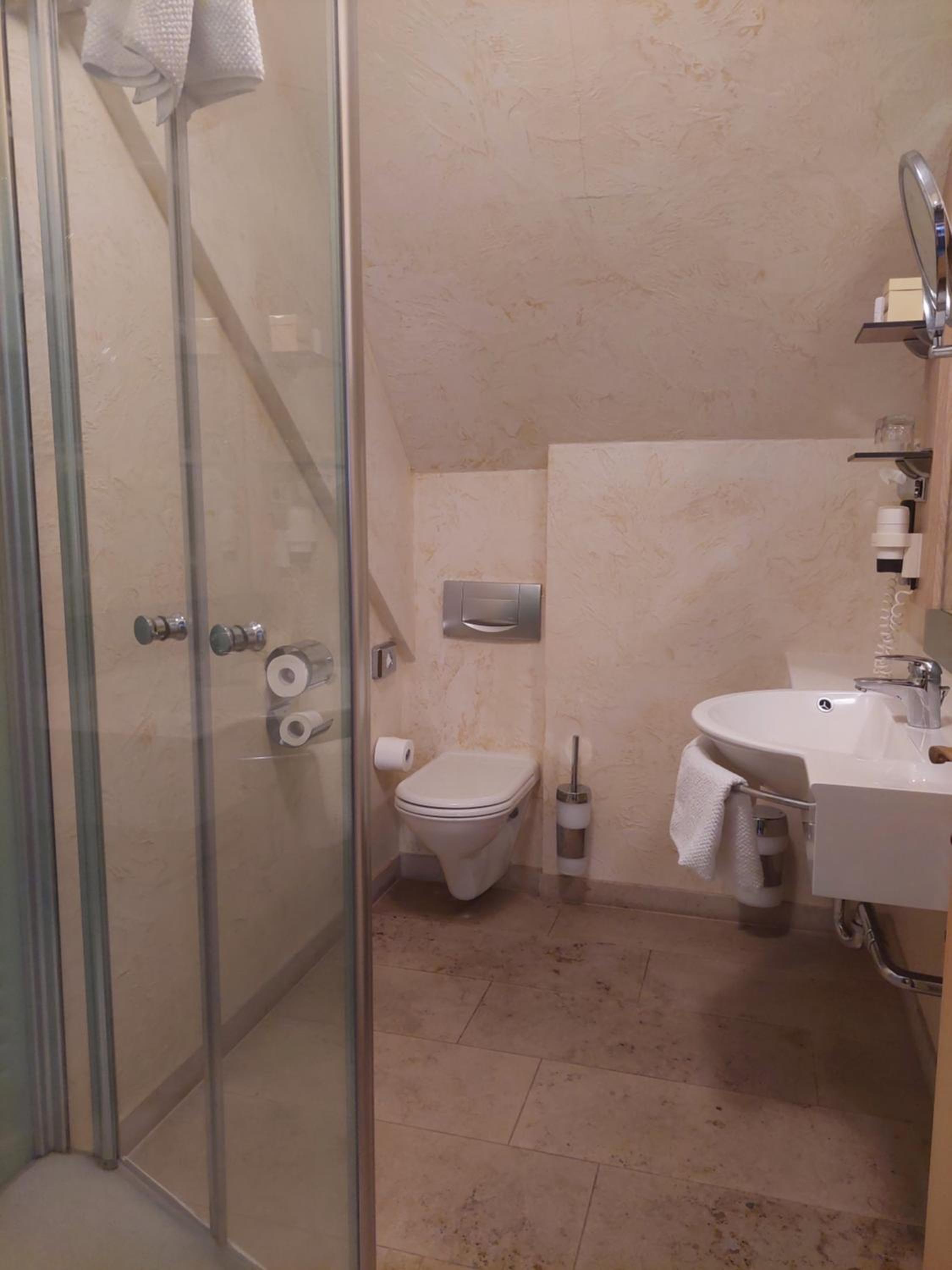 De badkamer was wat klein. Volgende keer nemen we een grotere kamer