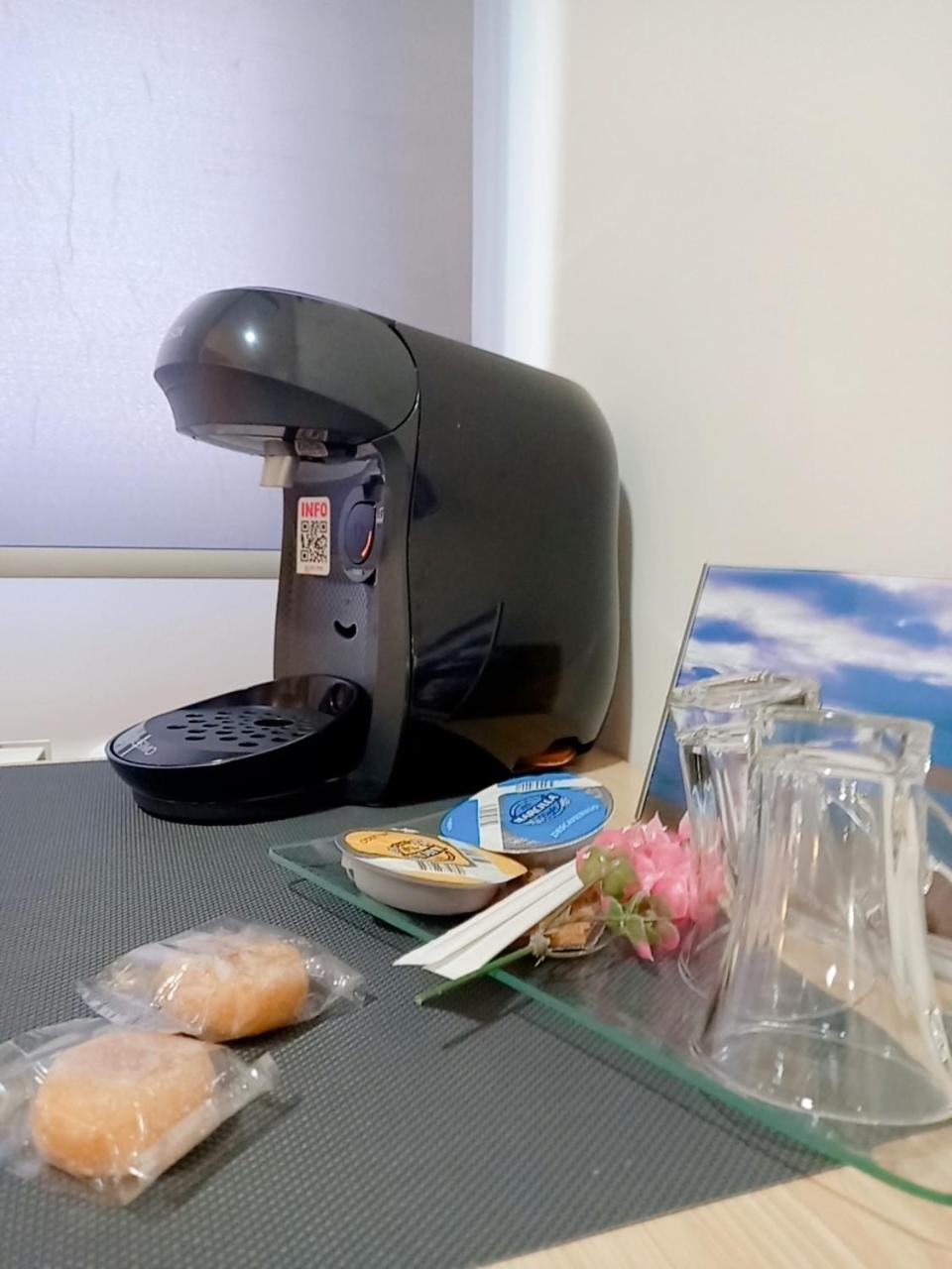 Añadió cafetera, cepillos de dientes entre otras cosas. Para mi 4 estrellas por su atención. Frente a la playa