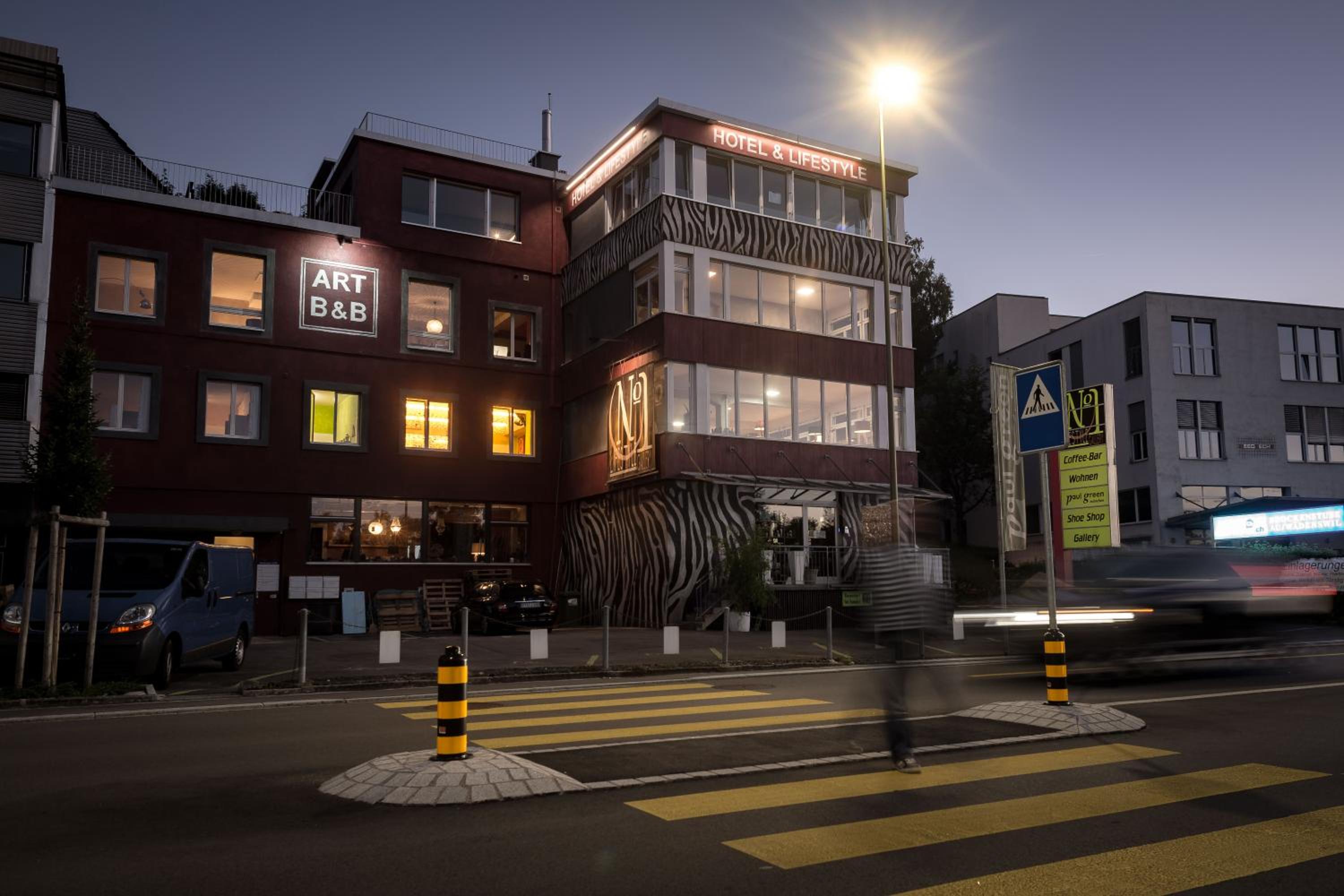 Camera e bagno erano molto spaziosi e accoglienti. L’arredo molto bello, originale. E’ la struttura più bella che ho trovato da tre anni che frequento la zona vicino a Zurigo. Ha un parcheggio davanti gratuito, fatto molto pregevole, dato che in zona i parcheggi sono scarsi e tutti a pagamento. Alla reception, Arne, un ragazzo gentilissimo.