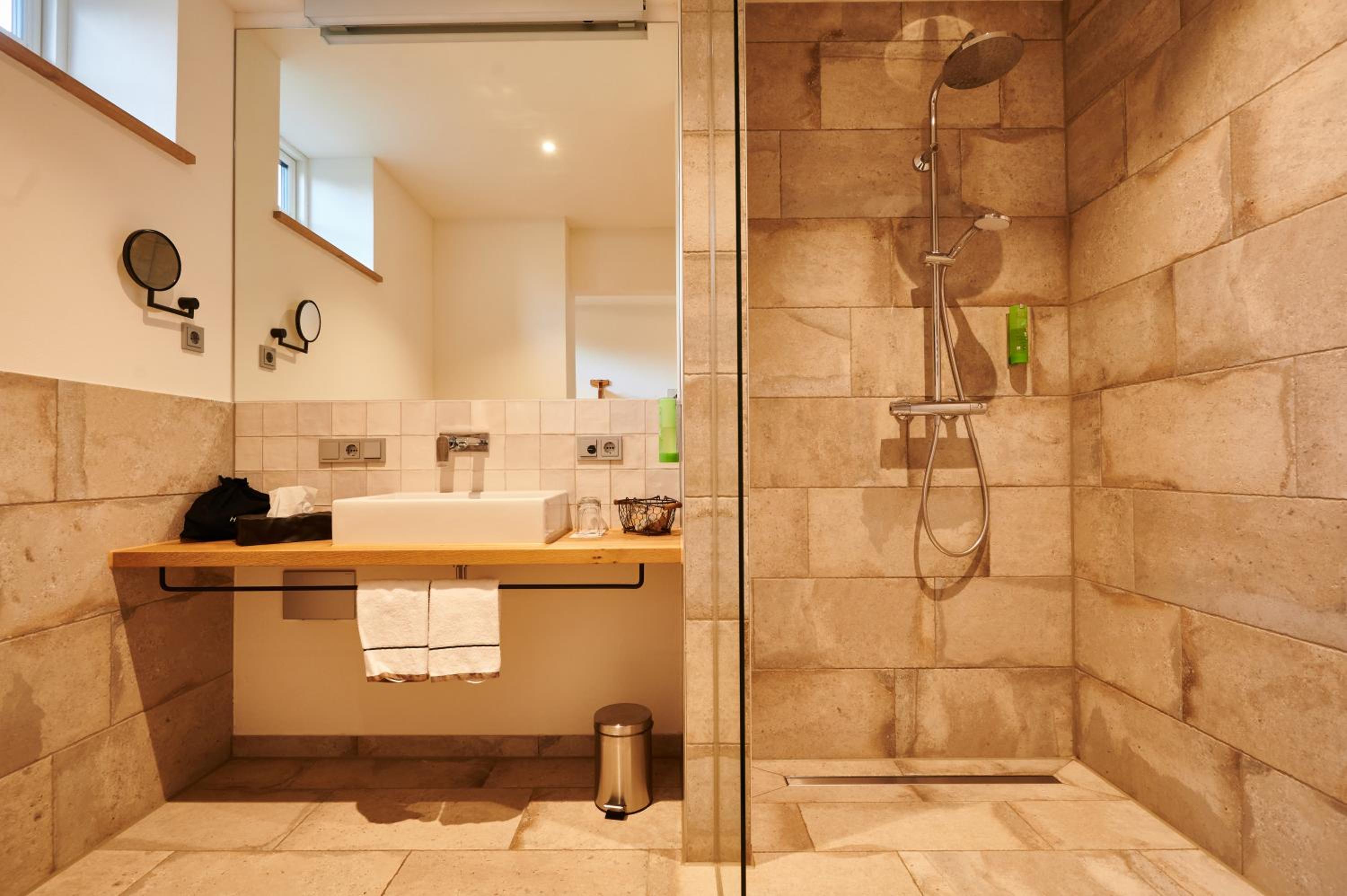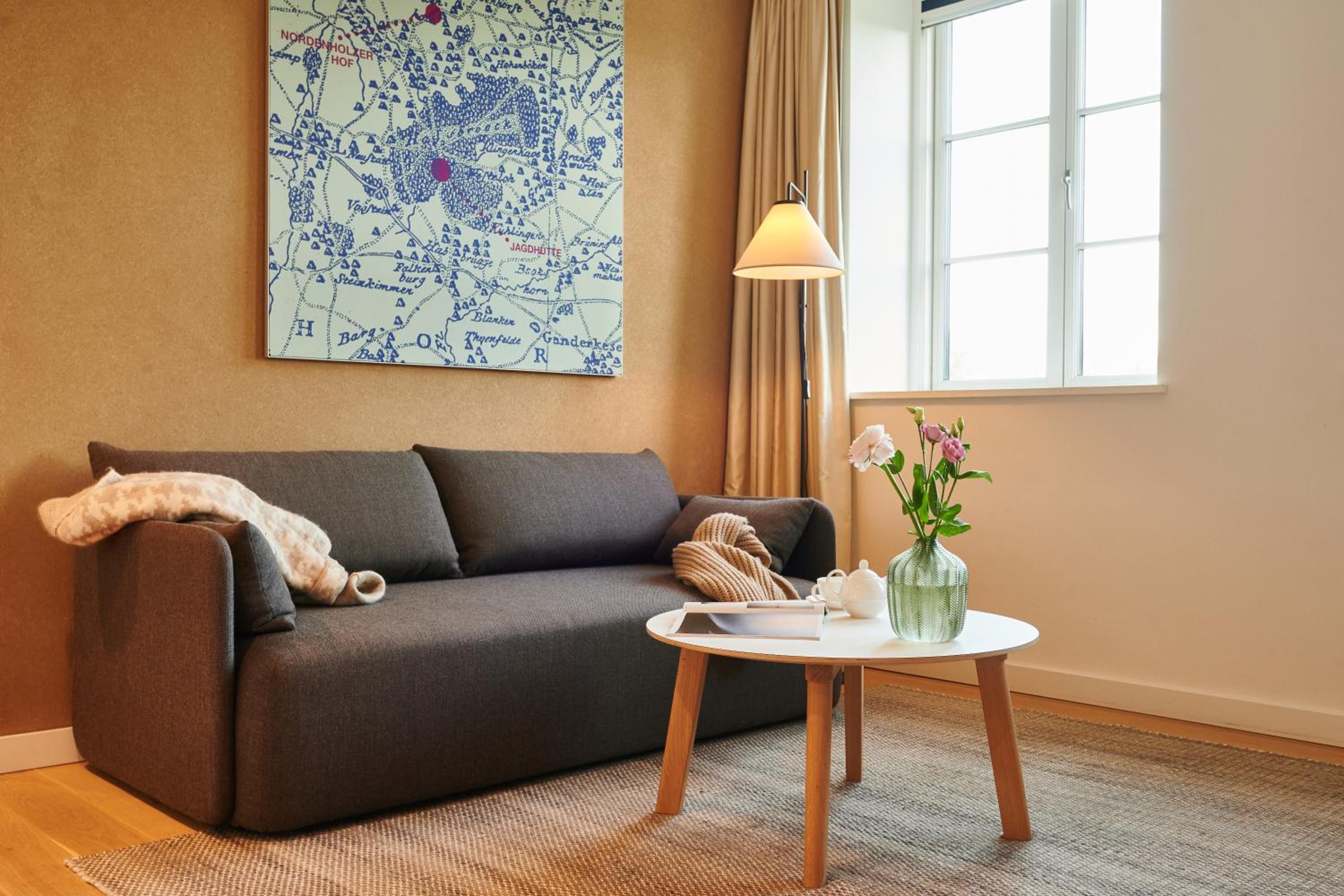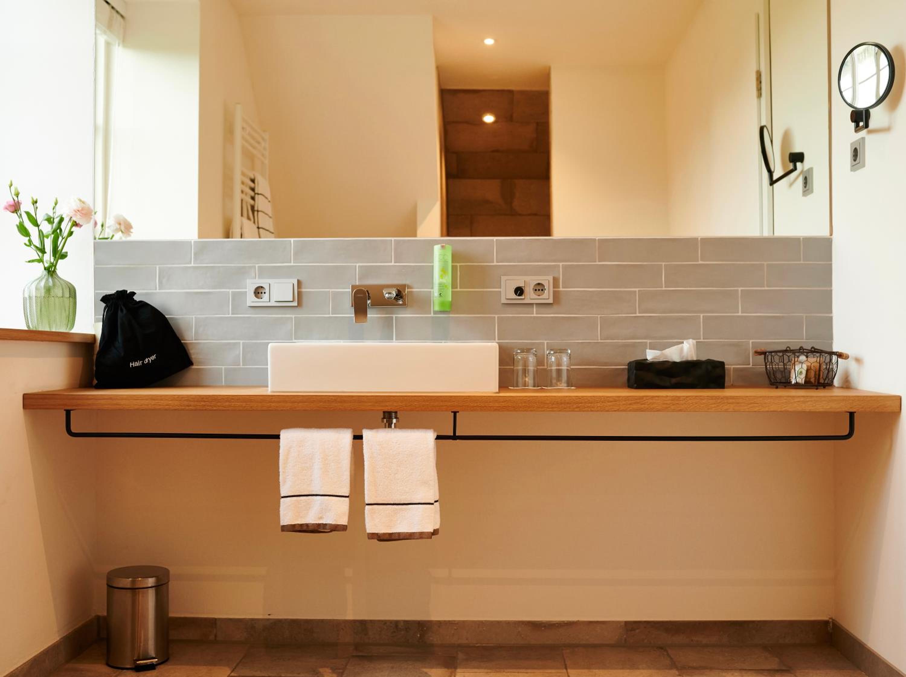 Each guest room at Nordenholzer Hofhotel is elegantly furnished with a flat-screen TV, coffee machine, and a private bathroom stocked with free toiletries. Some rooms even feature a cozy patio for relaxation.