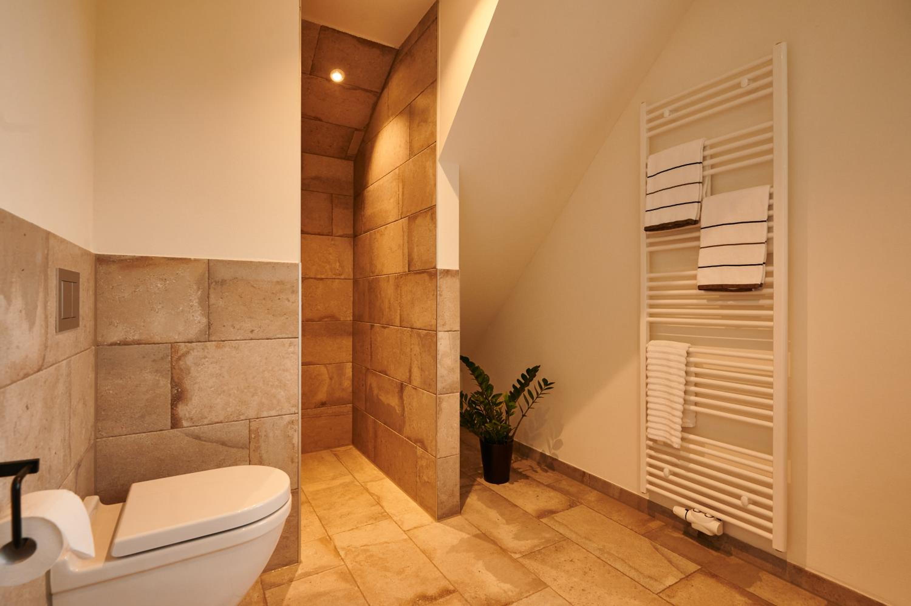 Das Badezimmer sehr geräumig und modern.