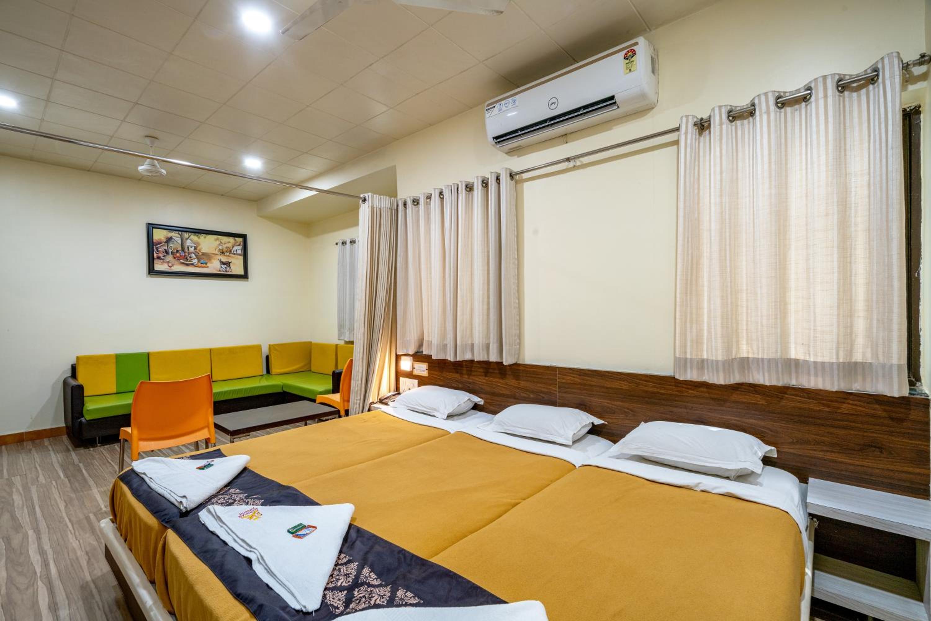 Staff was arrogant. Non cooperative. Rooms were dirty. The poojari associated with the hotel was also arrogant. Thete was no hot water in the wash room though they say it is available till 10 am. Ac not working. Phone not working. You have to go physically to reception to communicate. Their other hotel Vrindavan also same. Direct booking is cheaper by rs 600 - 700 than online booking.