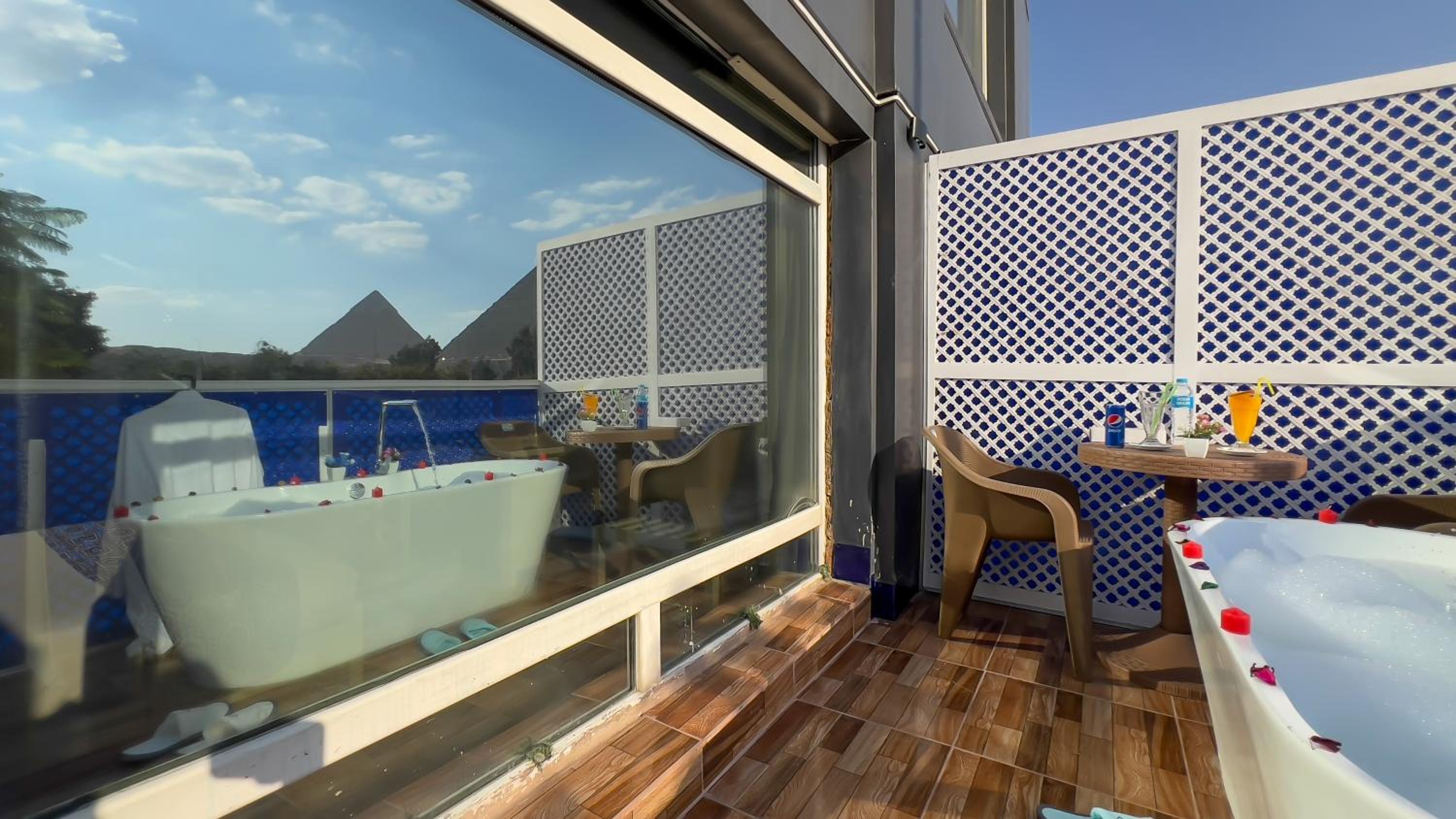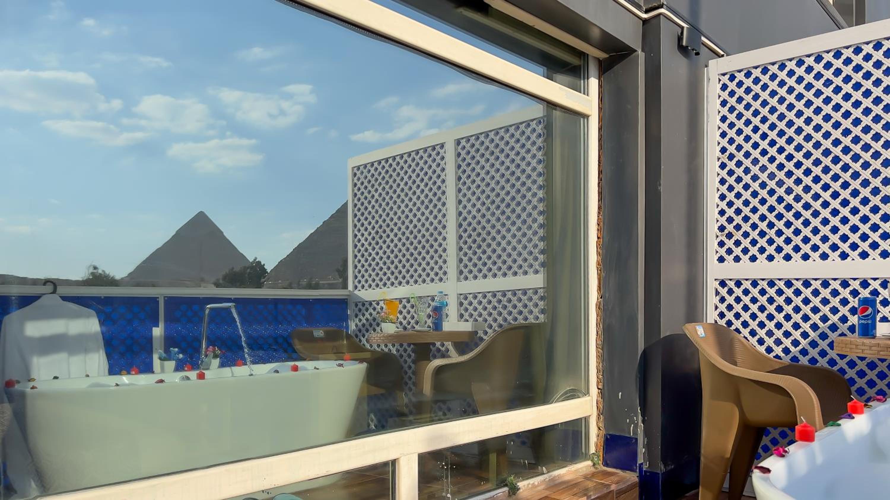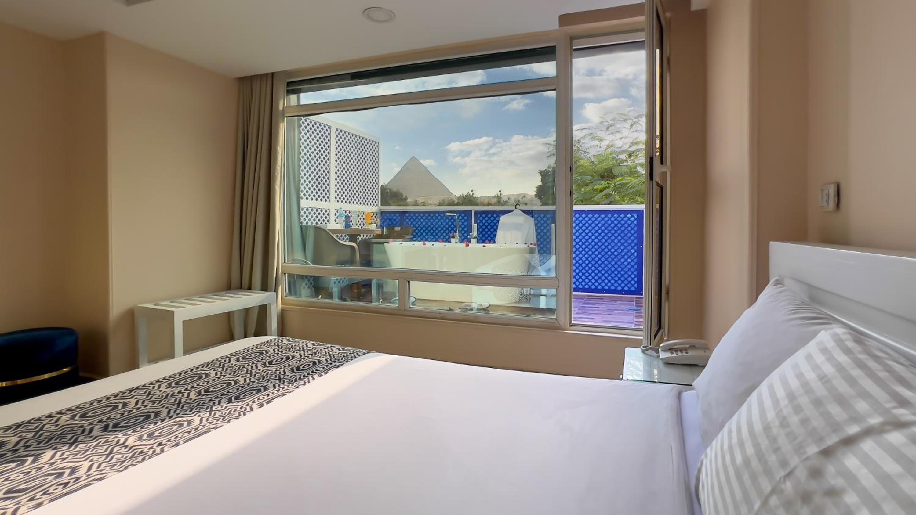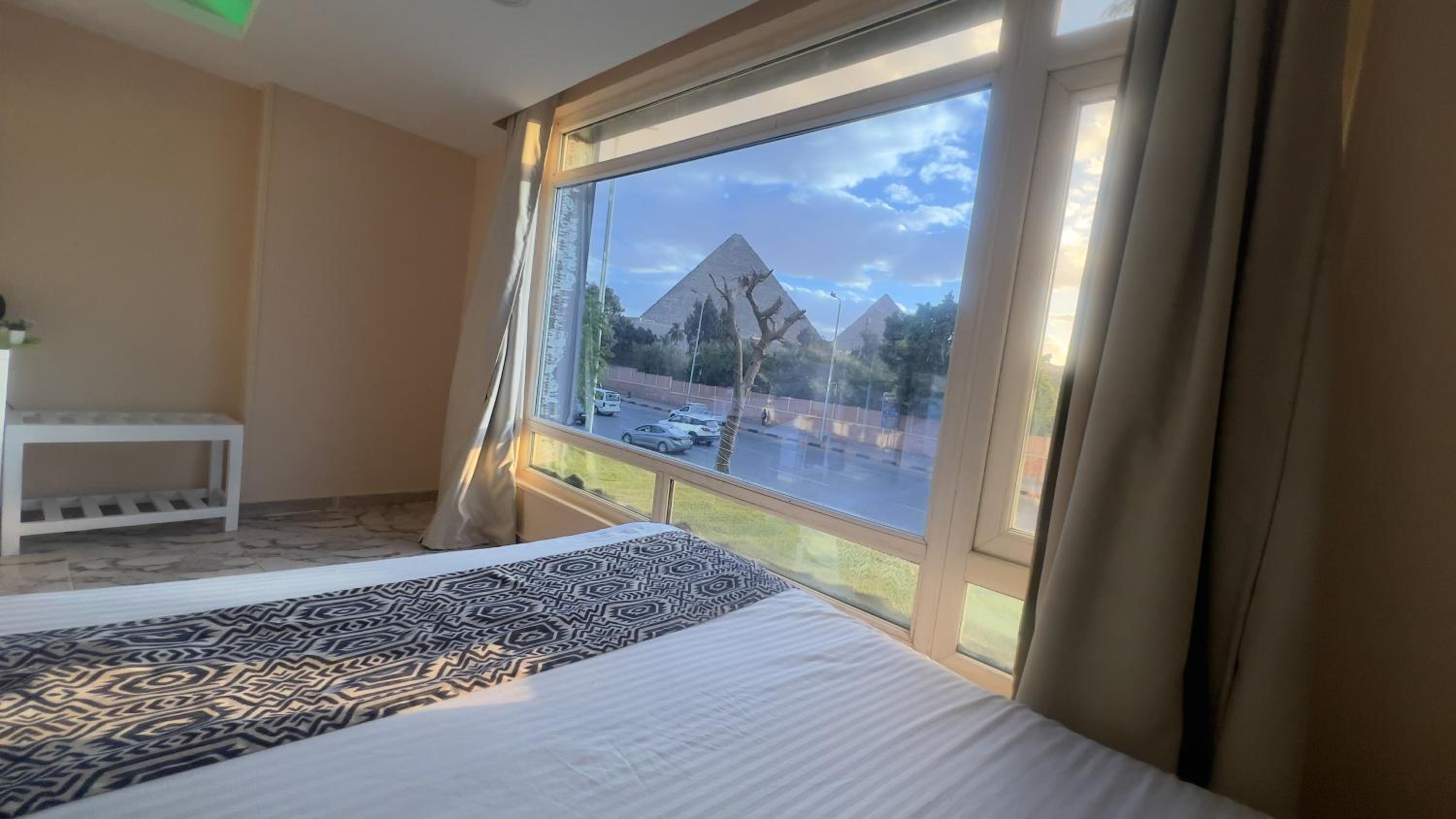 I stayed because of the view if the pyramids from the room and that did not disappoint. Room was big, I could see the pyramids from my bed and the terrace also had nice views.