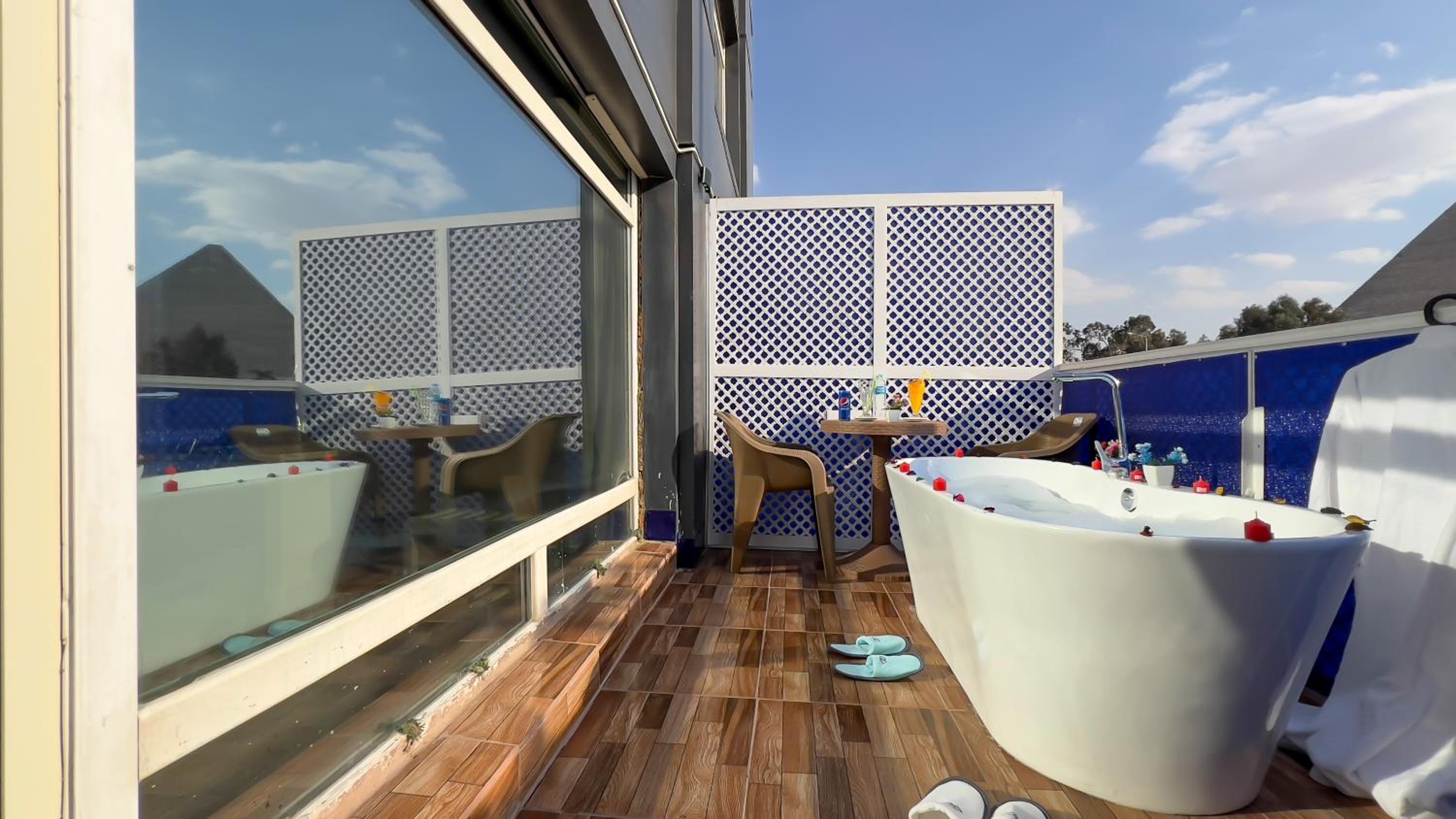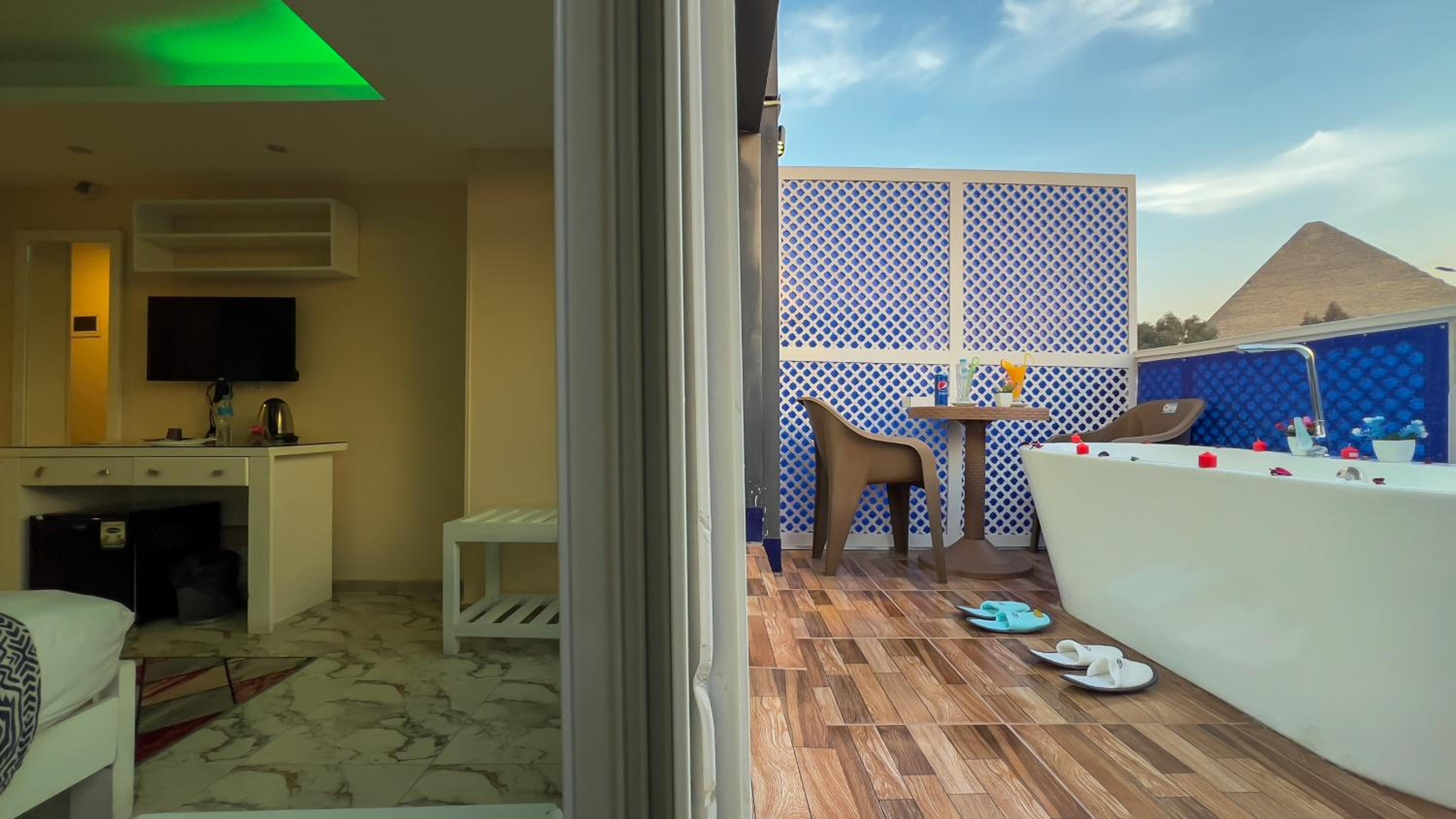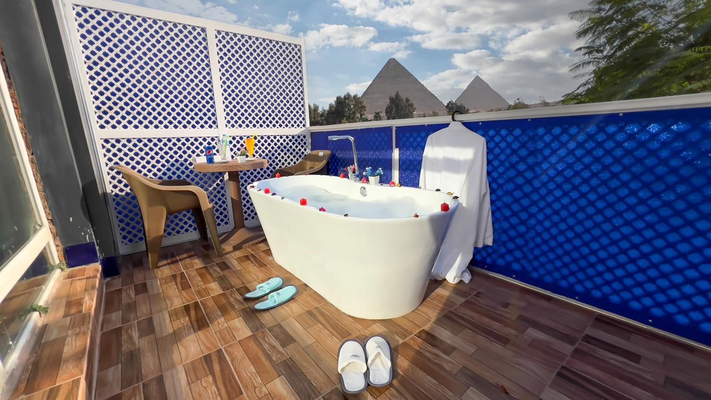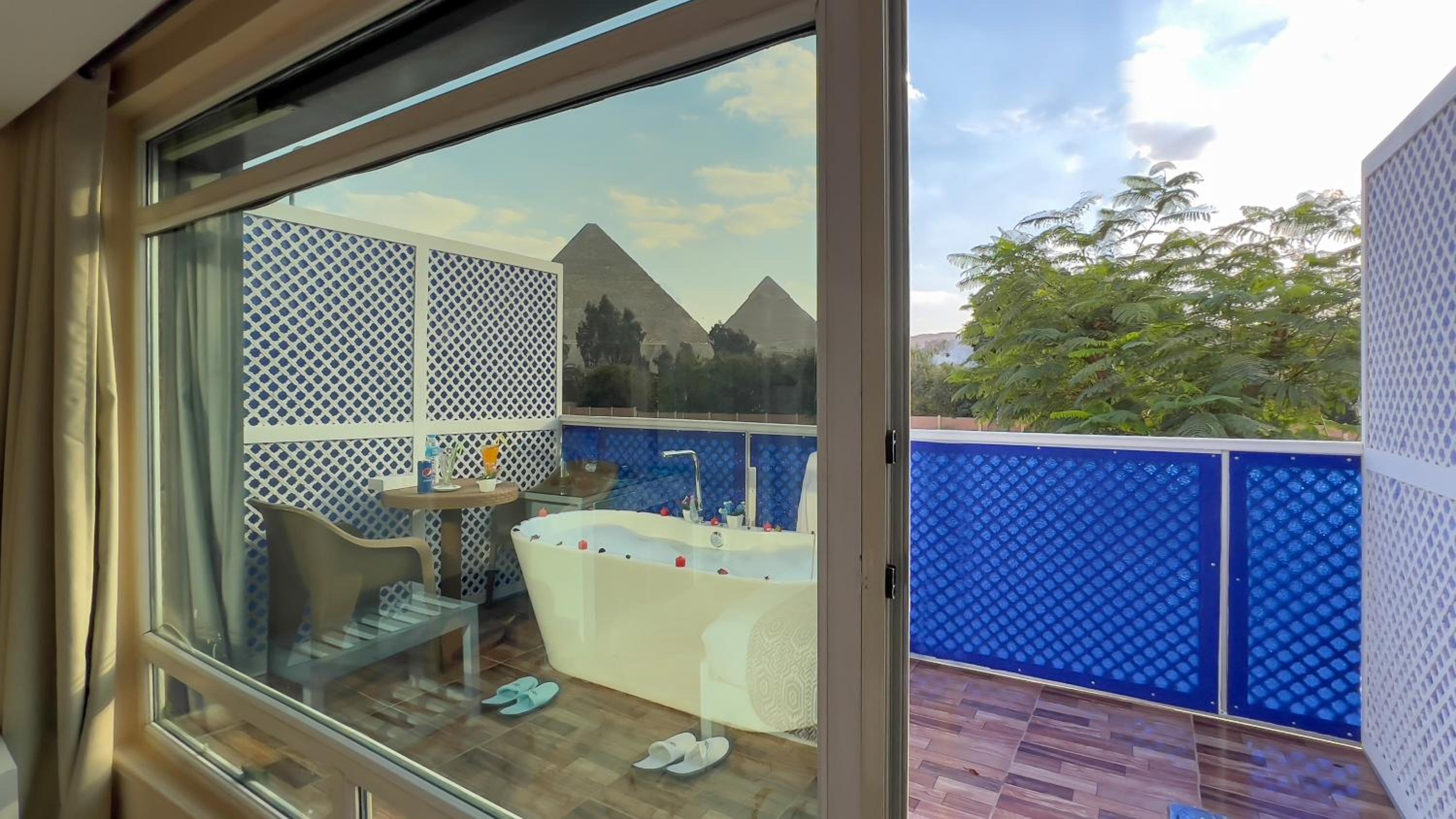 I stayed because of the view if the pyramids from the room and that did not disappoint. Room was big, I could see the pyramids from my bed and the terrace also had nice views.
