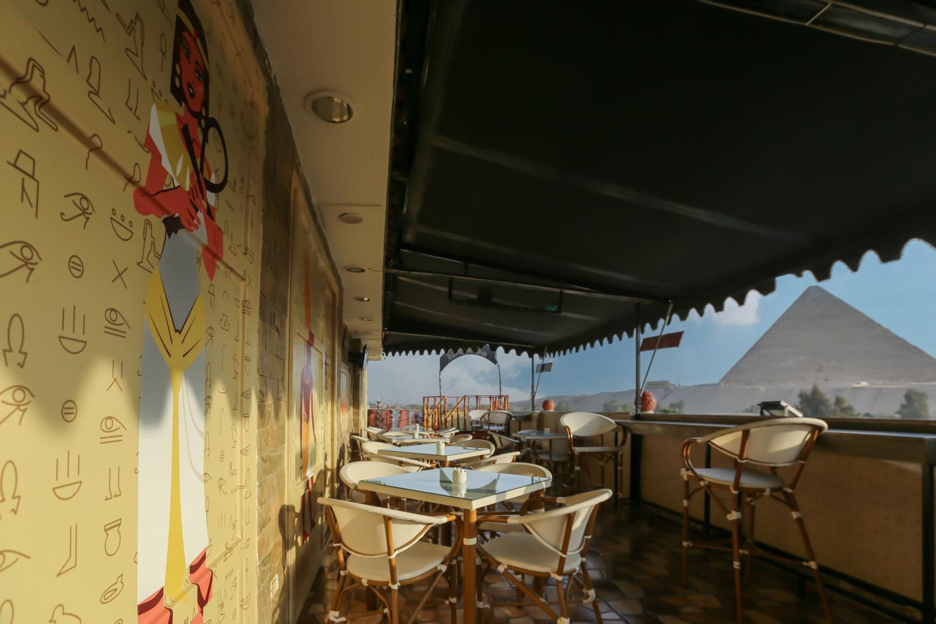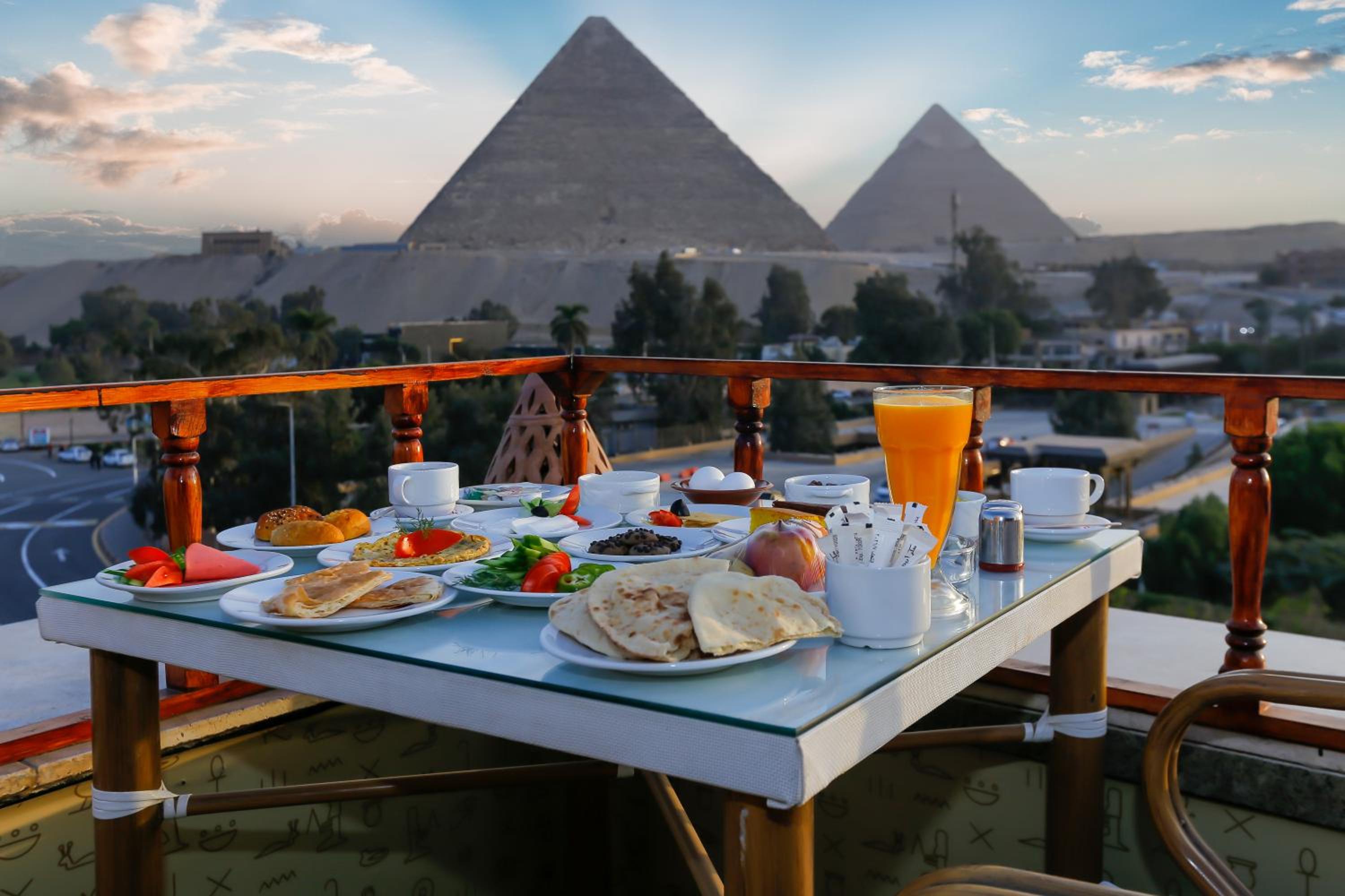 Ottima posizione, in una strada trafficata. Vista sulle piramidi. Il personale è molto gentile e disponibile. Puliscono la camera ogni giorno (ma solo se lo chiedi).