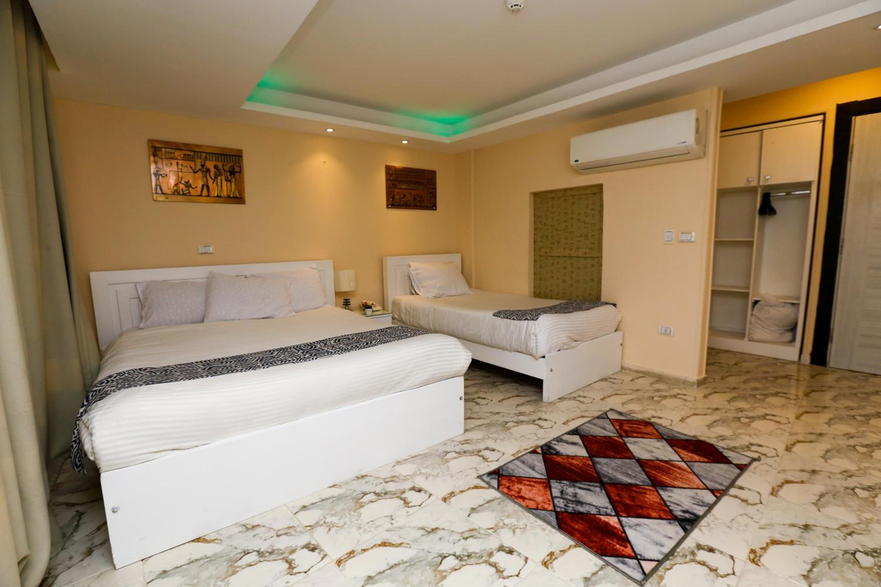 Conveniently situated near major attractions like Cairo Tower and Mosque of Ibn Tulun, and with Cairo International Airport just 30 km away, guests can easily explore the city. Additionally, the hotel provides a paid airport shuttle service for a hassle-free arrival and departure experience.