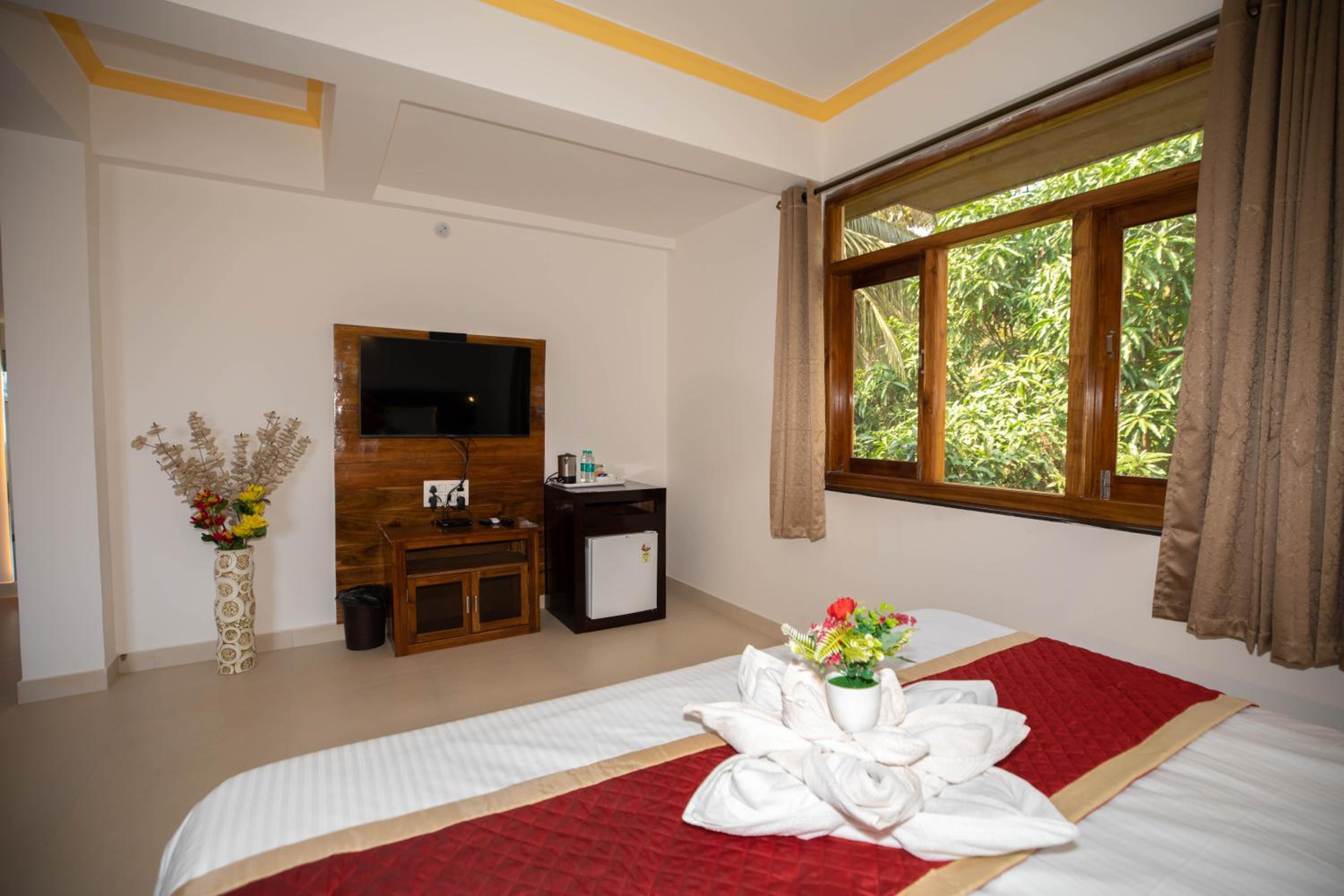 The Woodside Inn, nestled in Benaulim just 1 km from the stunning Benaulim Beach, offers guests a comfortable stay in air-conditioned rooms equipped with modern amenities like a flat-screen TV, minibar, and private bathroom.